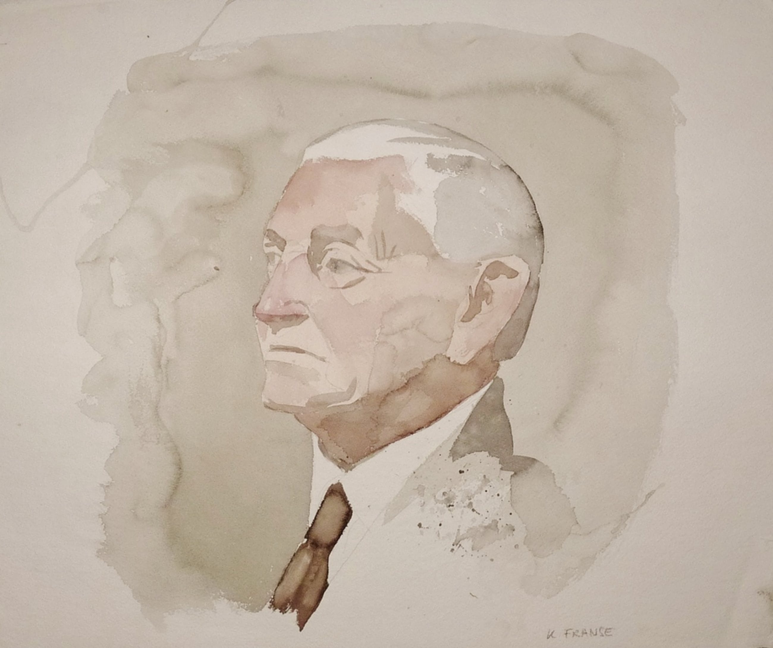 * Grote prachtige lichte aquarel door Kees Franse van een mannenportret. Het werk is met potlood r.o. gesigneerd: k. franse