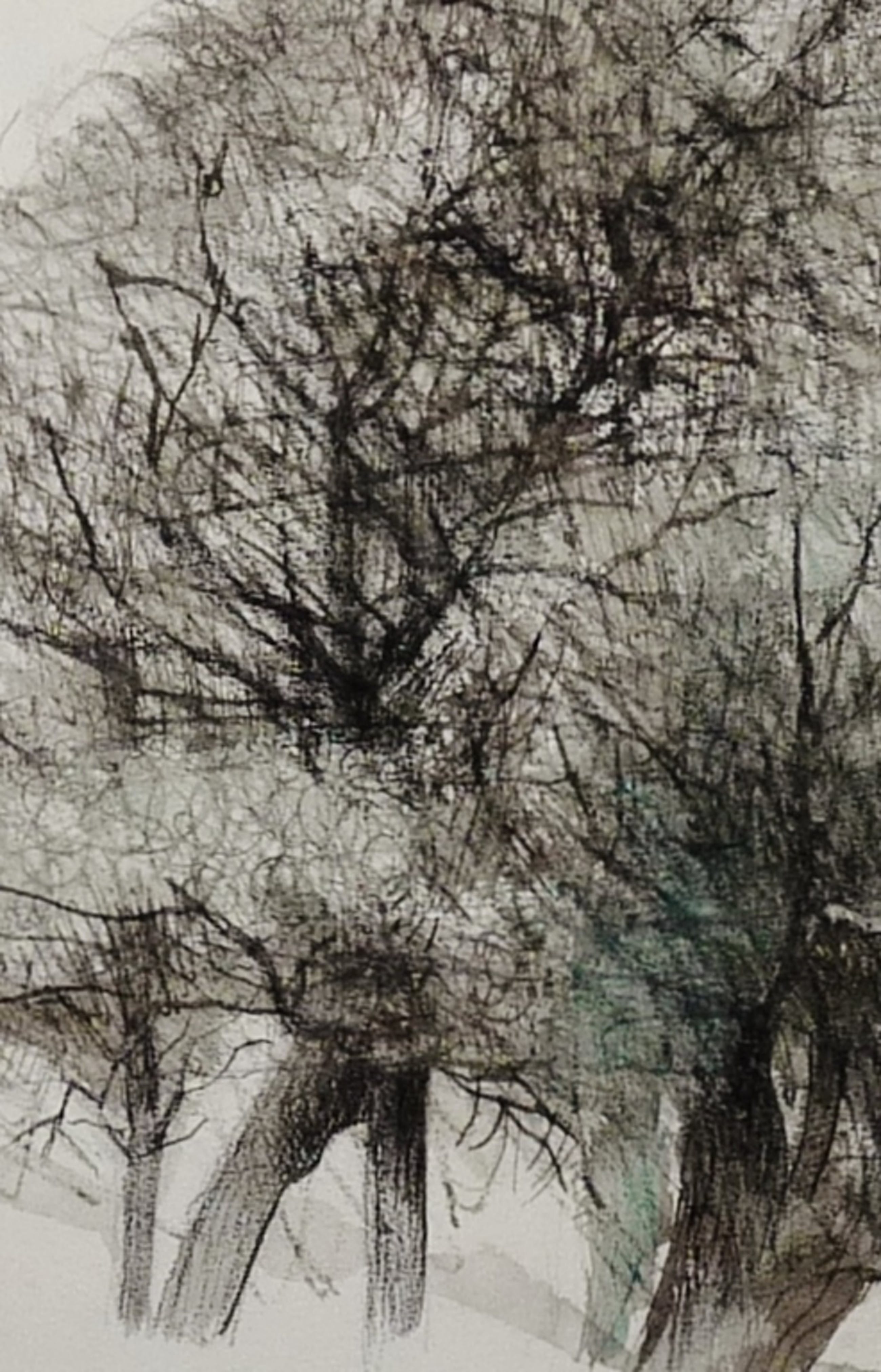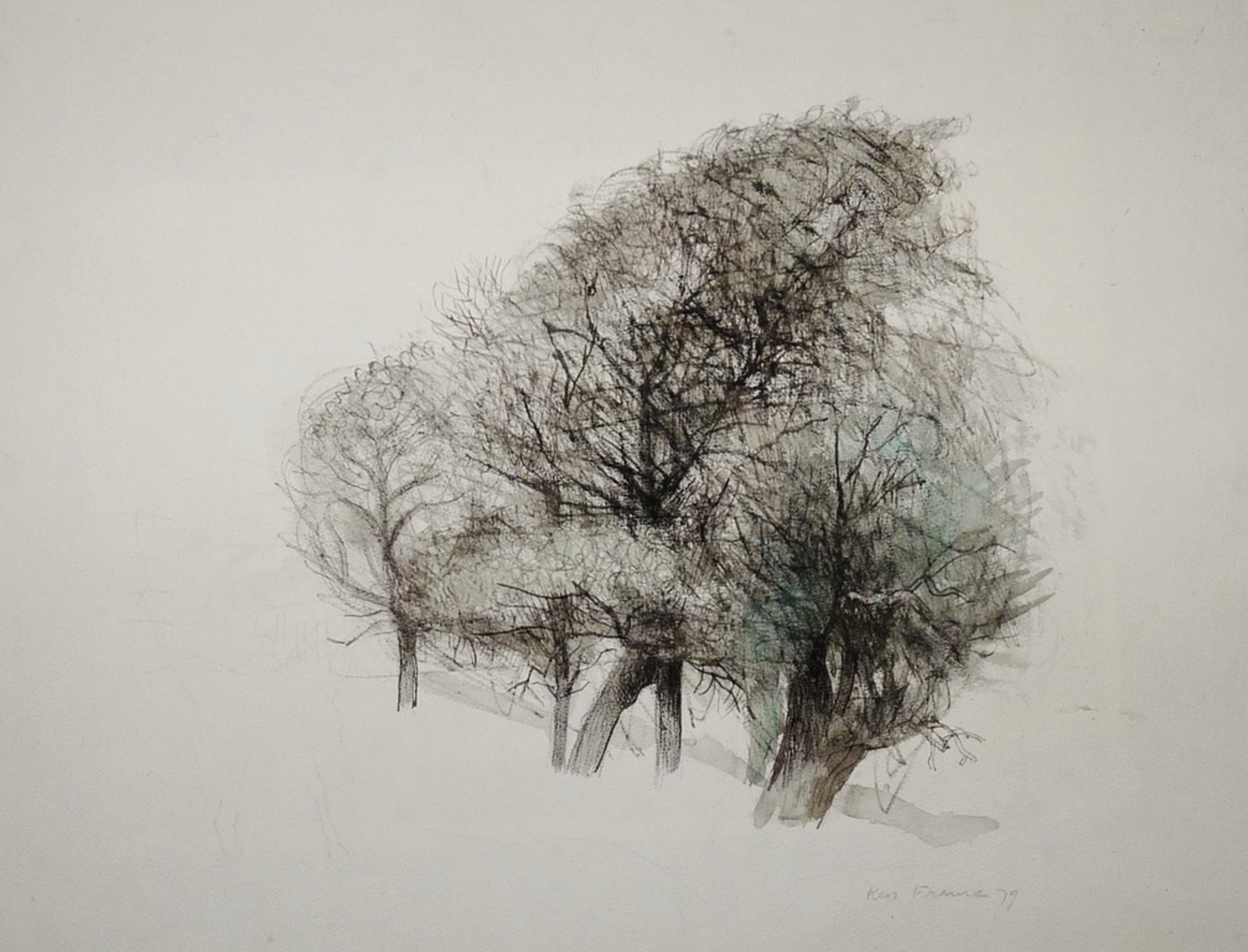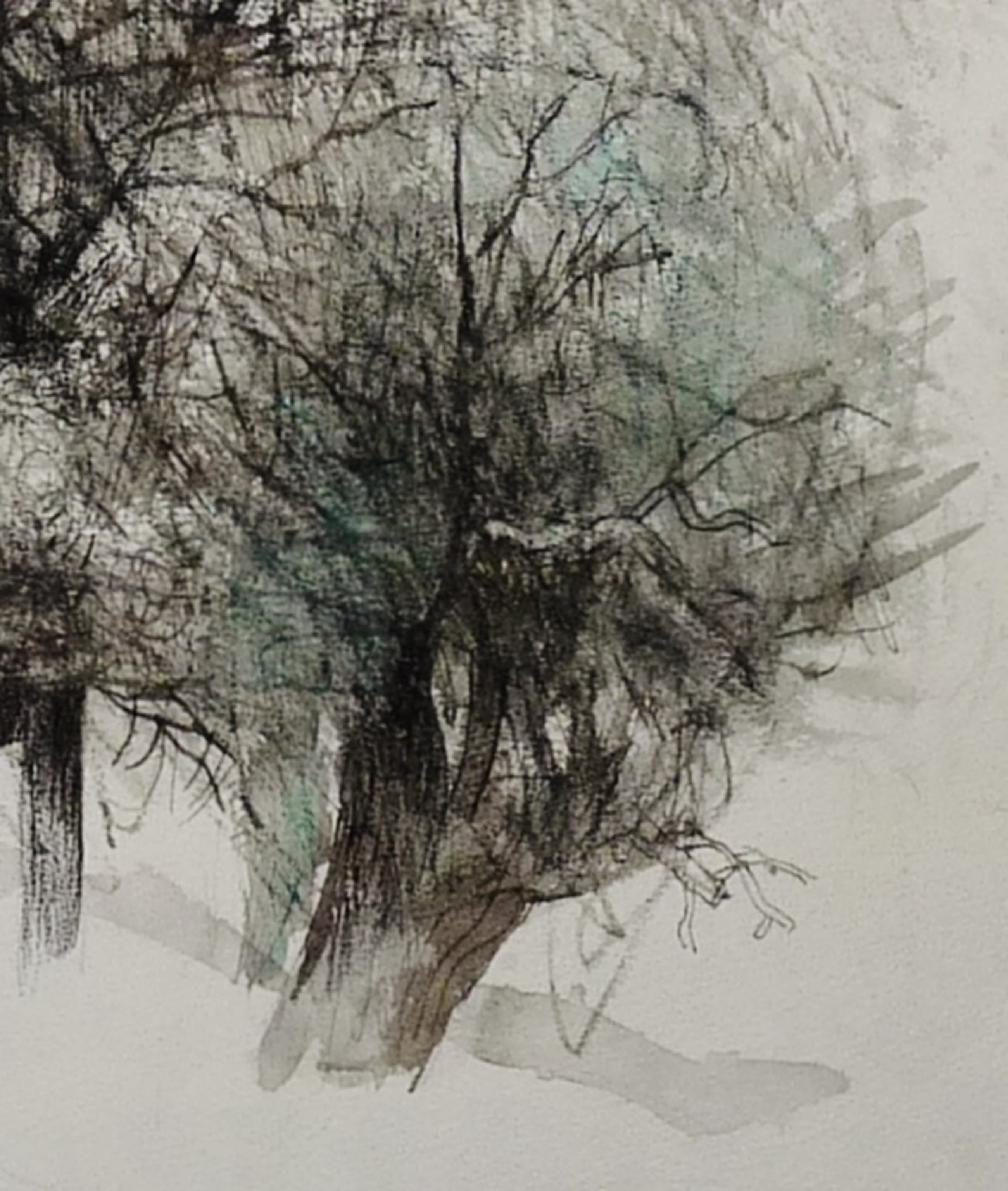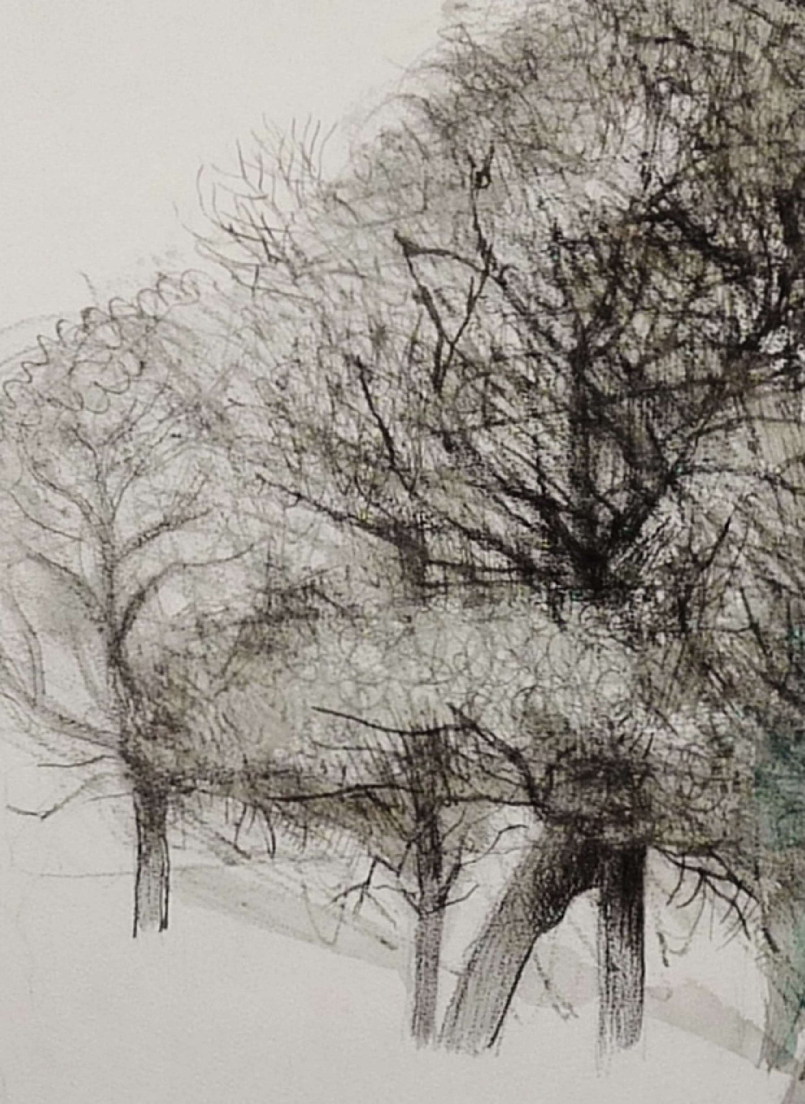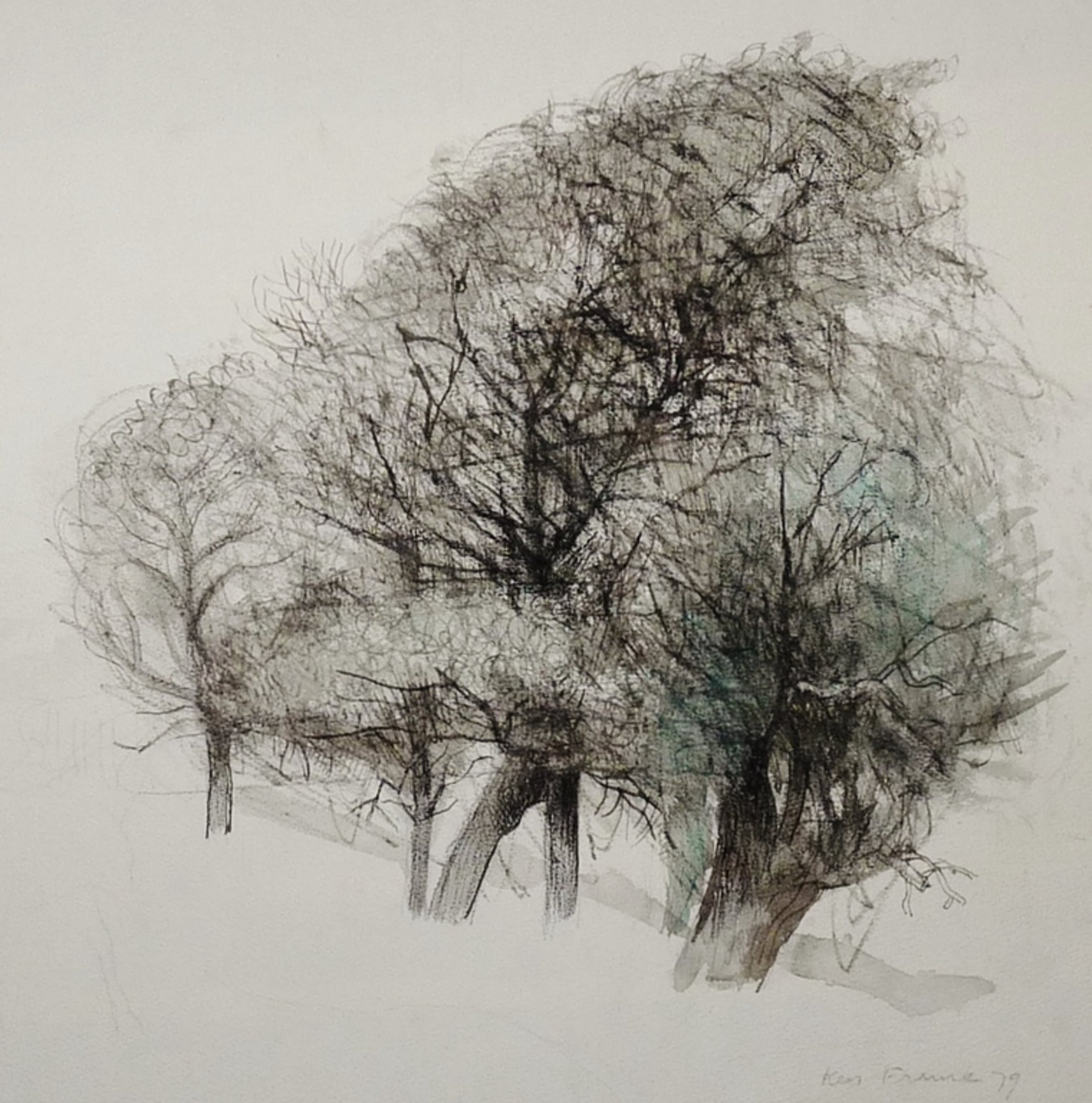 *Prachtige tekening in een gemengde techniek(krijt,inkt en aquarel) van bomen door de bekende Nederlandse kunstenaar Kees Franse.