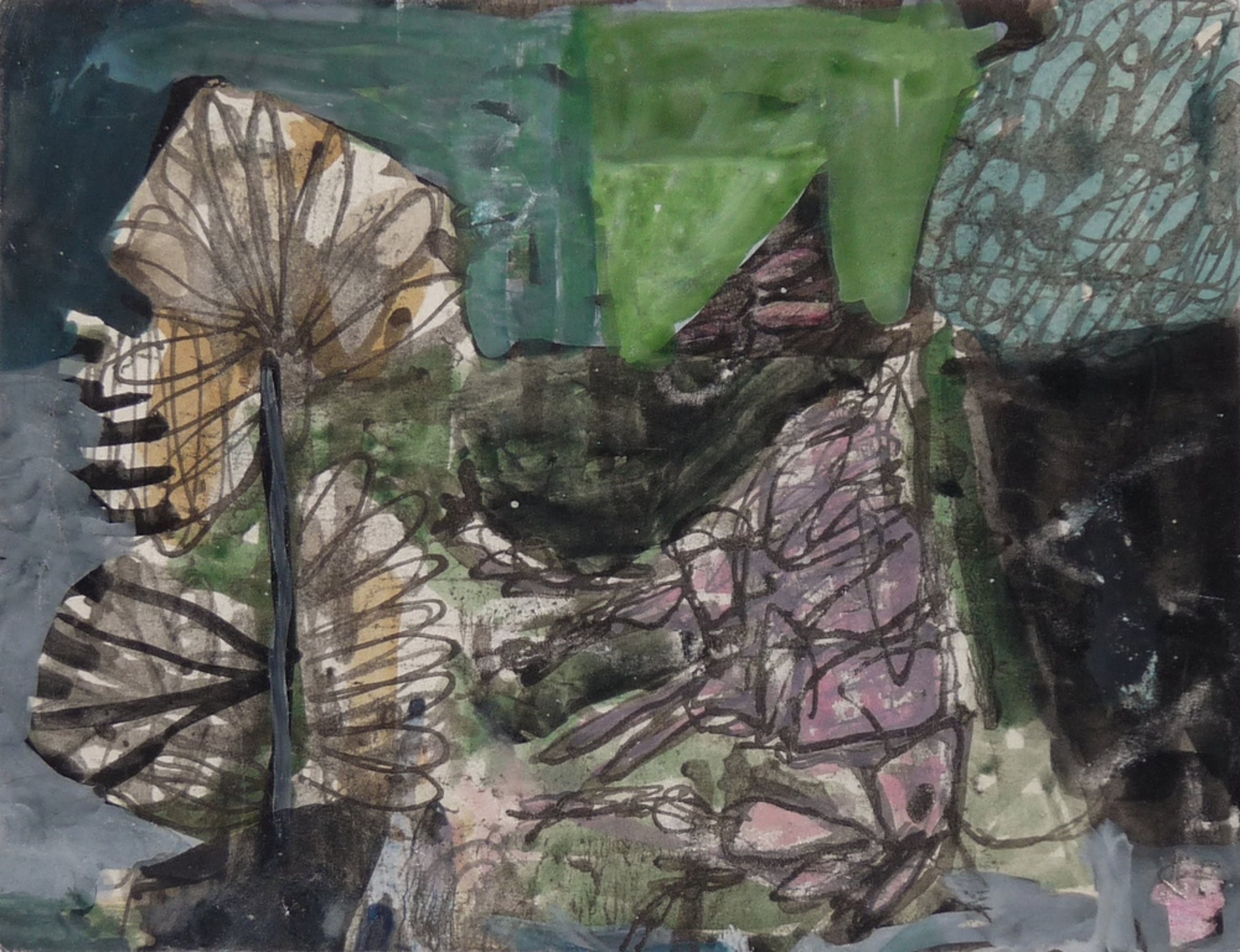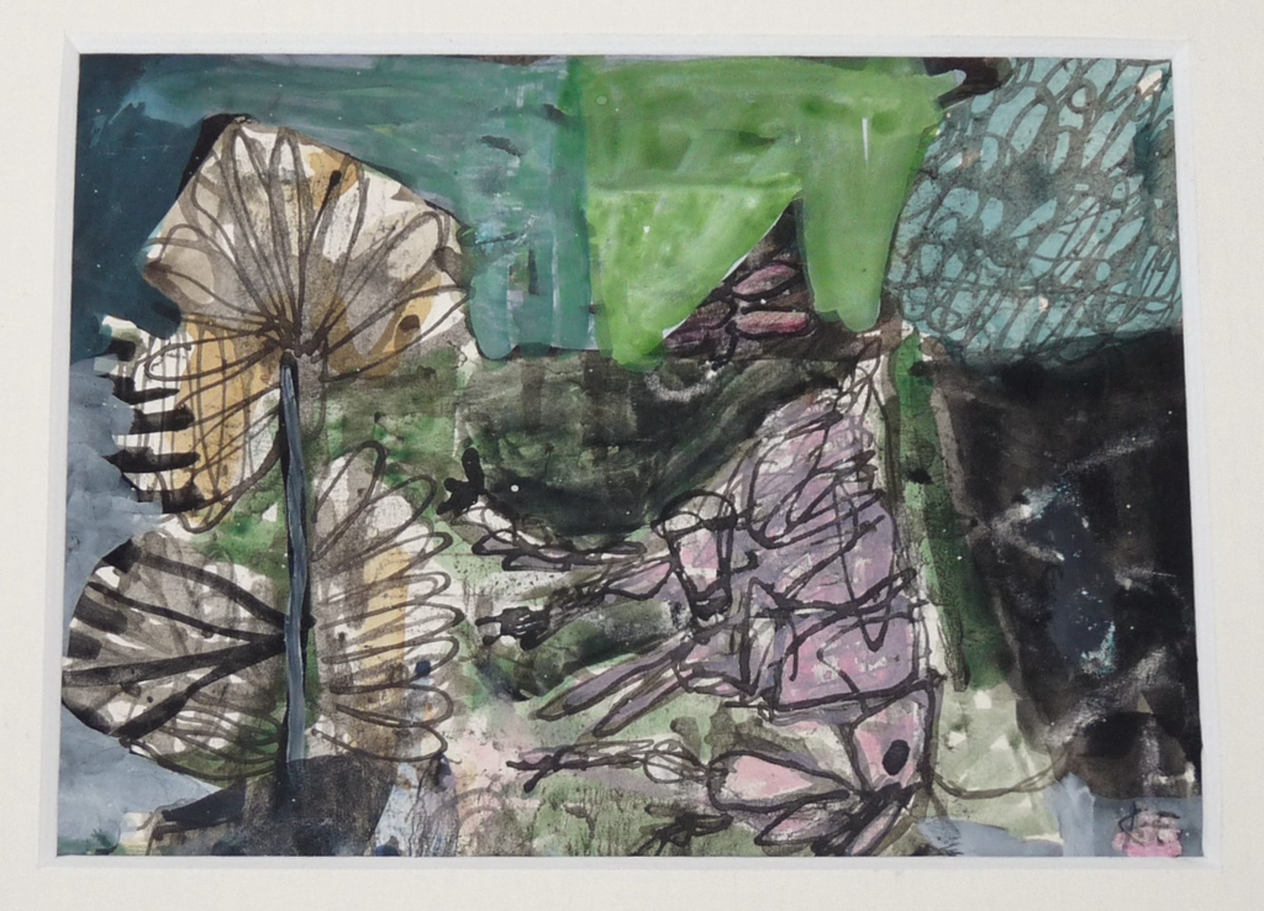 Kreeft of Garnaal met plant of boom? van de kunstenaar Kees Franse. Aquarel / Gouache en pen en inkt