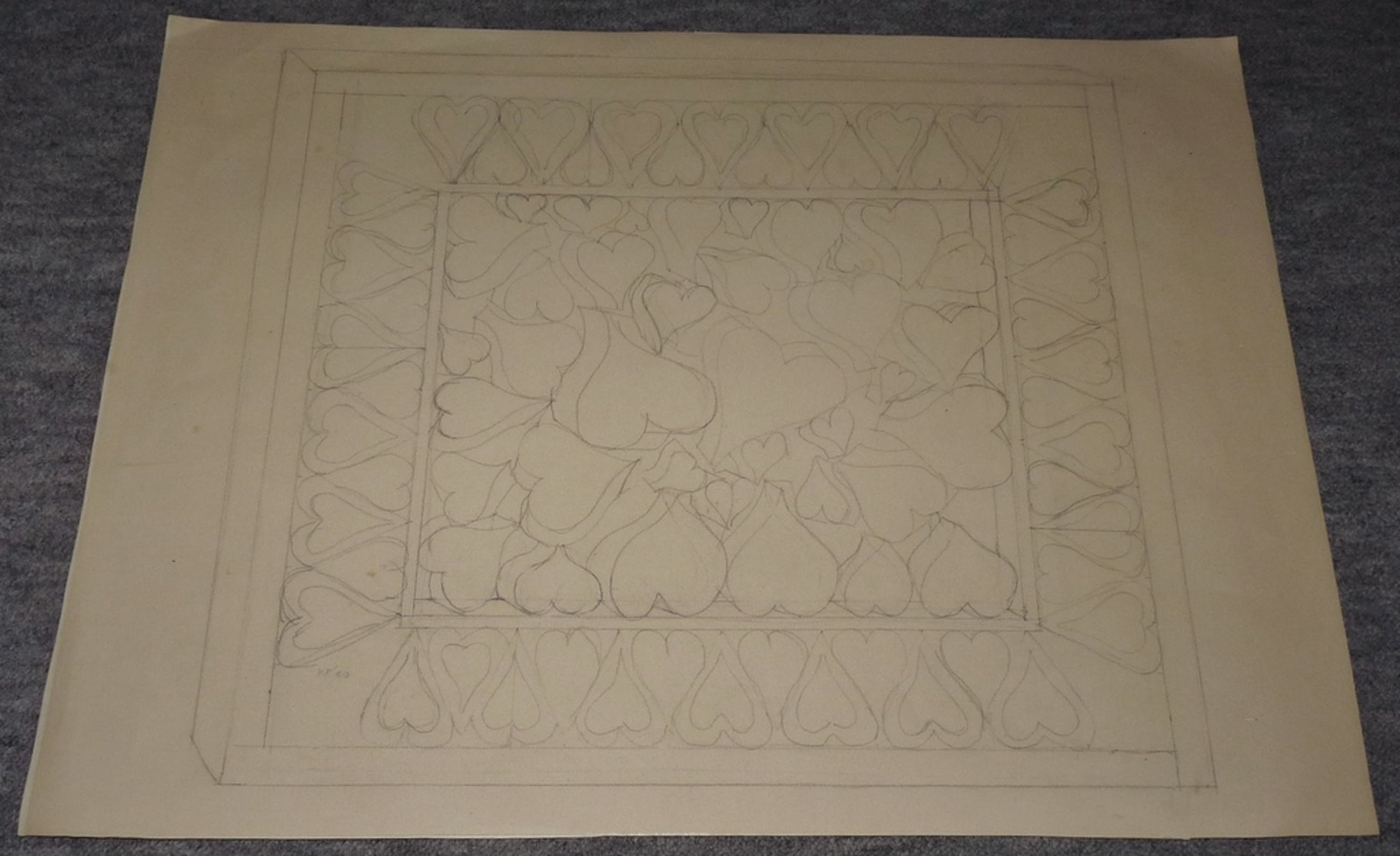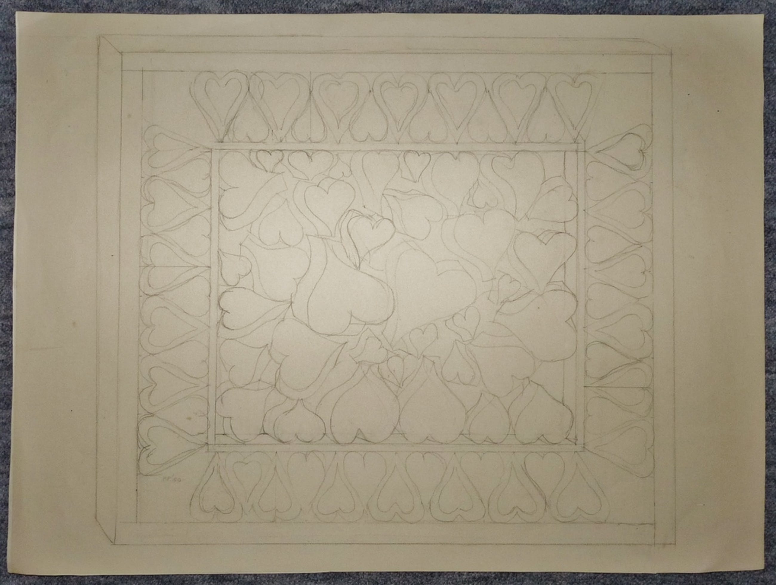 *Originele ontwerptekening voor een waarschijnlijk uit te voeren of uitgevoerde houten object met harten hierin verwerkt, zowel verwerkt in schilderij als lijst.
