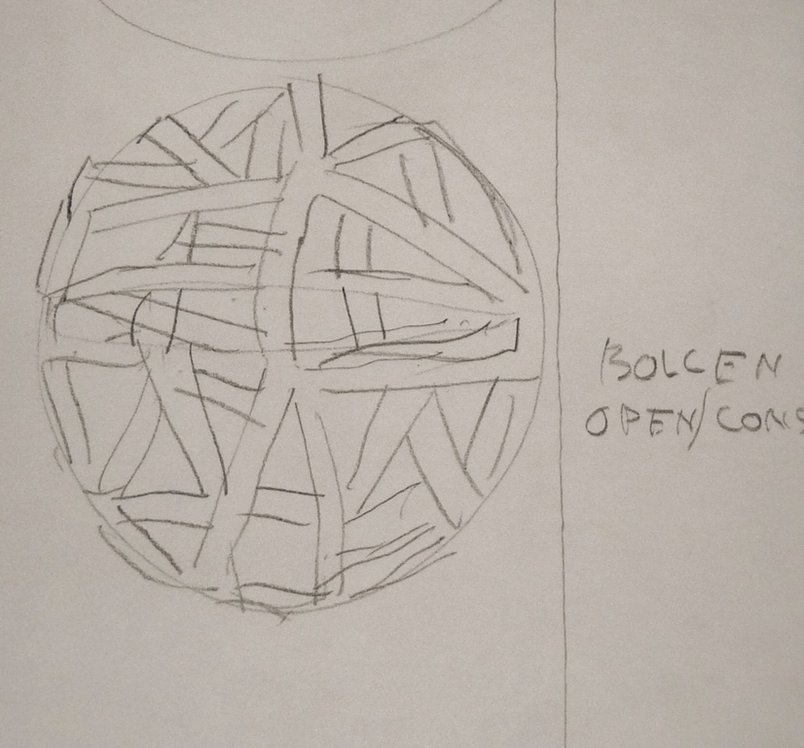Blad is vol ideeën voor mogelijk uitgevoerd werk, met daarbij tekstaanduidingen.