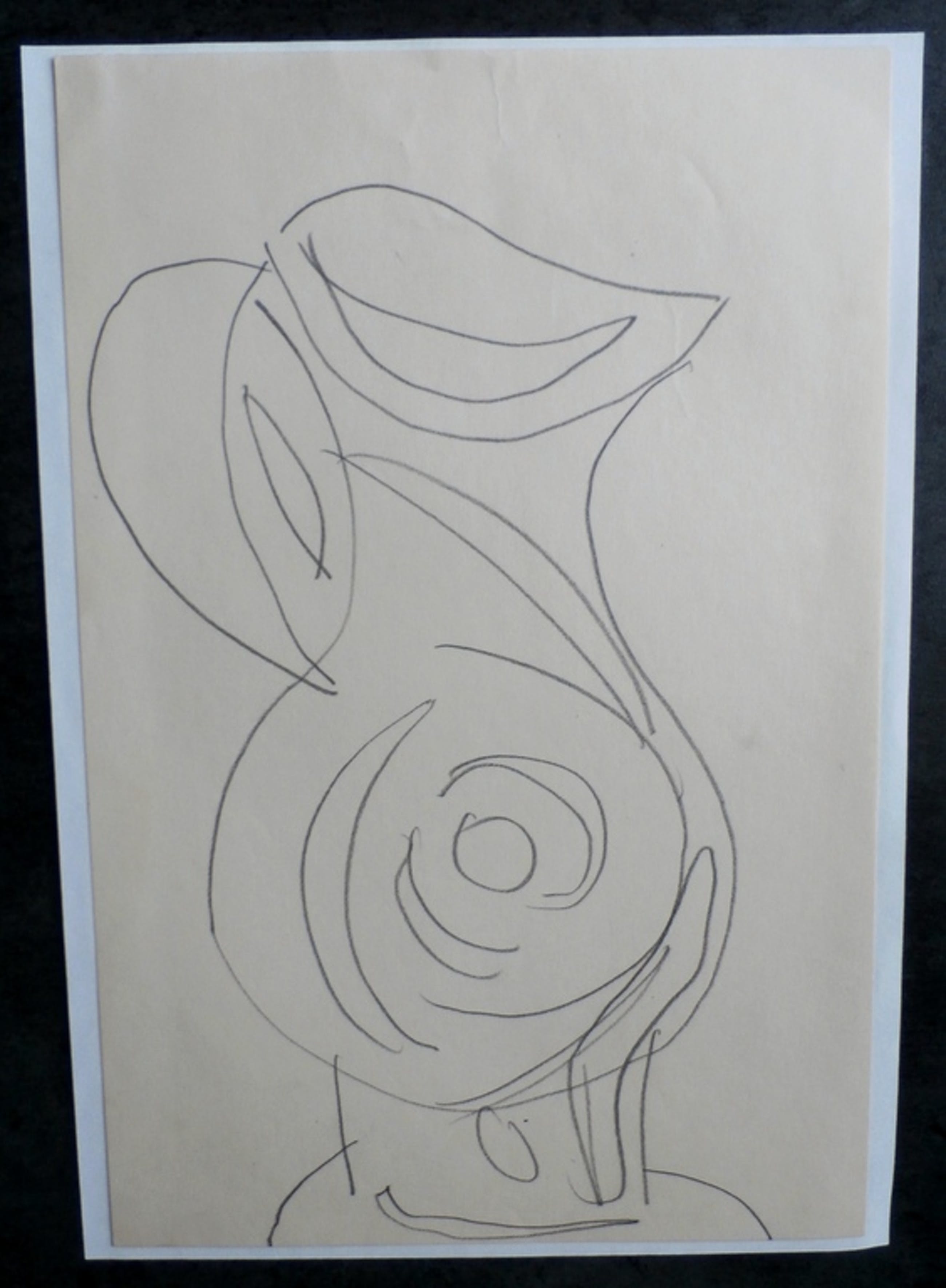 Potloodschets van Kees Franse van een fkan. Afmetingen blad: H19,5 x b29 cm. Afmetingen voorstelling: H13 x b17 cm. Conditie: in goede staat. Herkomst: Uit de schetsmap van Kees Franse.