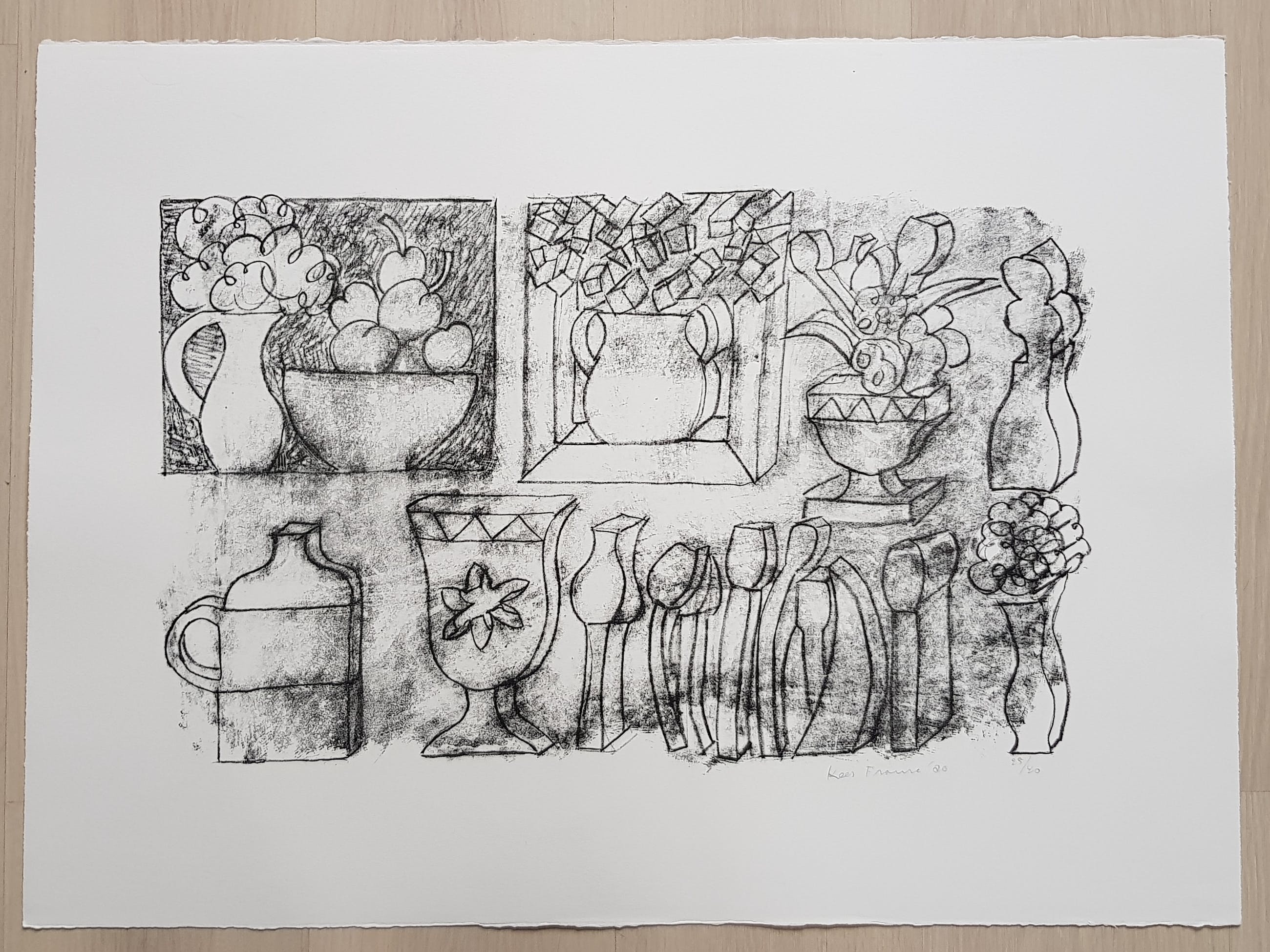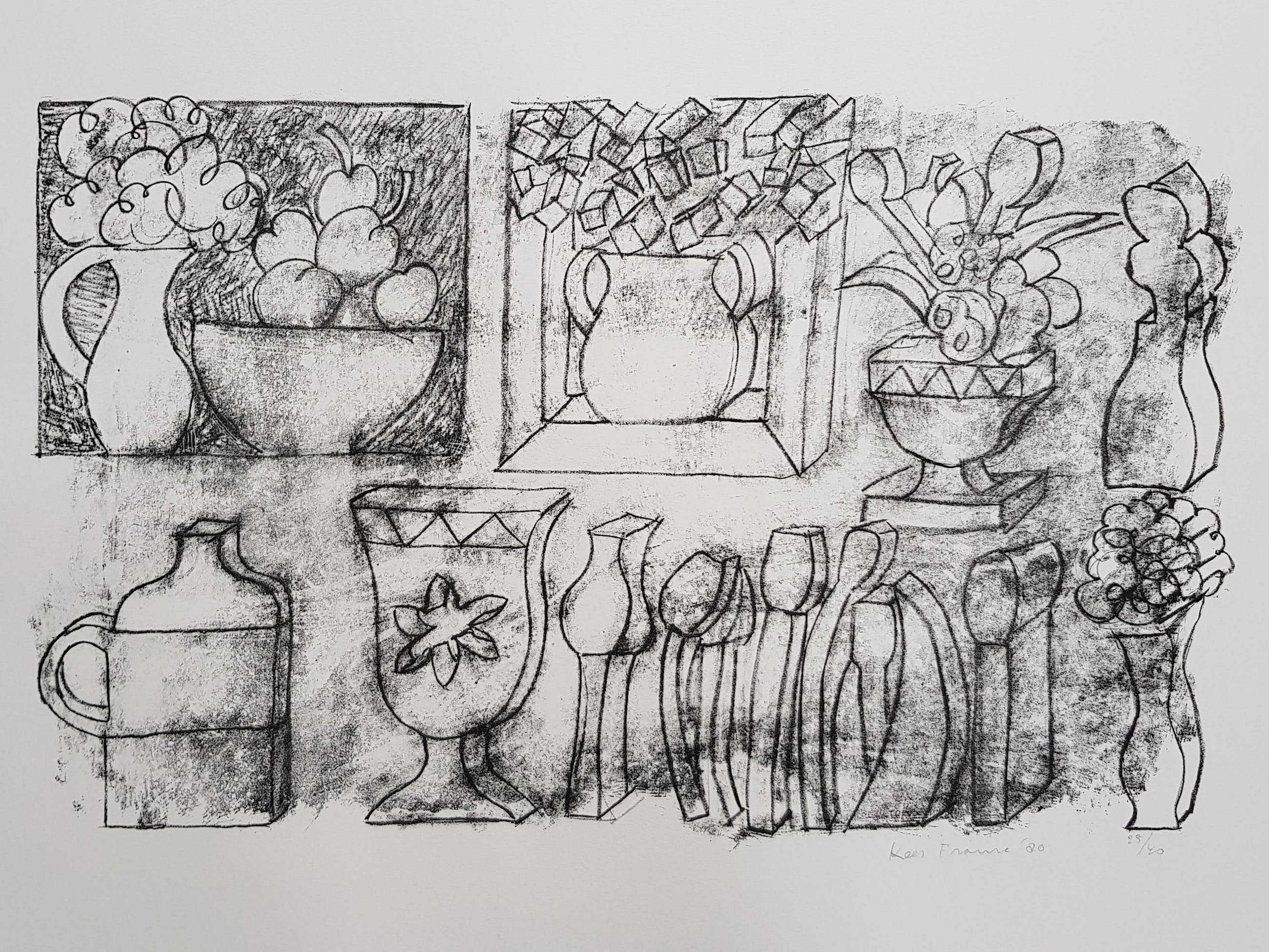 Kees Franse. Geboren Oud-Beijerland 1924 - 1982 Overleden Rotterdam. Vier Litho,s met verschillende voorstellingen. Foto 1. Afm totaal: 78.5 x 56.5 cm. Beeldformaat: 56.5 x 48 cm. Oplage: 2/25. 1978. Foto 4. Afm totaal: 76.5 x 56.5 cm. Beeldformaat: 49 x 36 cm. Oplage: 8/25. 1979. Foto 8. Afm totaal: 76.5 x 56.5 cm. Beeldformaat: 59.5 x 37 cm. Oplage: 25/40. 1980. Foto 11. Afm totaal: 78.5 x 56.5 cm. Beeldformaat: 45.5 x 34 cm. Ongesigneerd. Alle vier de litho,s verkeren in perfecte staat. Het wordt extra goed ingepakt met o/a noppenfolie, kranten en doos.