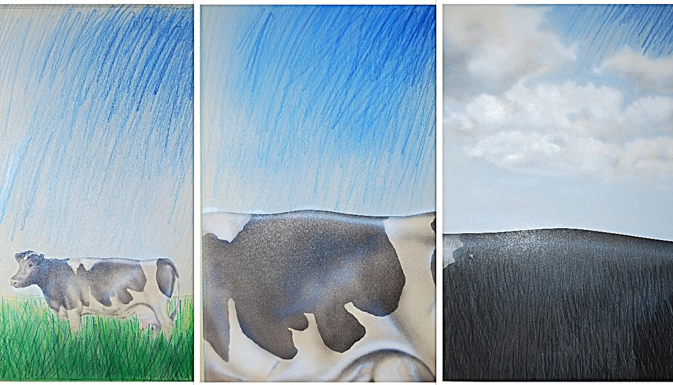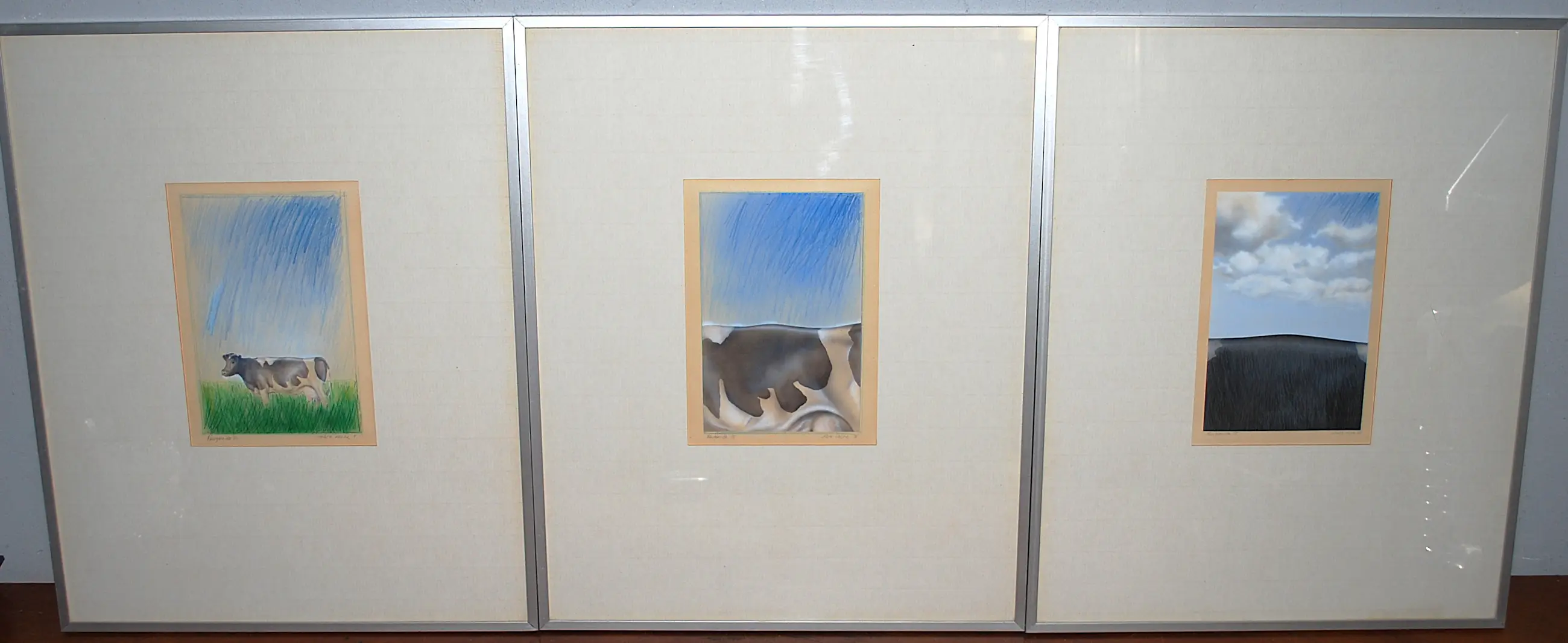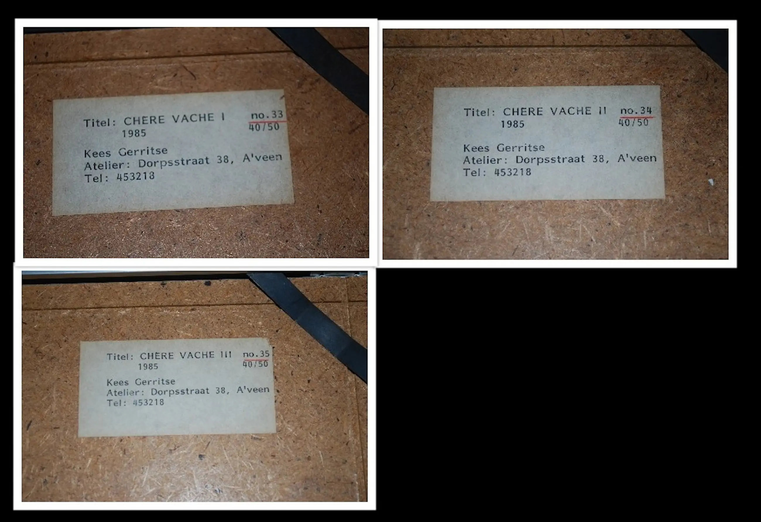Kees Gerritse - Chère vache I, II, III - 3 potloodtekeningen - elk apart ingelijst