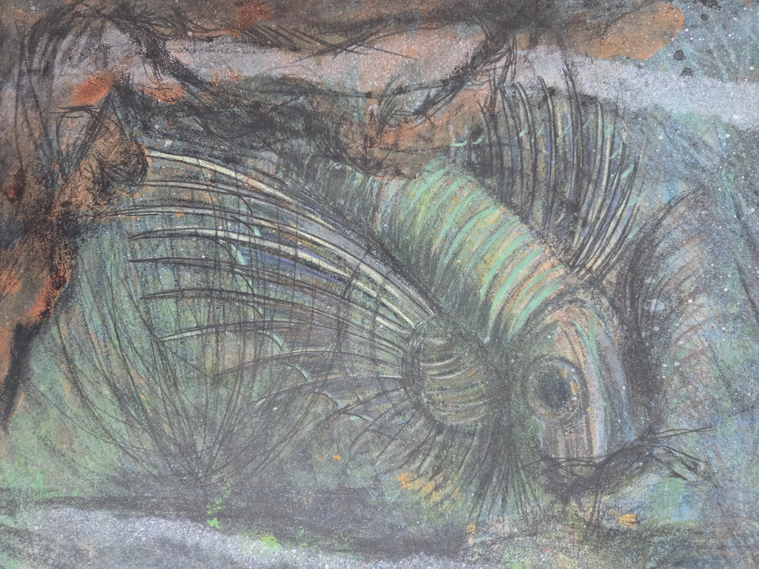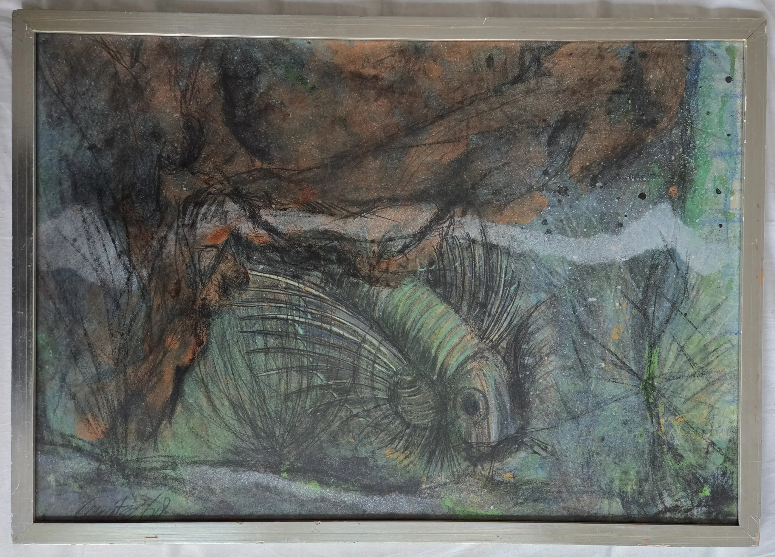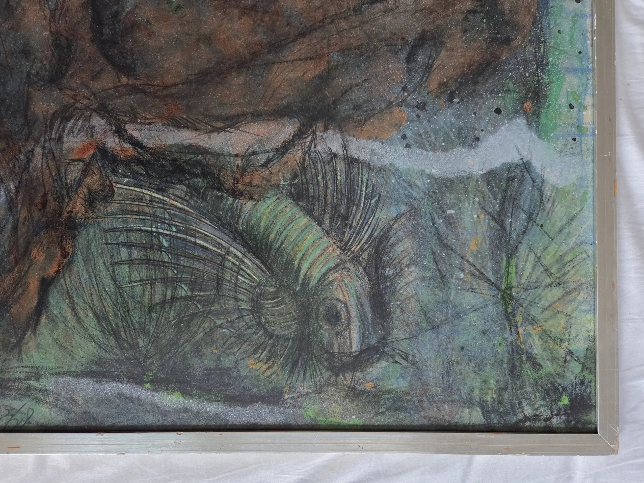 Bijzonder werk van bijzondere kunstenaar. Gemengde techniek. Algemeen goede staat. Beoordeeld achter glas. Zie foto's voor eigen oordeel kwaliteit.