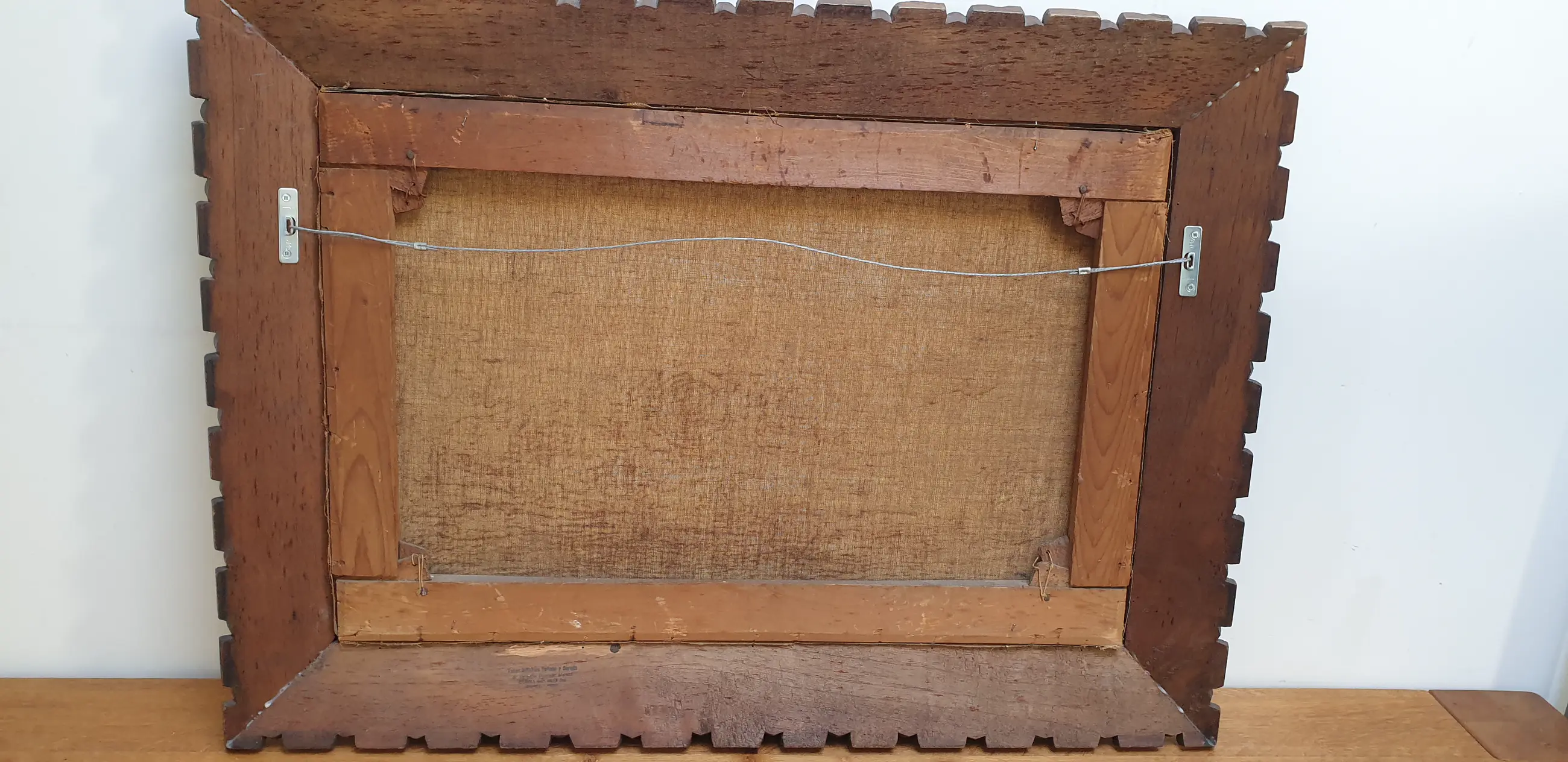 Heel fraai ingelijst in een diepe handgesneden houten lijst.