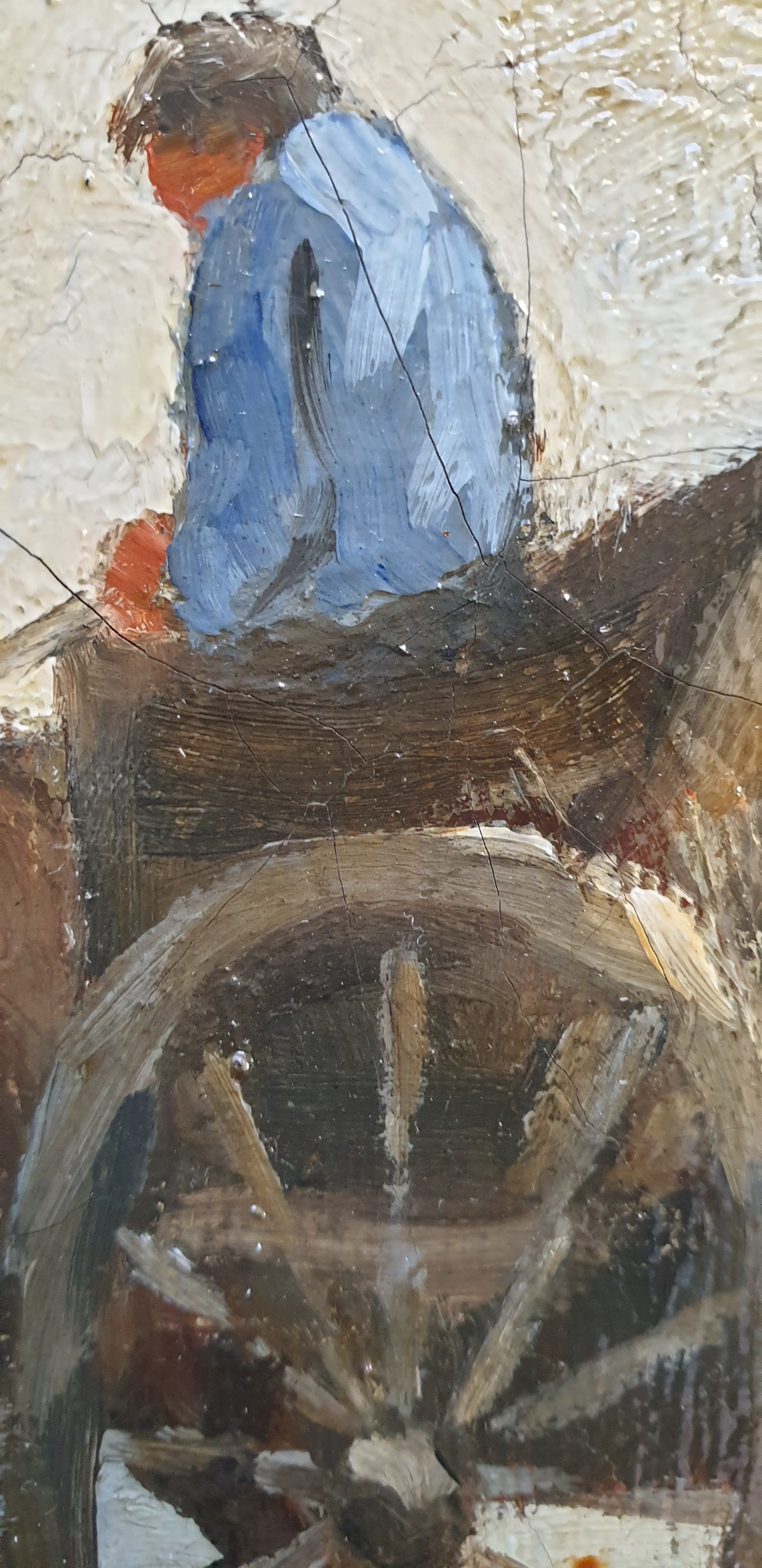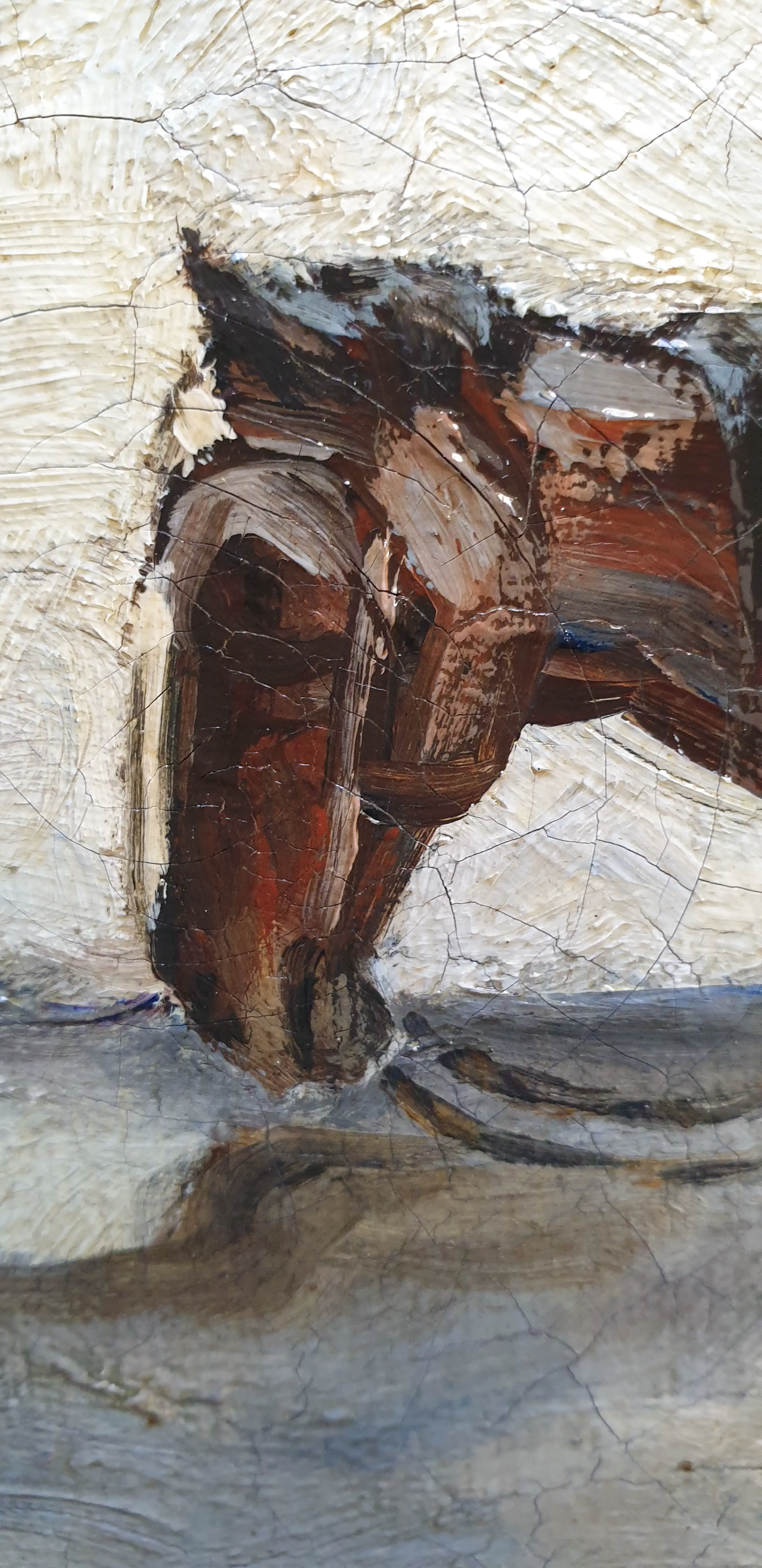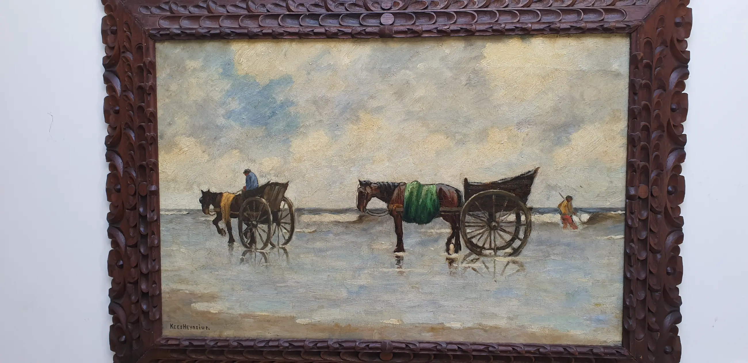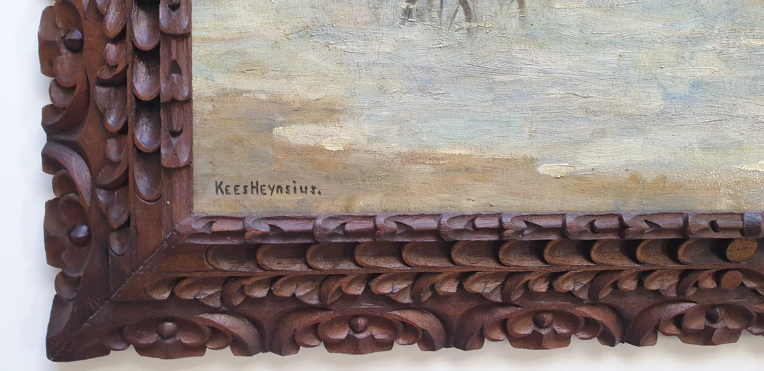 Heel mooi karakteristiek werk van Kees Heynsius. Het doek verkeert in prima staat, maar een schoonmaakbeurt zou het werk goed doen.