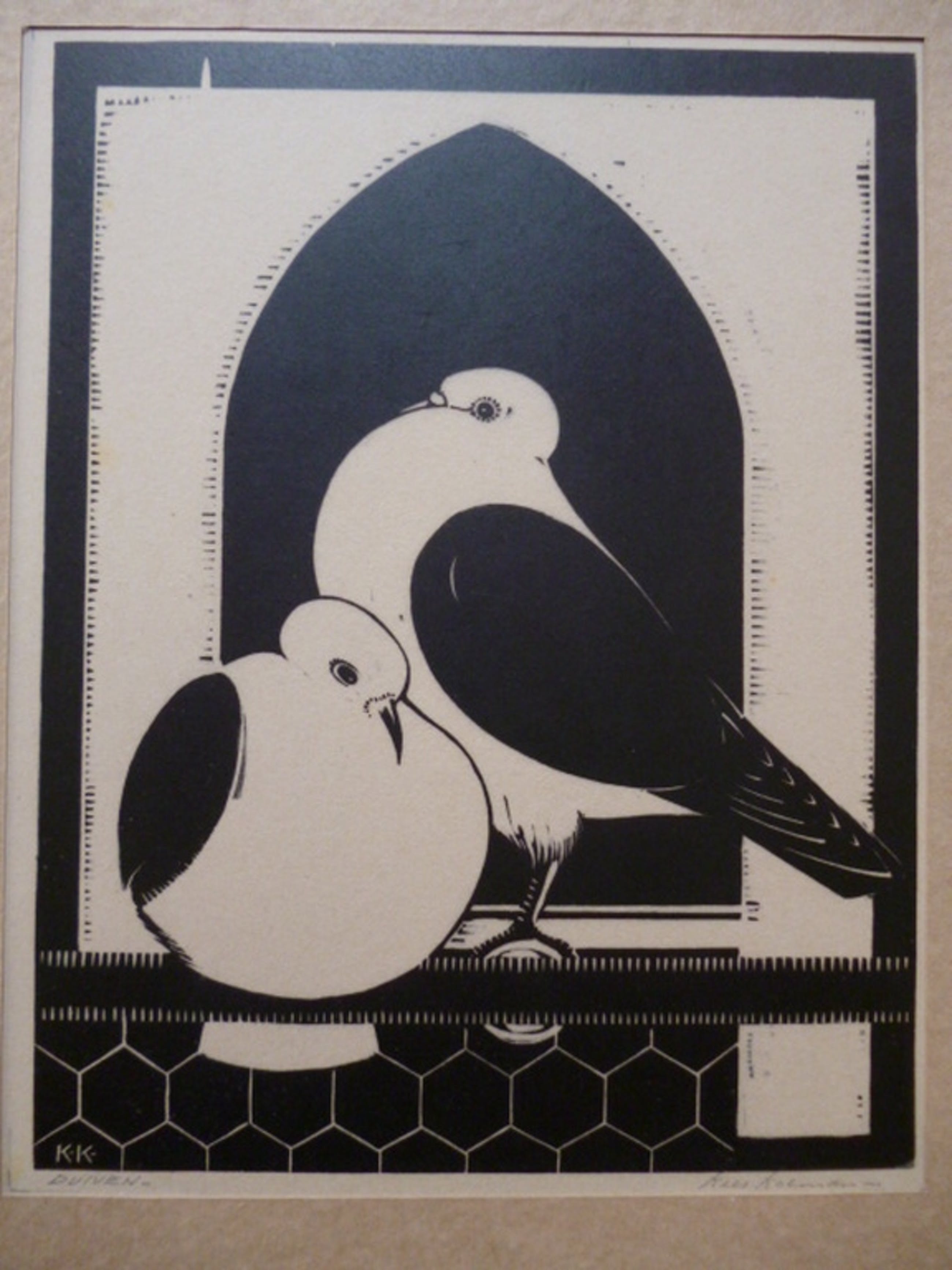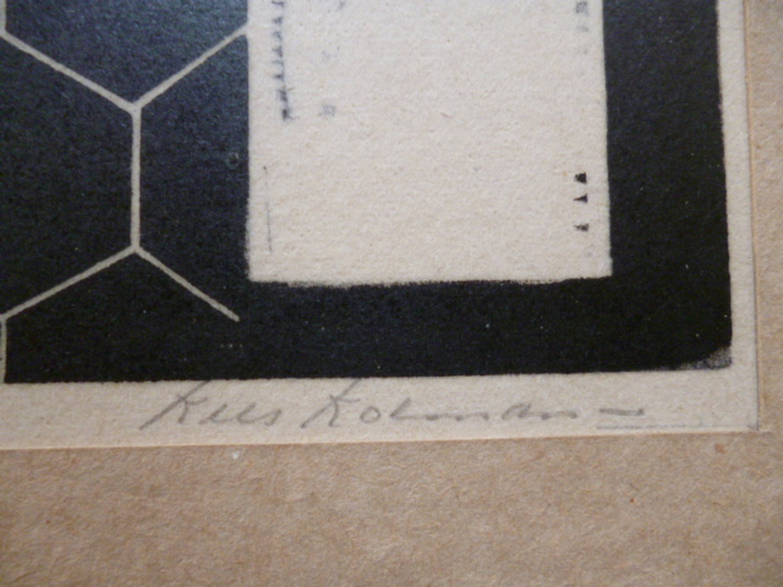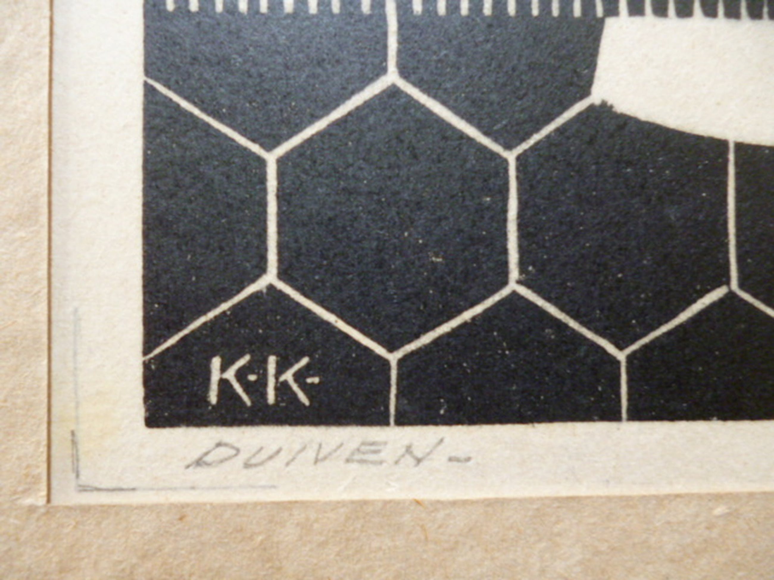 Houtsnede, potlood gesigneerd rechtsonder. Getiteld linksonder.
