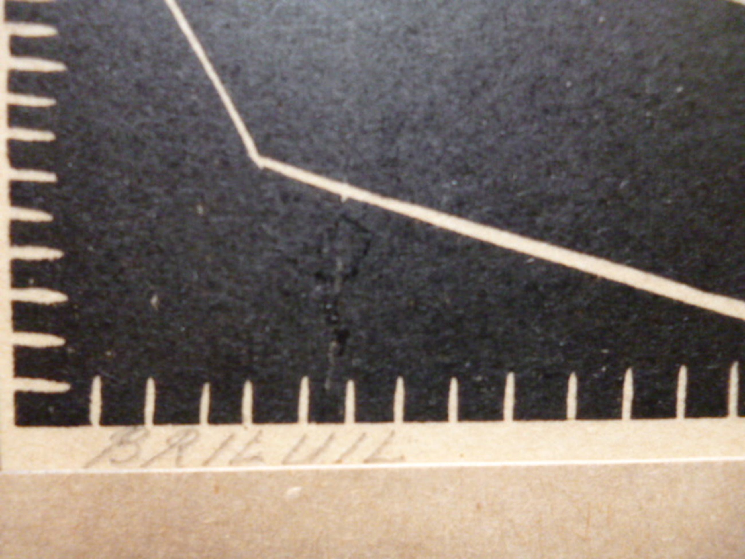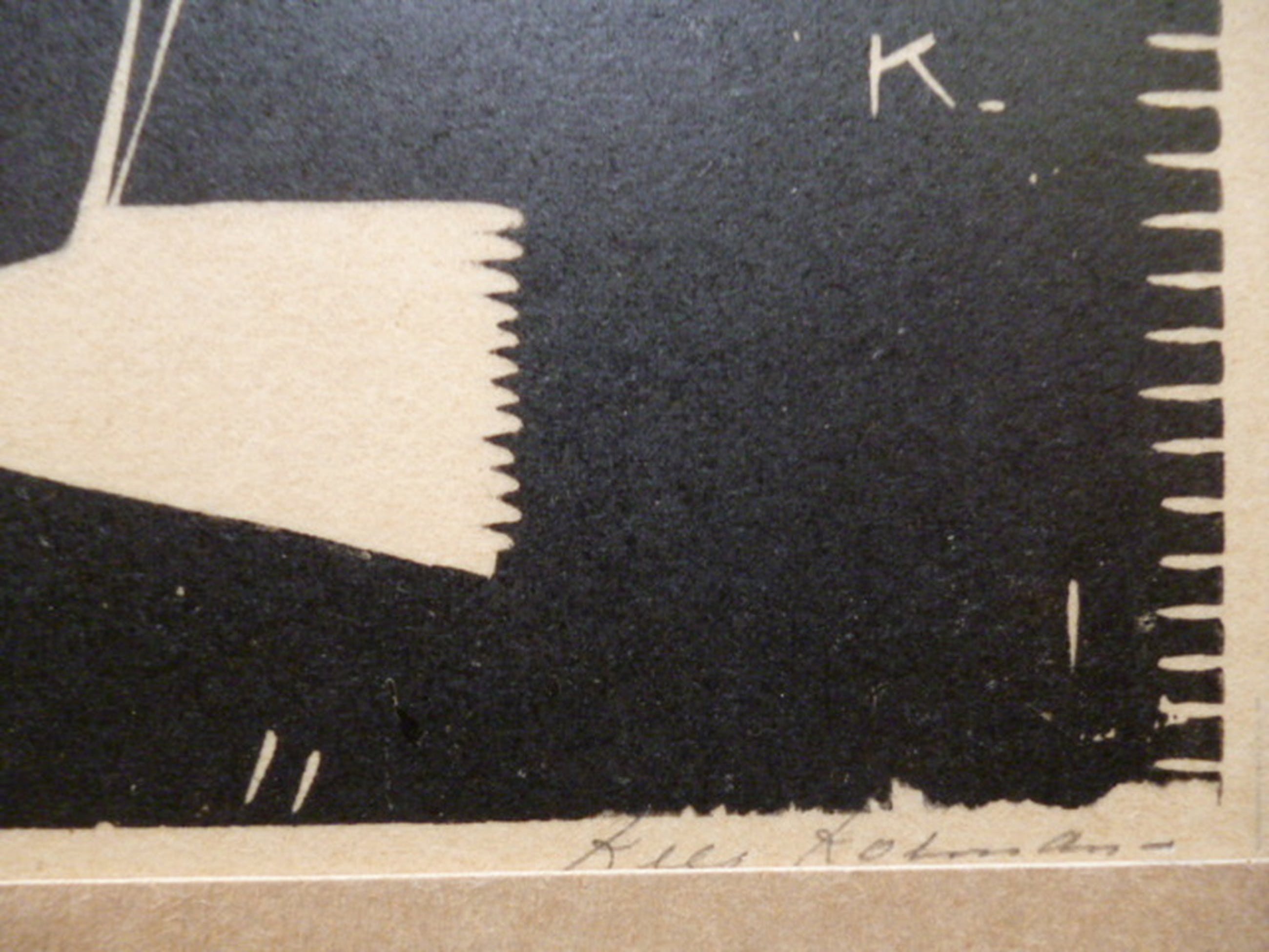 Houtsnede, potlood gesigneerd rechtsonder. Getiteld linksonder.
