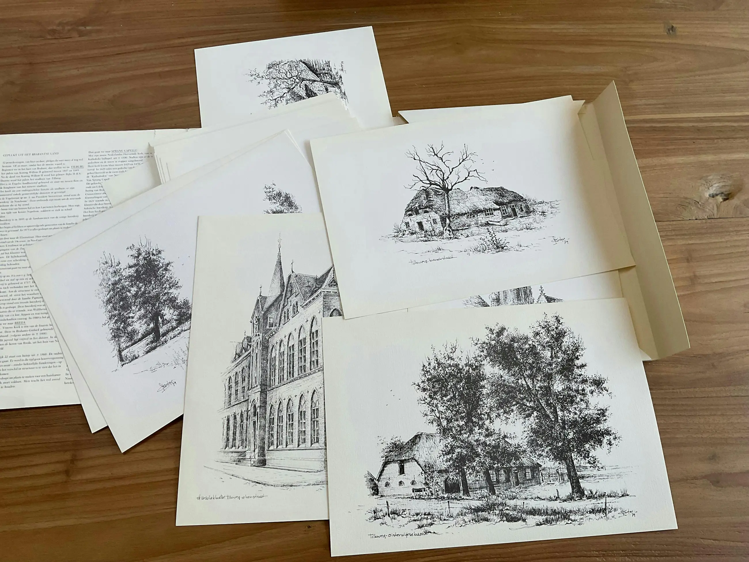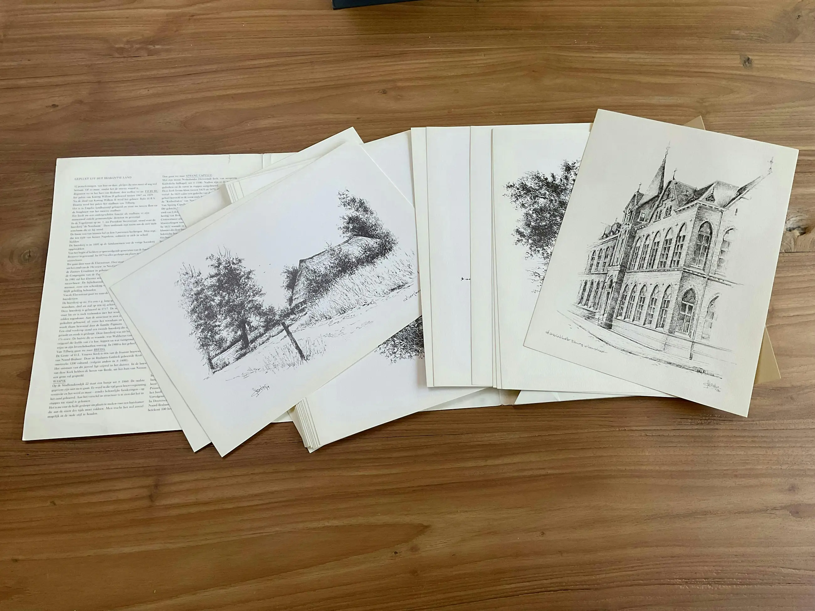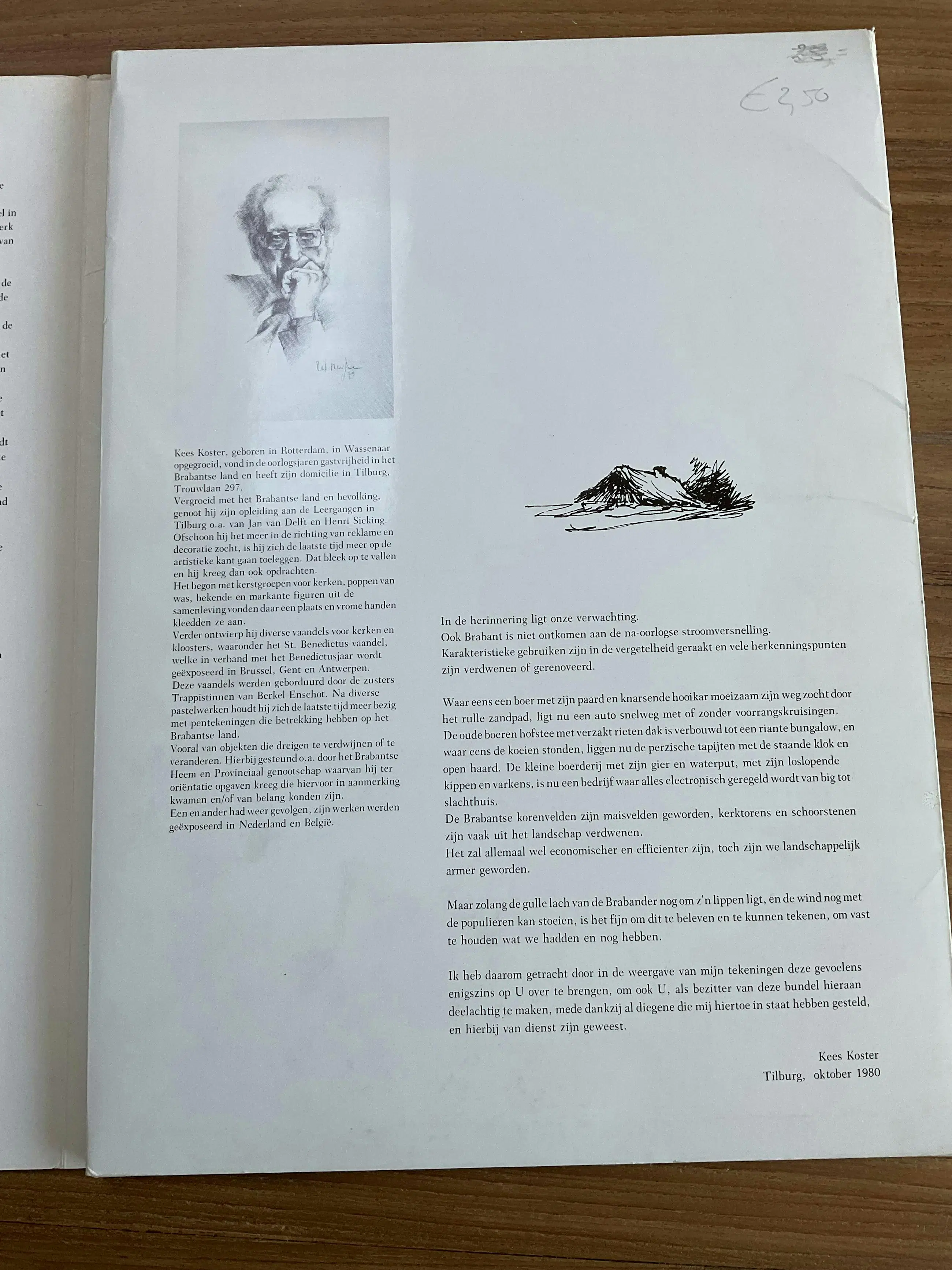Map met 32 litho’s van Kees Koster die erg onder de indruk was van Brabant. De map is compleet met alle 32 litho’s op zwaar papier(dun karton). Ze worden vaak als originele pentekeningen aangeboden, waarschijnlijk omdat er geen pixels zichtbaar zijn met een juweliersloup. De uitgave is van 1980 maar de tekeningen zijn gedateerd vanaf 1978