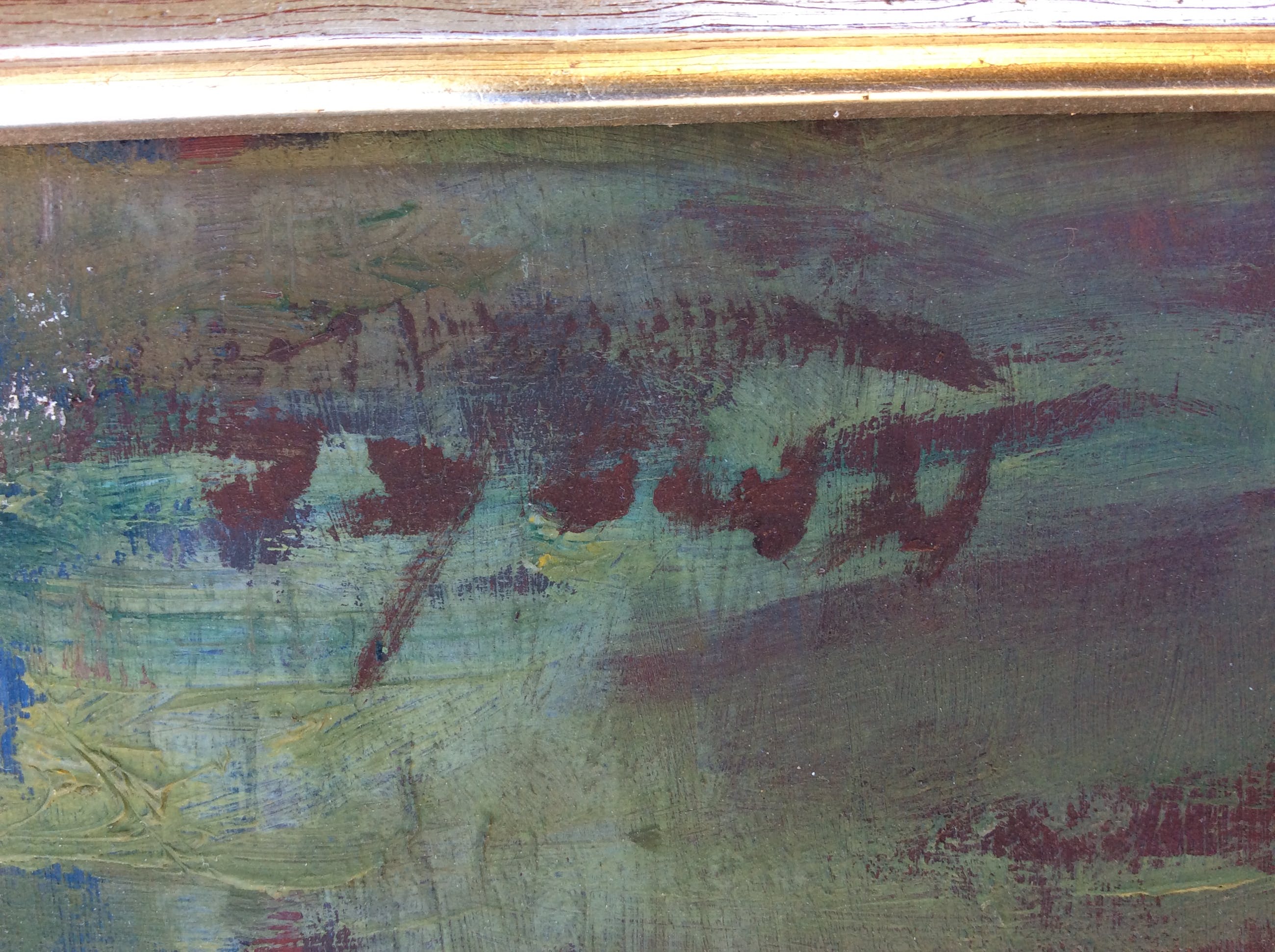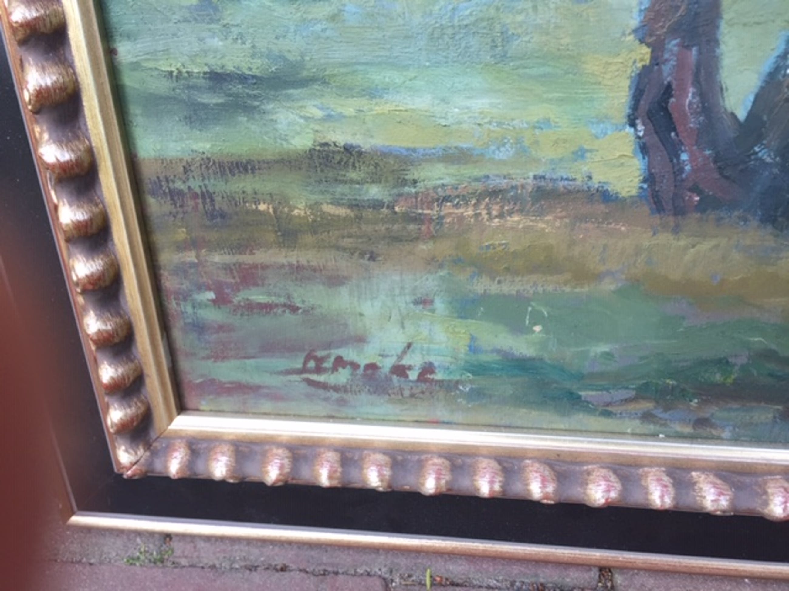 volgens mij is het een vroeg werk van Kees Maks, een groot kunsternaar bekend om zijn circusfiguren, paarden in dressuur en dansende paren.het schilderij is in goede staat, mooi van kleur en compositie.