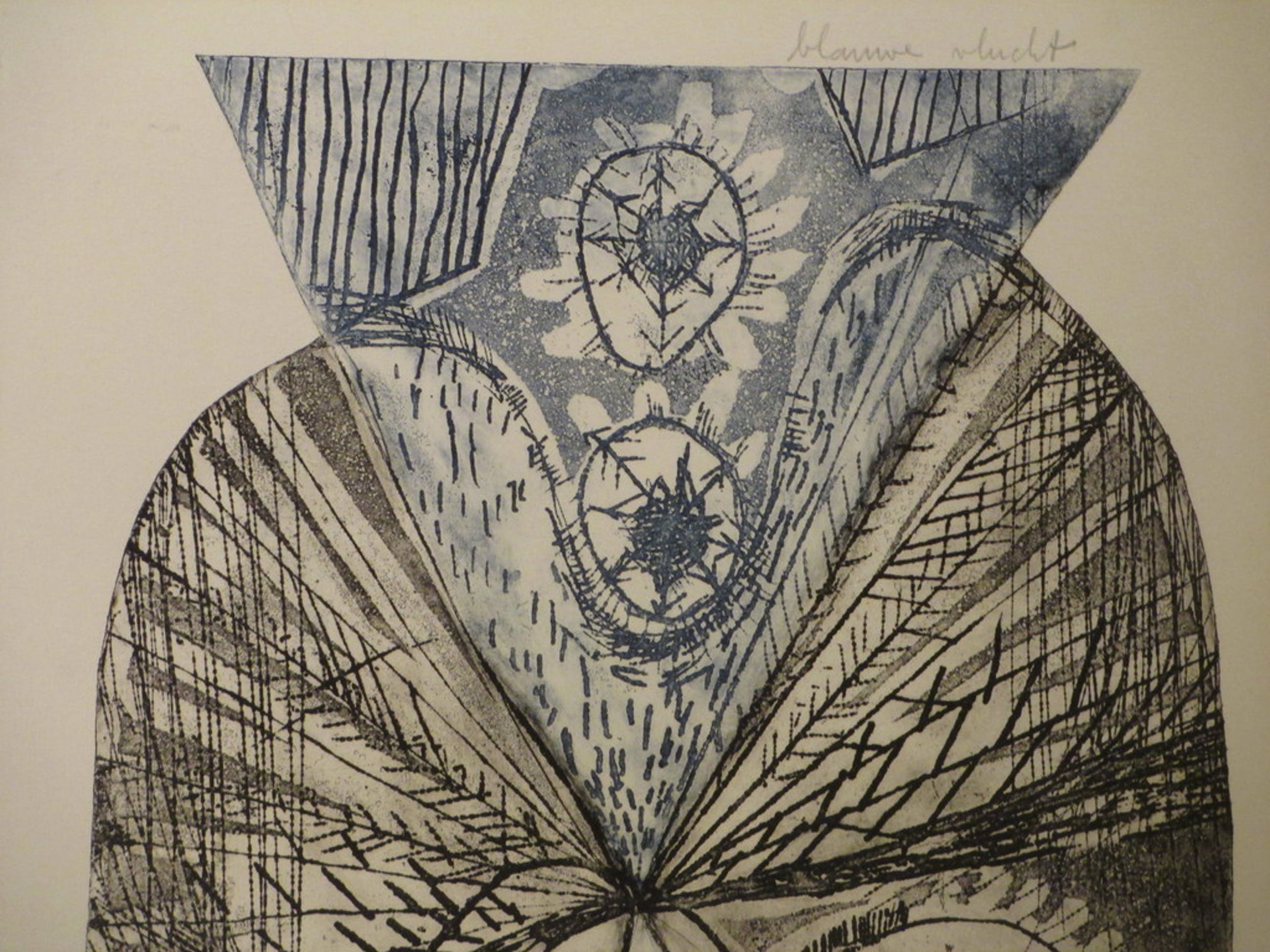 Getiteld r.b. 'Blauwe vlucht', genummerd l.o. '30/100'