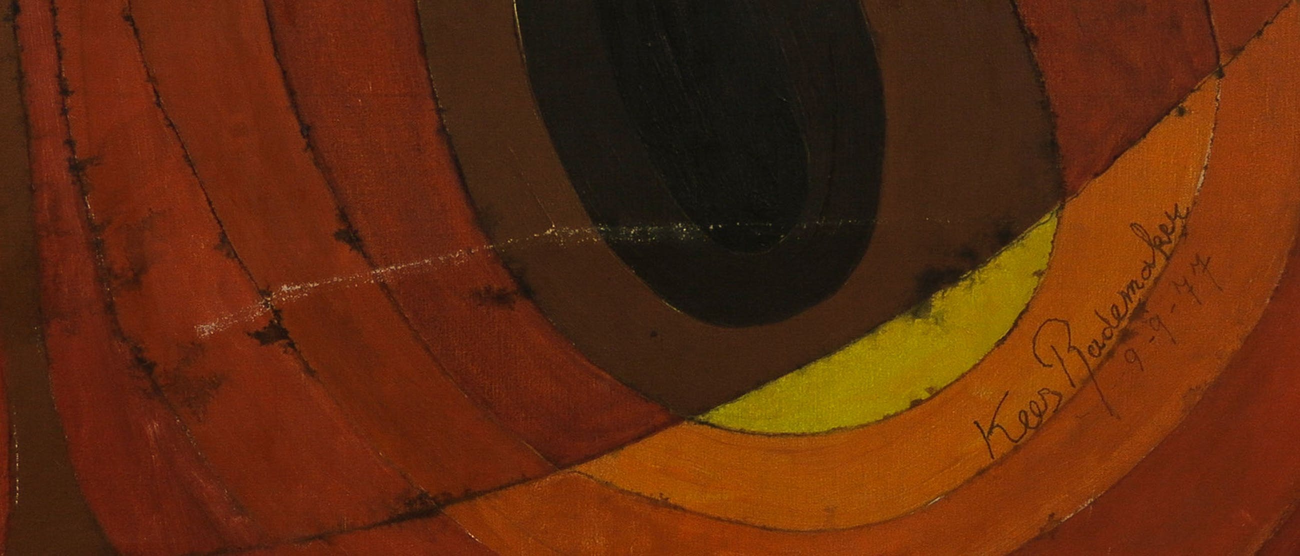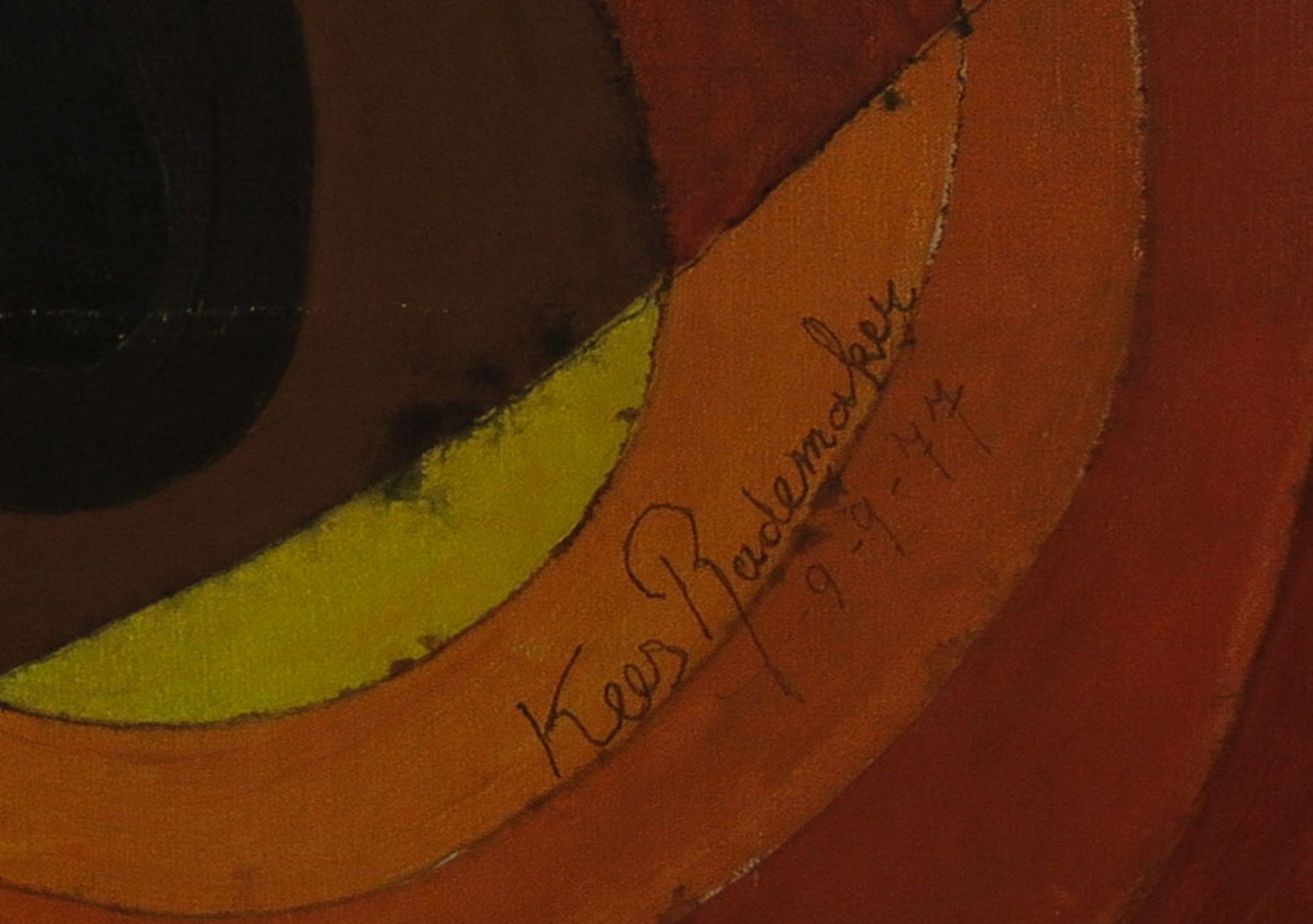 | Langs de rand onder loopt een brede kras door de verf. Zie laatste foto. | |