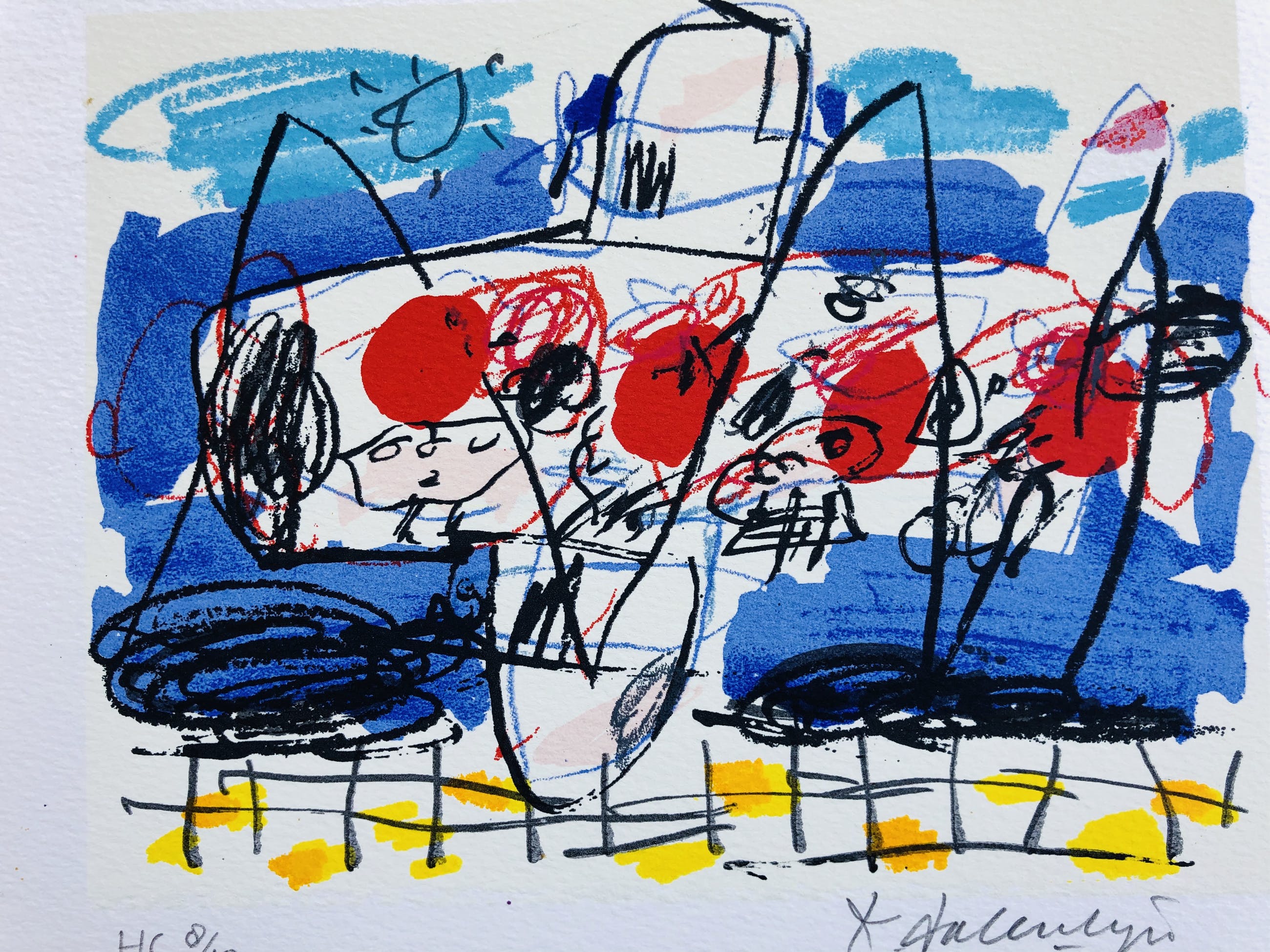 Vrolijke zeefdruk in nieuwstaat van Kees Salentijn. Gesigneerd en genummerd. Het werk verkeert in perfecte conditie. U kunt het werk vooraf komen bekijken in de schatkamer van galerie Rotor in Gorinchem of na aankoop ophalen. Het werk kan ook verzonden worden via aangetekende post. Of tijdens de pandemie gratis worden opgeslagen tot nadere orde.