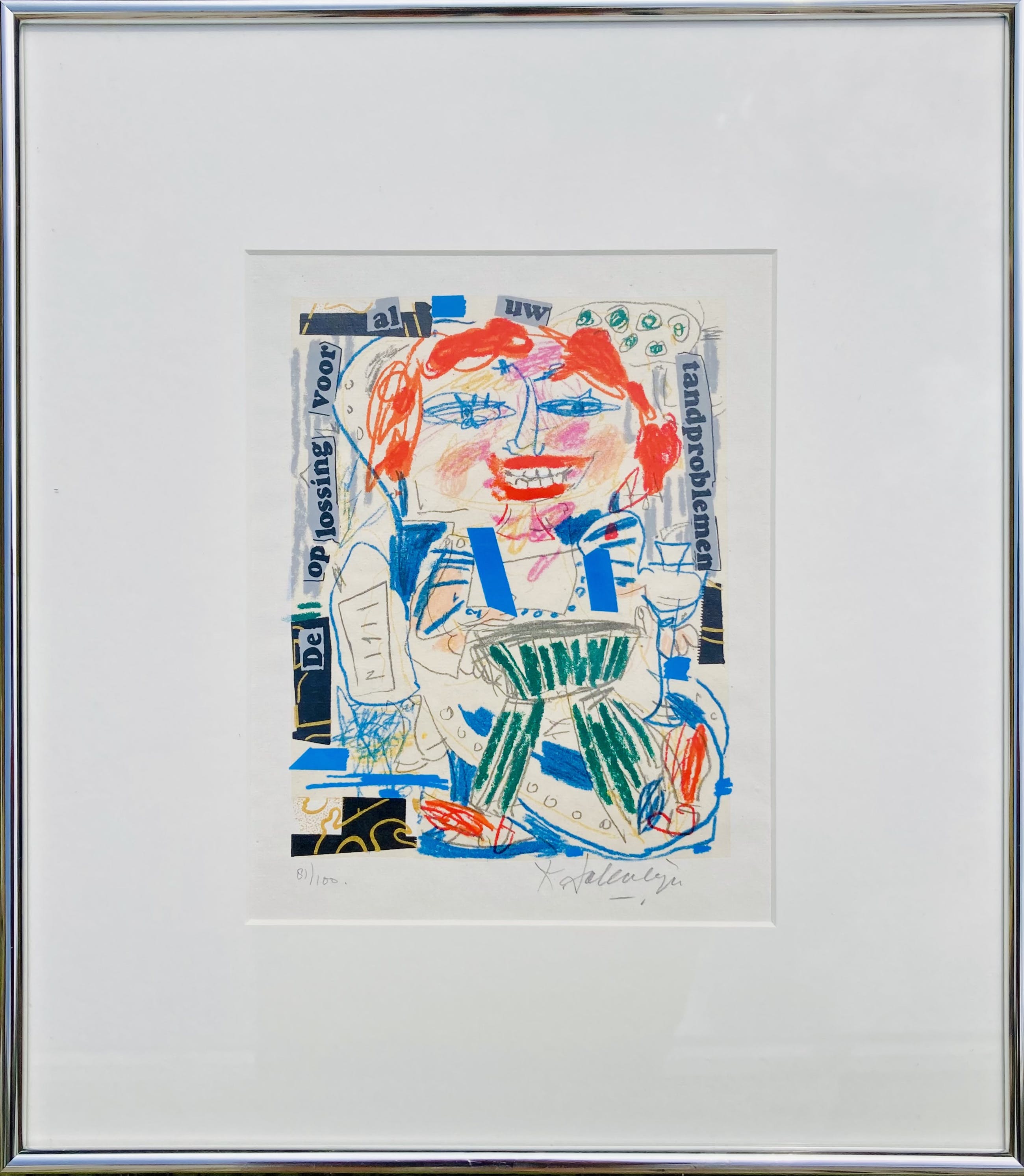 Vrolijke zeefdruk van Kees Salentijn. Gesigneerd en genummerd 81/100. Werk en zilver metalen lijst in perfect conditie. U kunt het werk vooraf komen bekijken. Ophalen of verzending mogelijk.