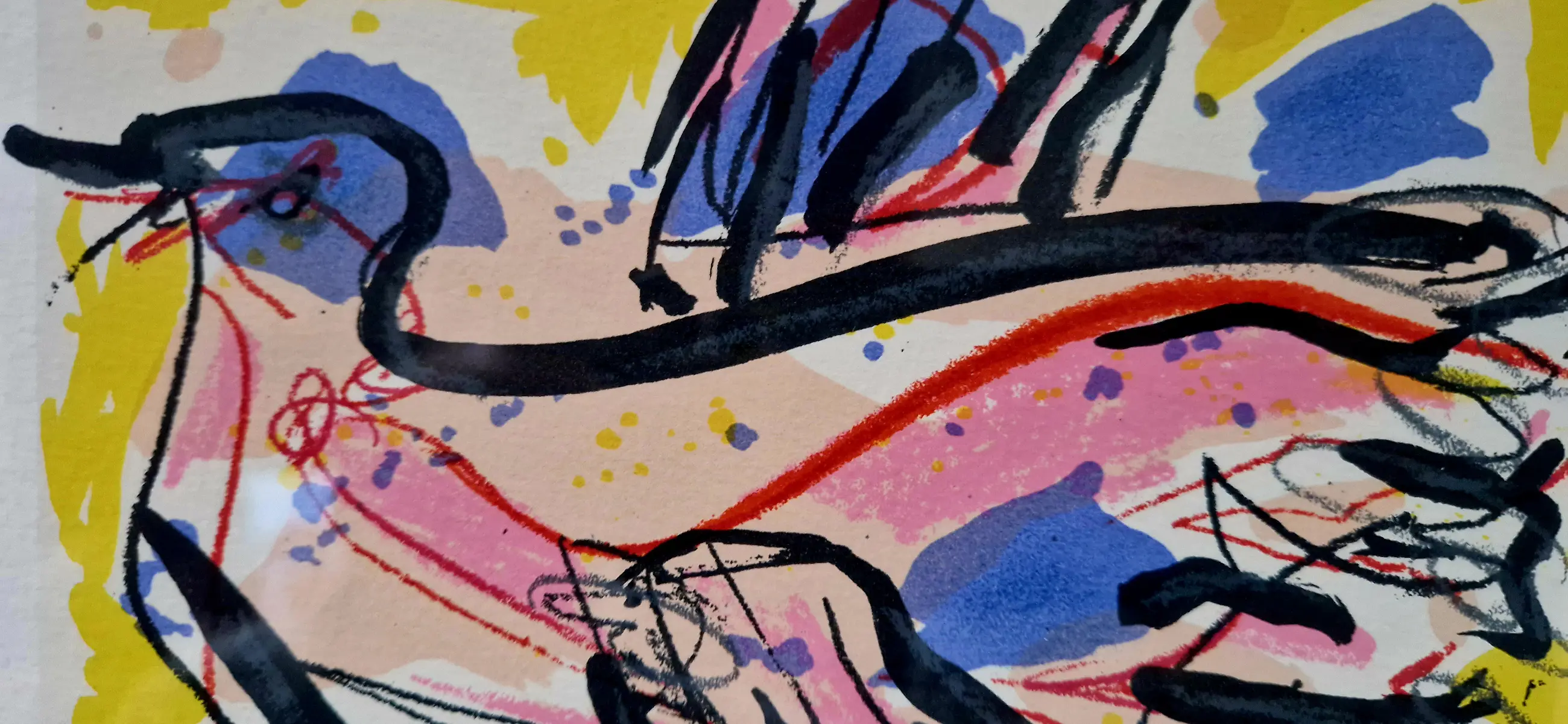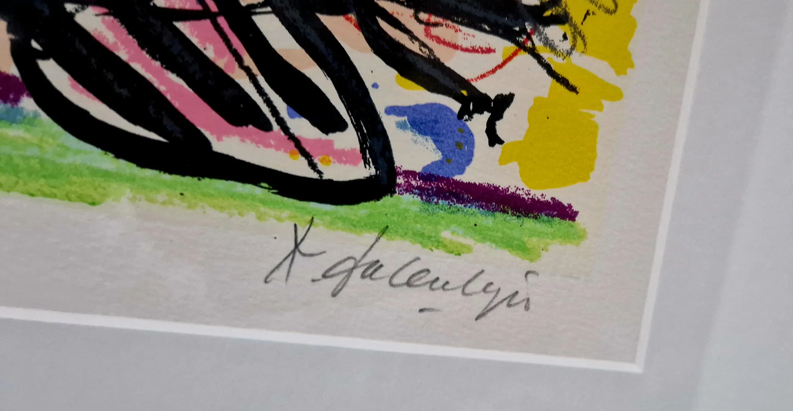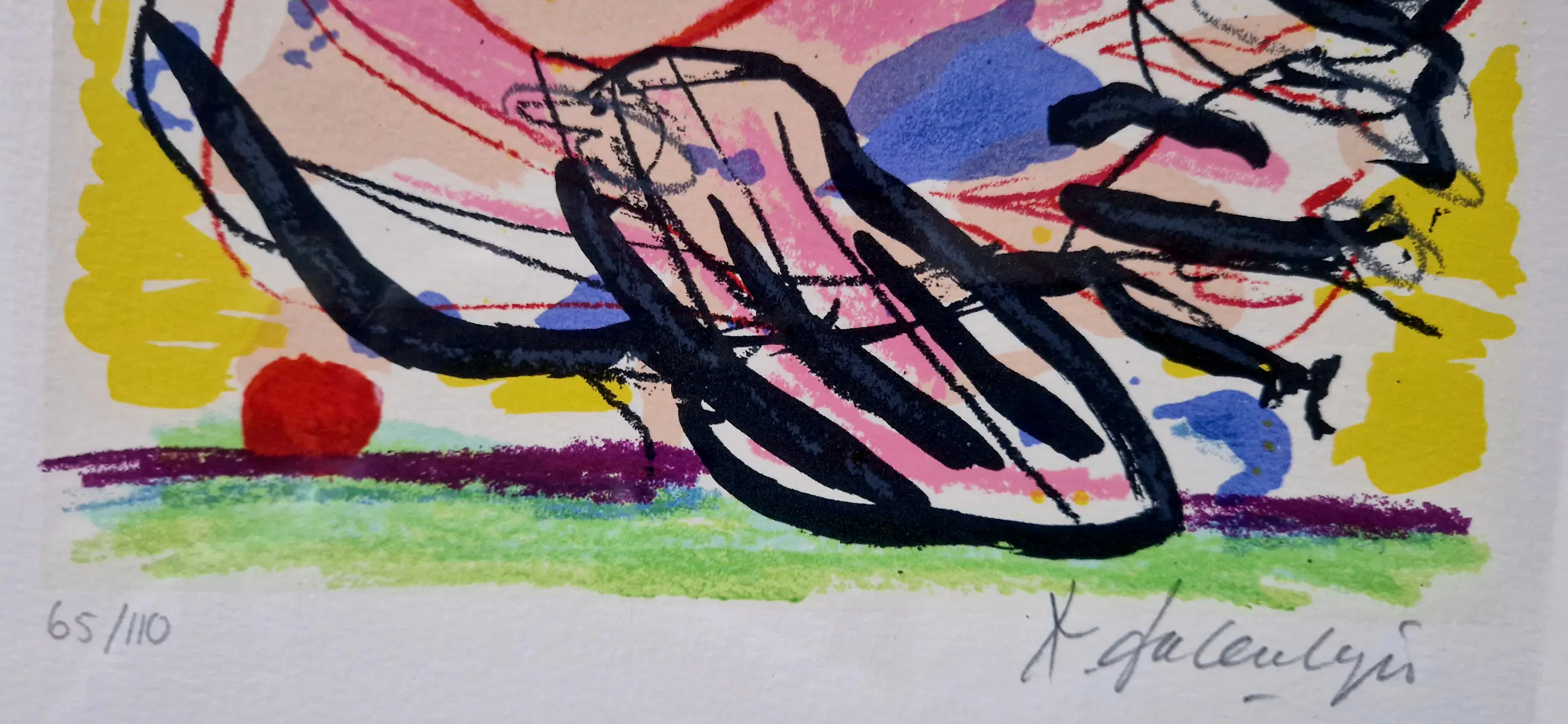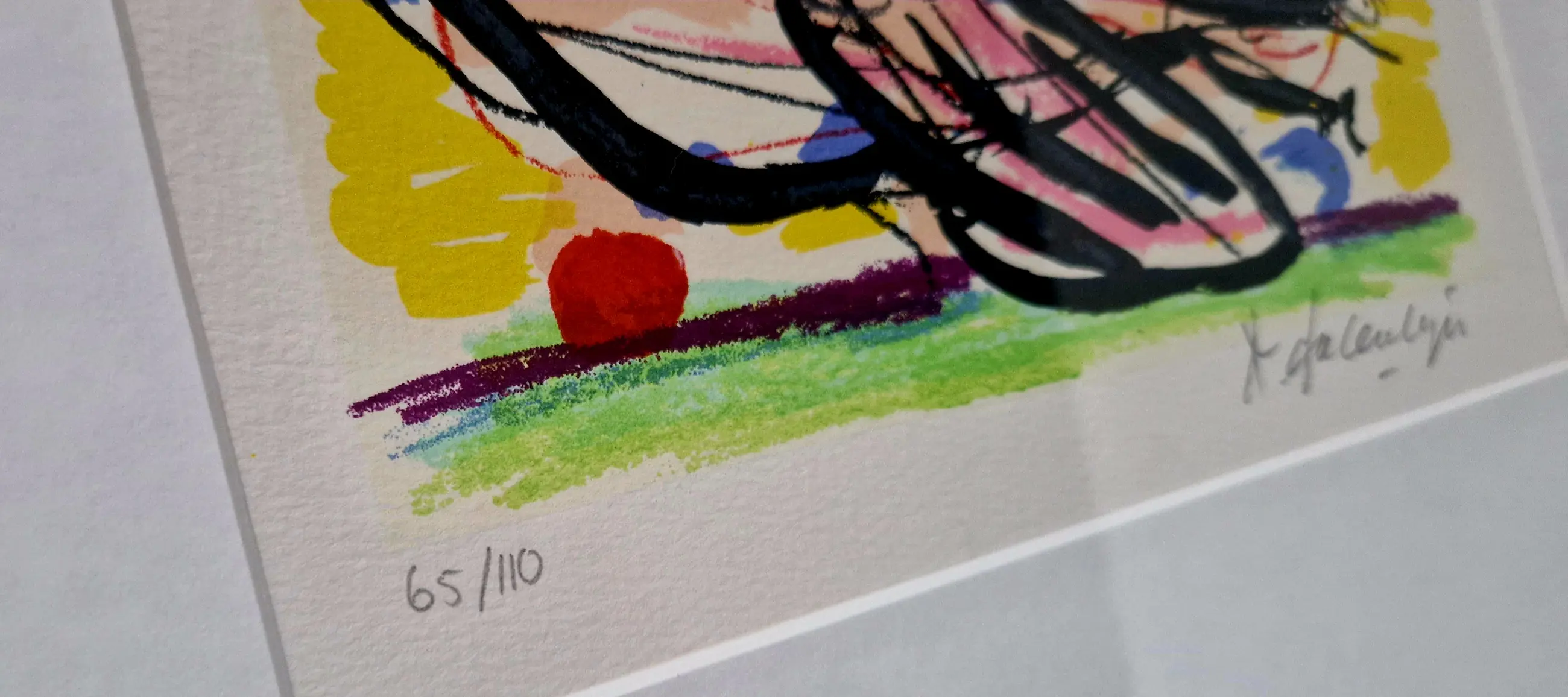 Frisse kleurrijke zeefdruk van de Nederlandse kunstenaar Kees Salentijn. Gesigneerd en genummerd 65/110.