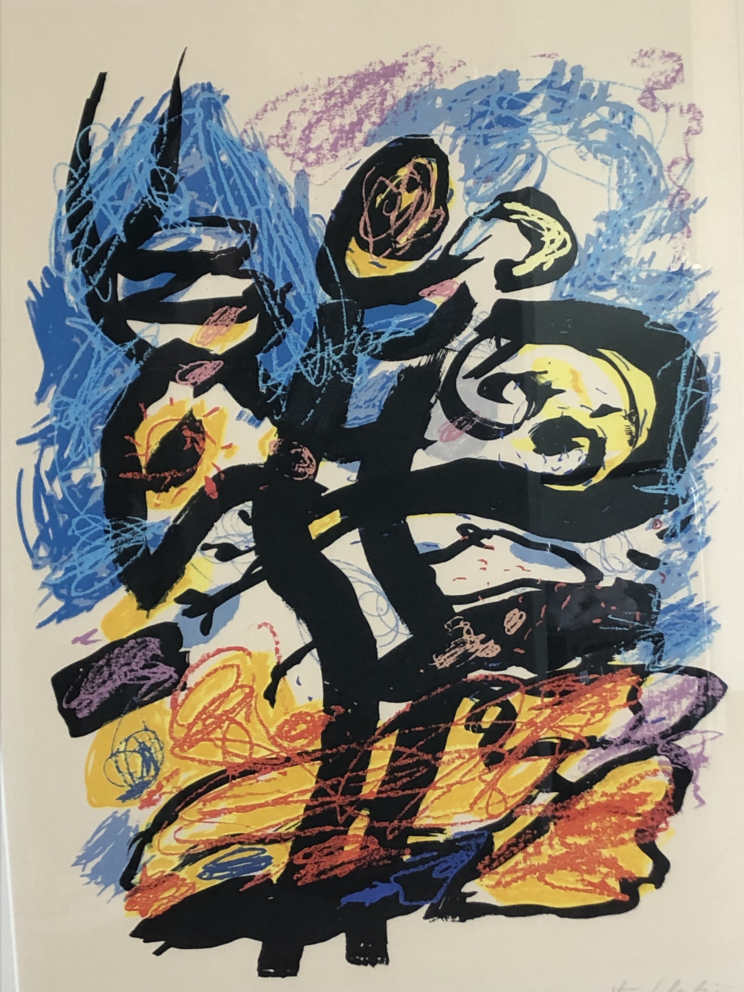 Grote kunstwerk van Kees Salentijn in een sierlijke lijst. Kan zo aan de muur worden opgehangen. De lijst is niet nieuw. Het werk kan worden opgehaald of per koerier worden gestuurd. U kunt het werk vooraf komen beoordelen in de schatkamer van galerie Rotor in Gorinchem.