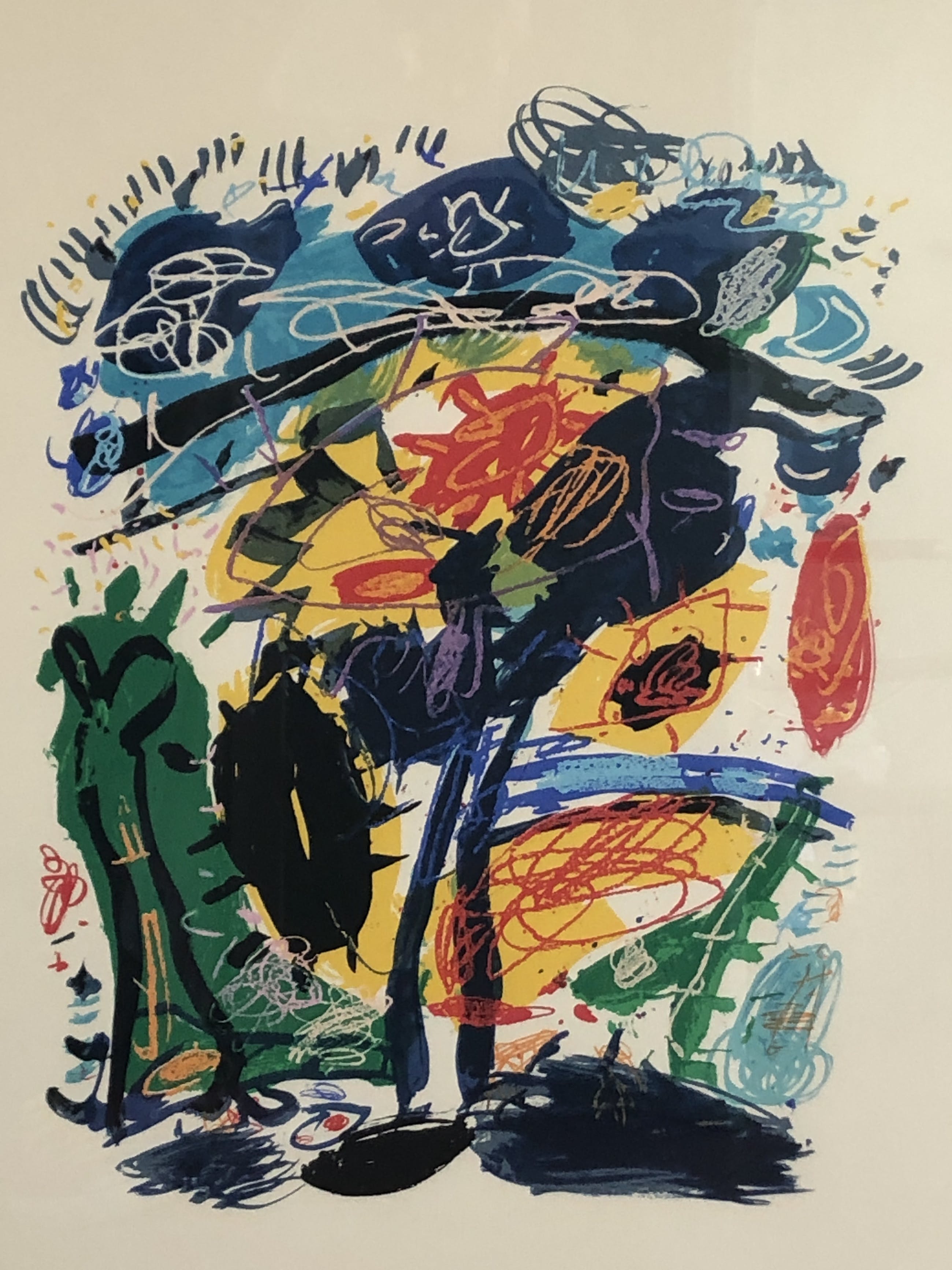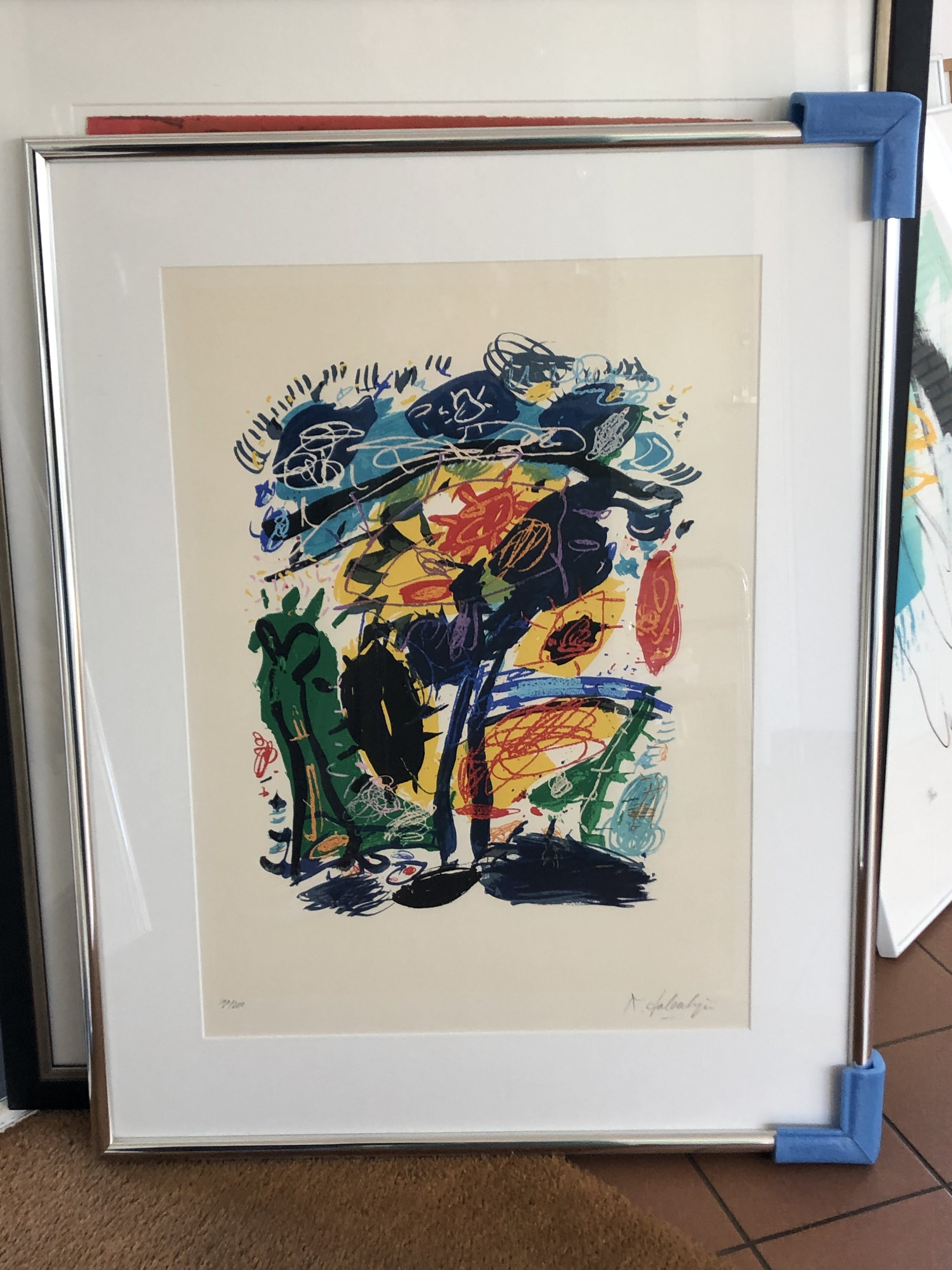 Grote kunstwerk van Kees Salentijn in een sierlijke lijst. Kan zo aan de muur worden opgehangen. De lijst is niet nieuw. Het werk kan worden opgehaald of per koerier worden gestuurd. U kunt het werk vooraf komen beoordelen in de schatkamer van galerie Rotor in Gorinchem.