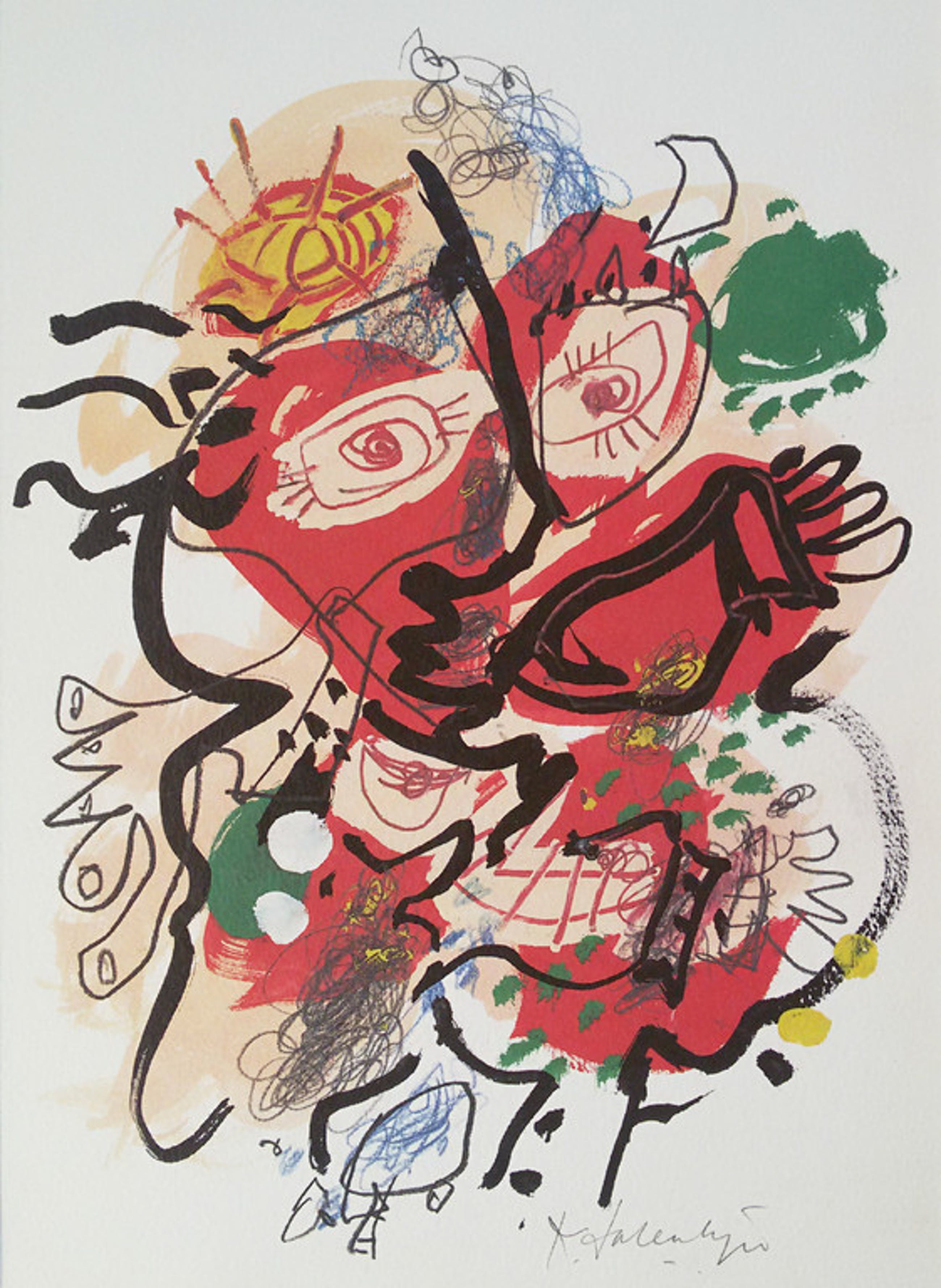 Karakteristieke litho van Kees Salentijn. Met potlood gesigneerd, in passe-partout. In zeer goede conditie. Litho kan, indien gewenst, zeer eenvoudig en zonder schade uit passe-partout worden gehaald.