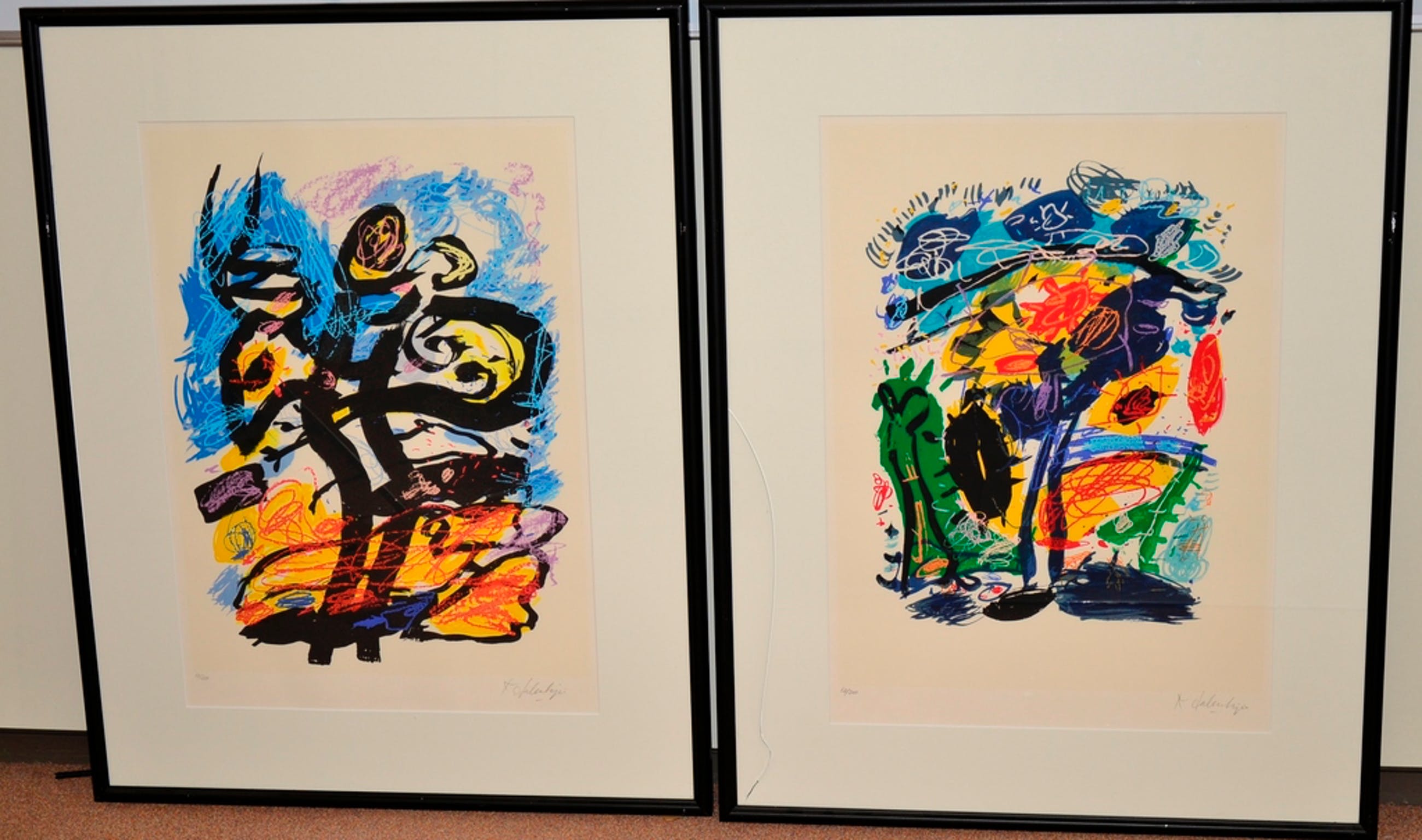 Twee grote litho’s van Kees Salentijn. Mooi ingelijst, alleen heeft 1 lijst glasbreuk (Niet duur om te vervangen)