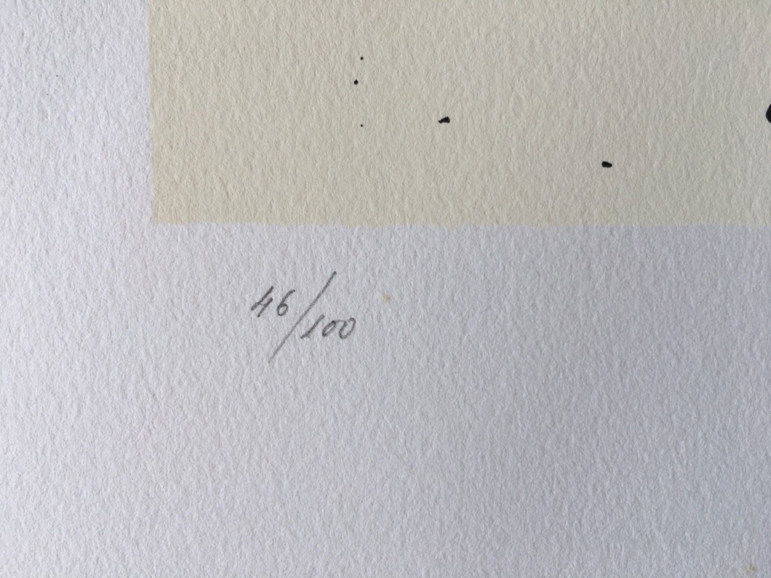De zeefdruk bevindt zich in een goede conditie en is niet ingelijst.