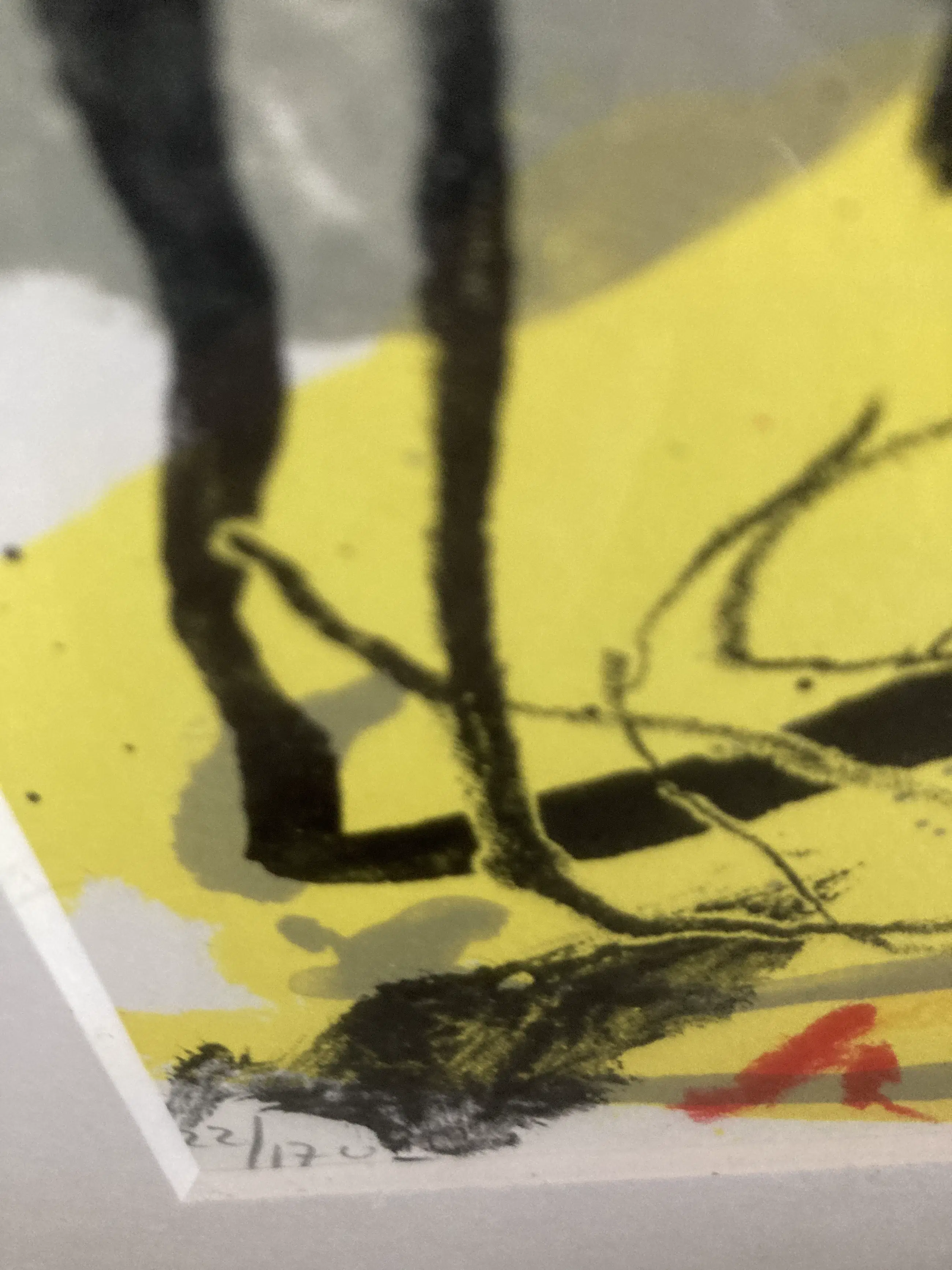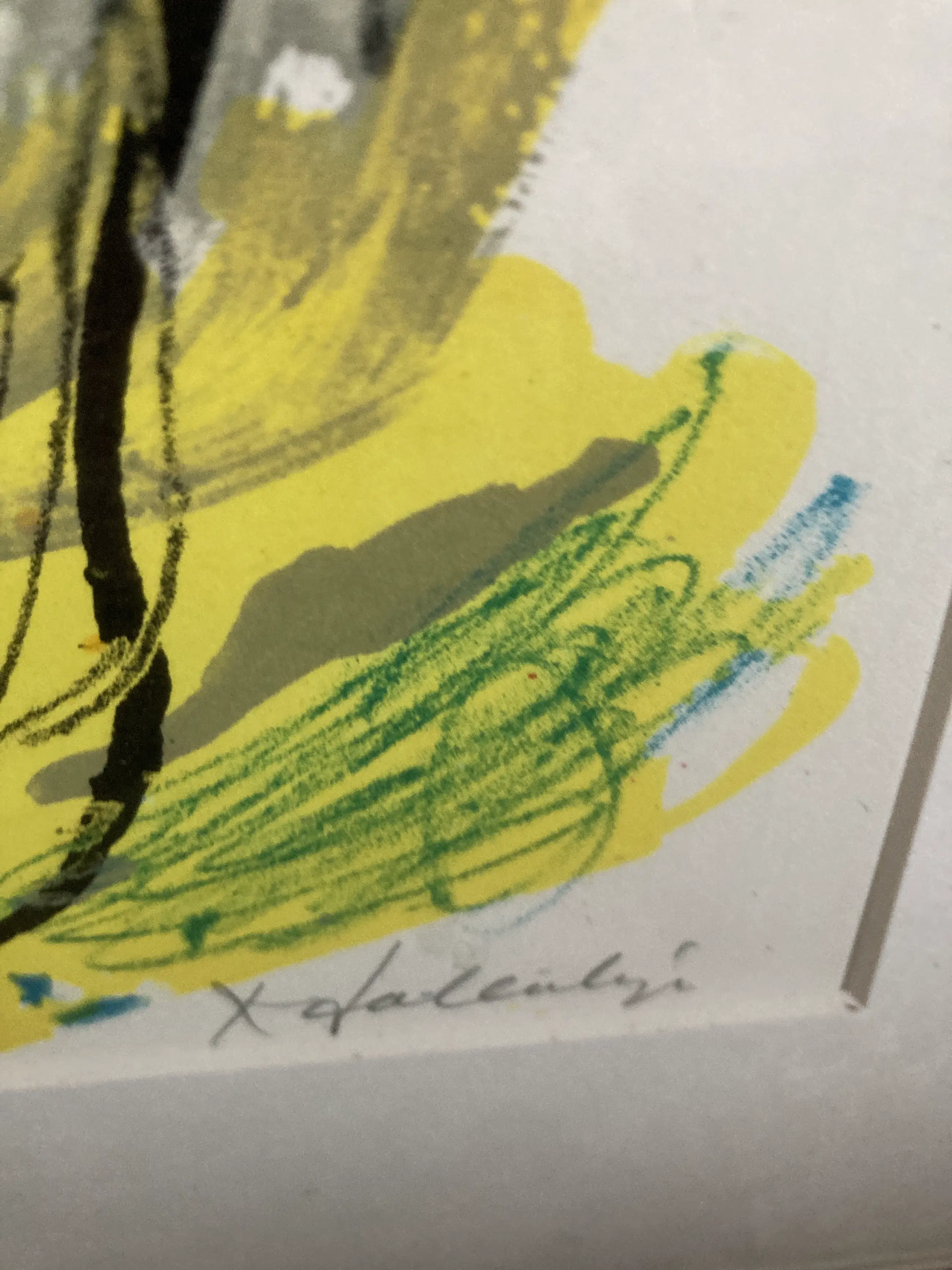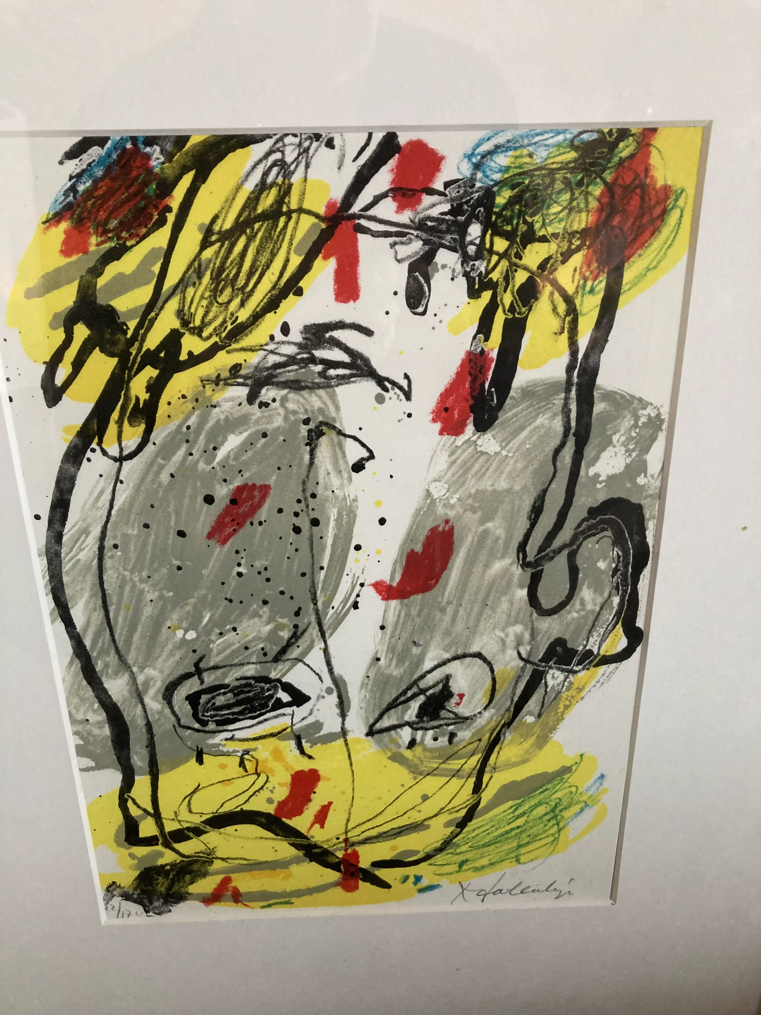 De zeefdruk zit in een Barth lijst met passe-partout. Met l.o. 122/170 met potlood en r.o. KSalentijn met potlood.