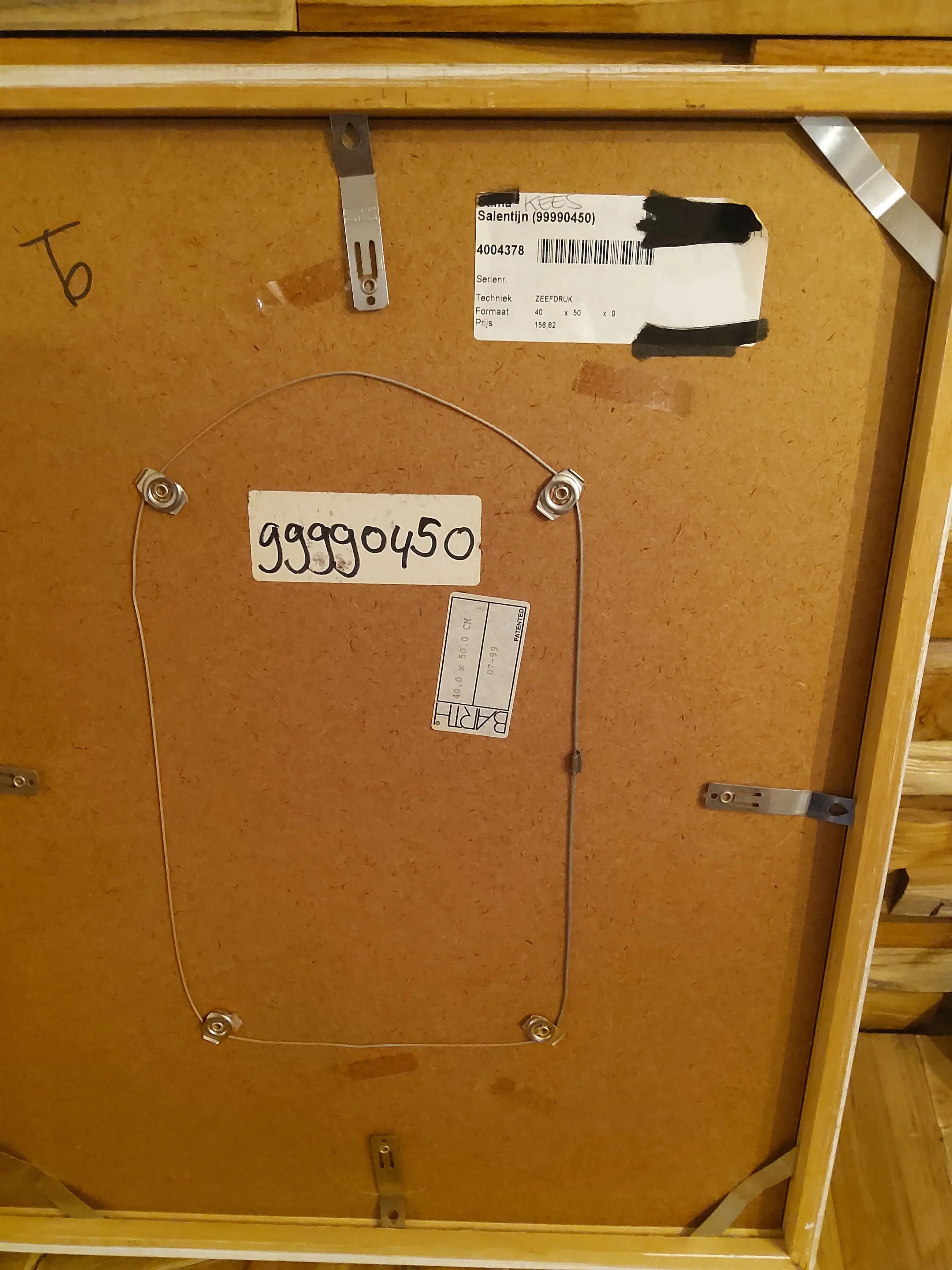 Het werk is af te halen op locatie. Als koper dient u zelf verpakkingsmateriaal mee te nemen. De locatie is: Vrasene, België