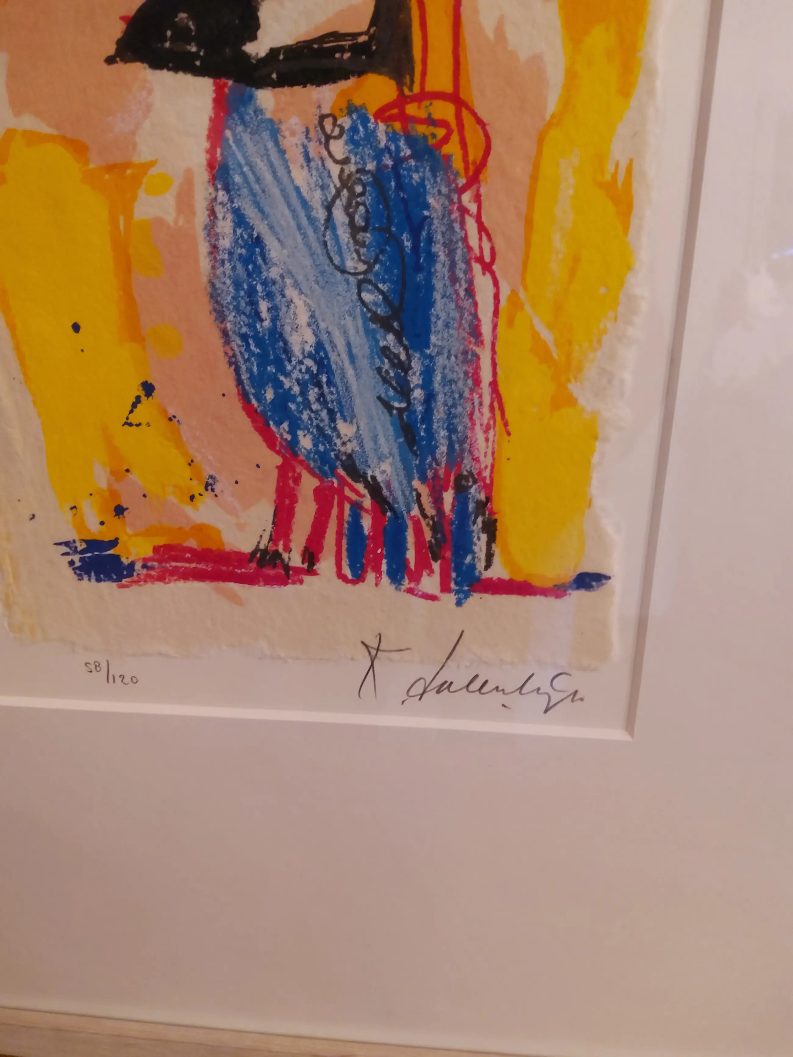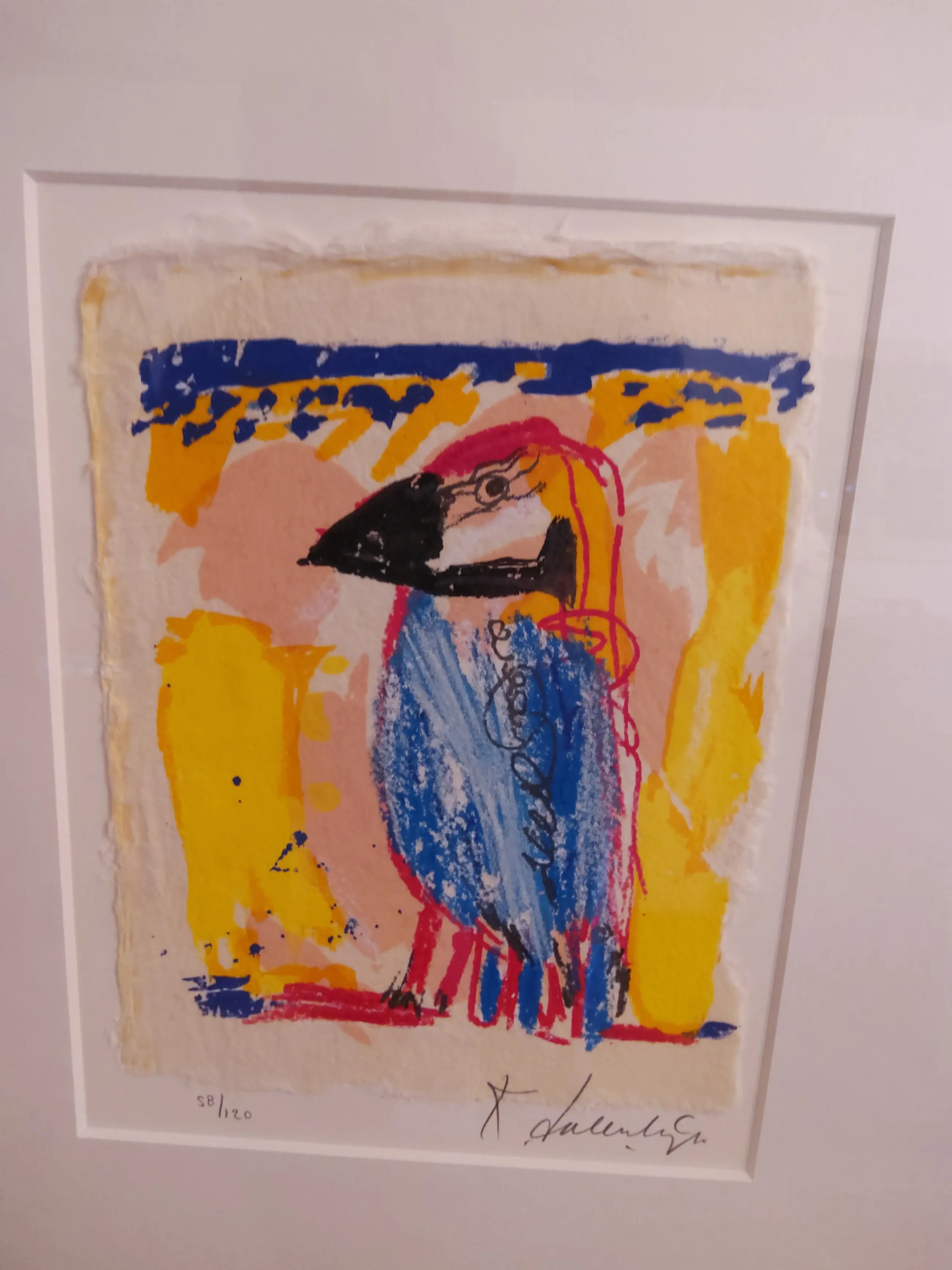 Mooie zeefdruk en geschept papier van kees salentijn in een mooie houten kader
