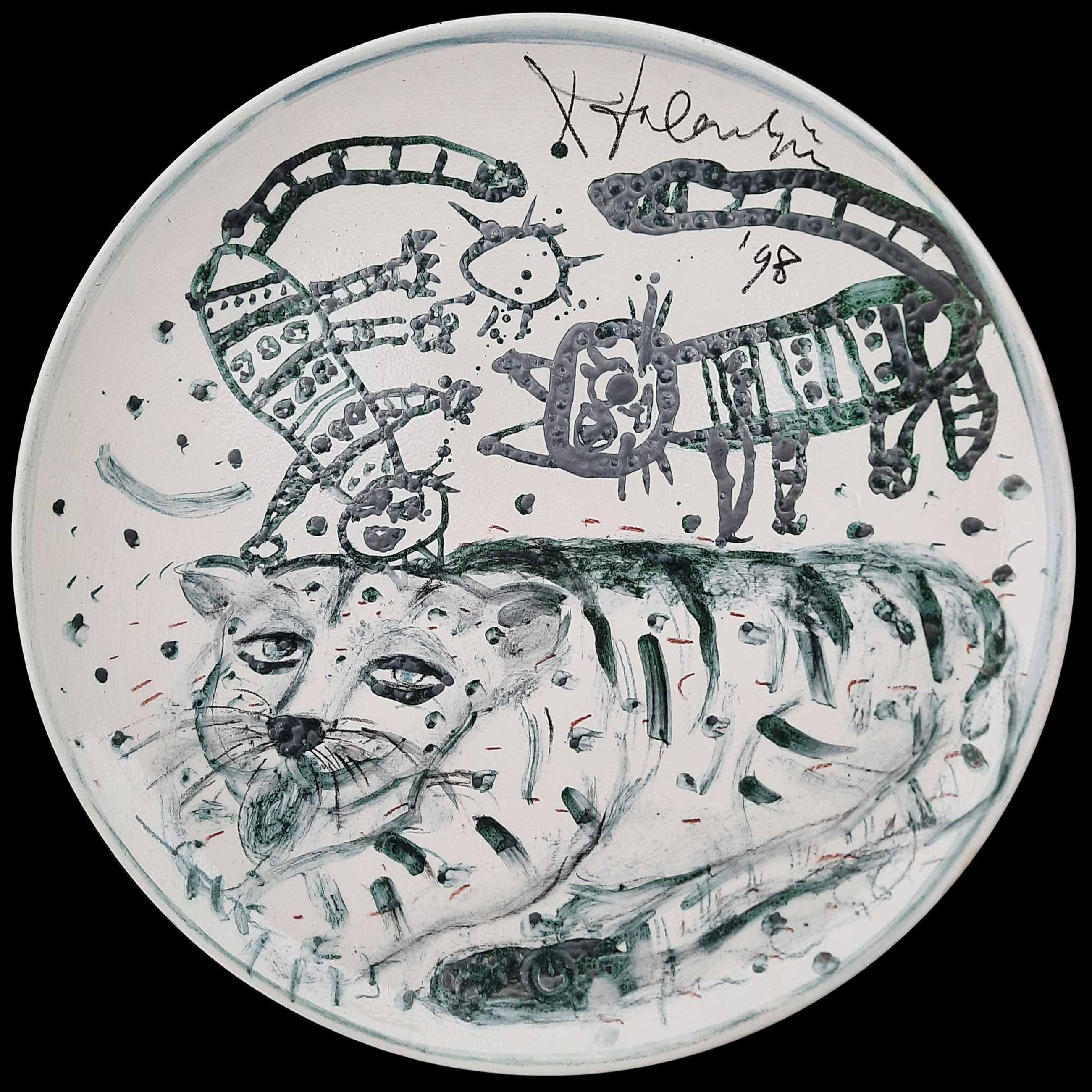 Uniek bord in uitstekende staat. Vervaardigd bij Keramisch Atelier van Baerlo (K.A.B.). Er is in 1999 een boek uitgegeven met de keramieken borden van Kees die hij maakte in Baarlo. ‘De averechtse methode in keramiek’. Wordt verzekerd verzonden. Afhalen verdient de voorkeur.