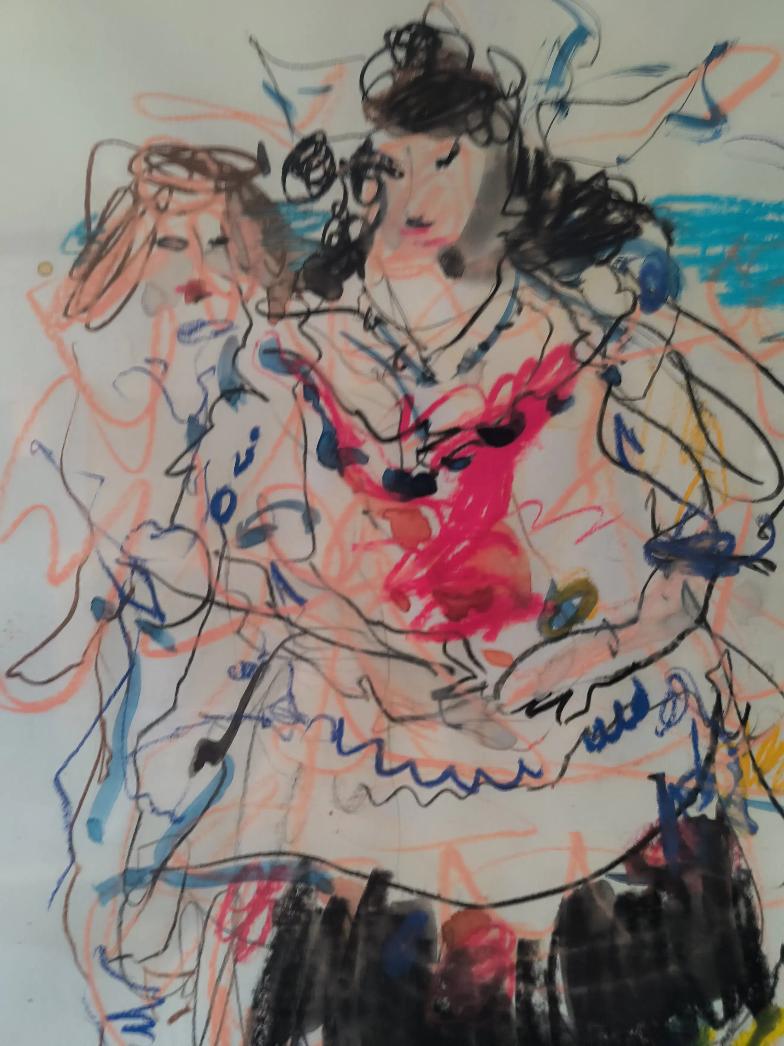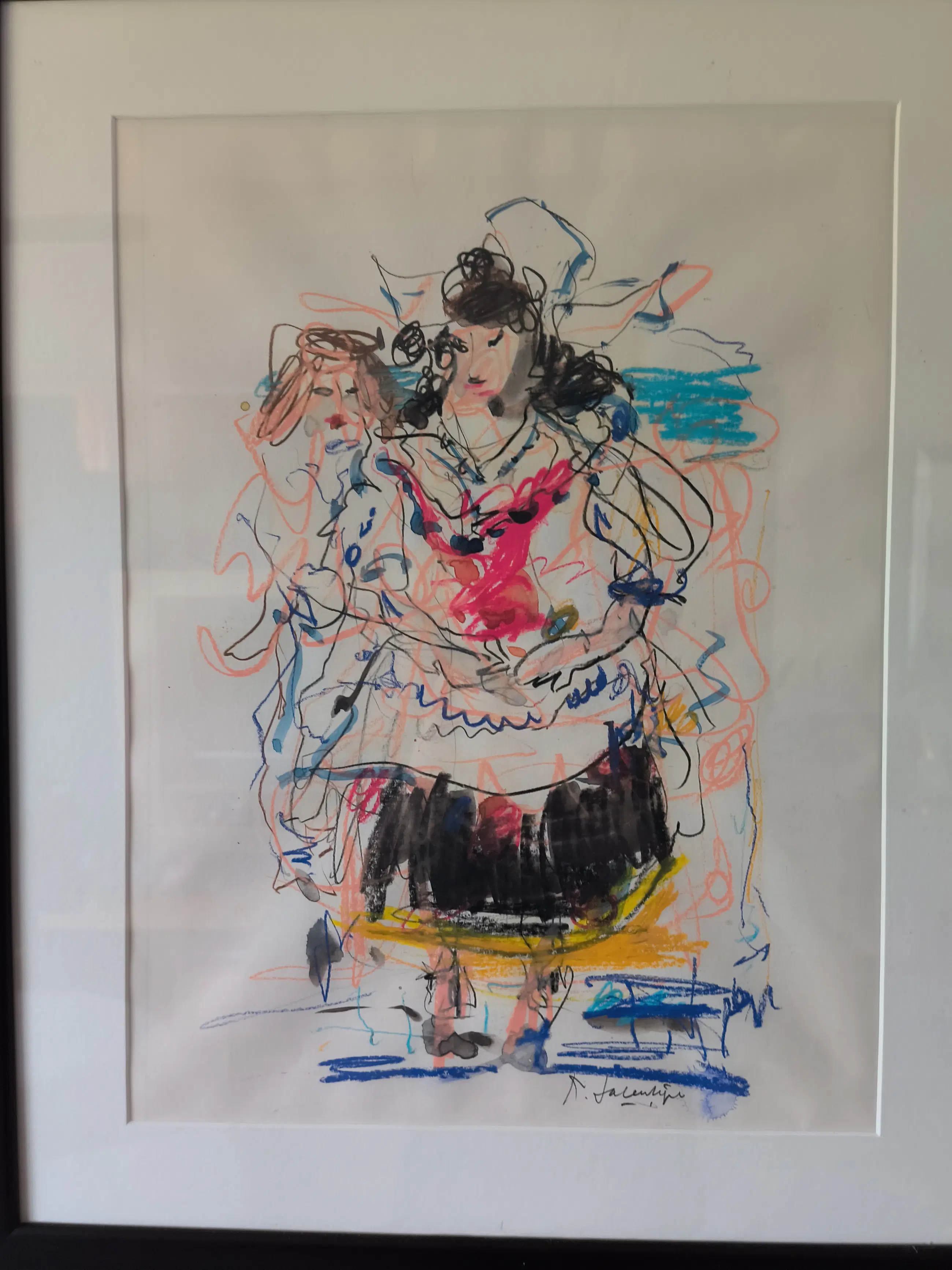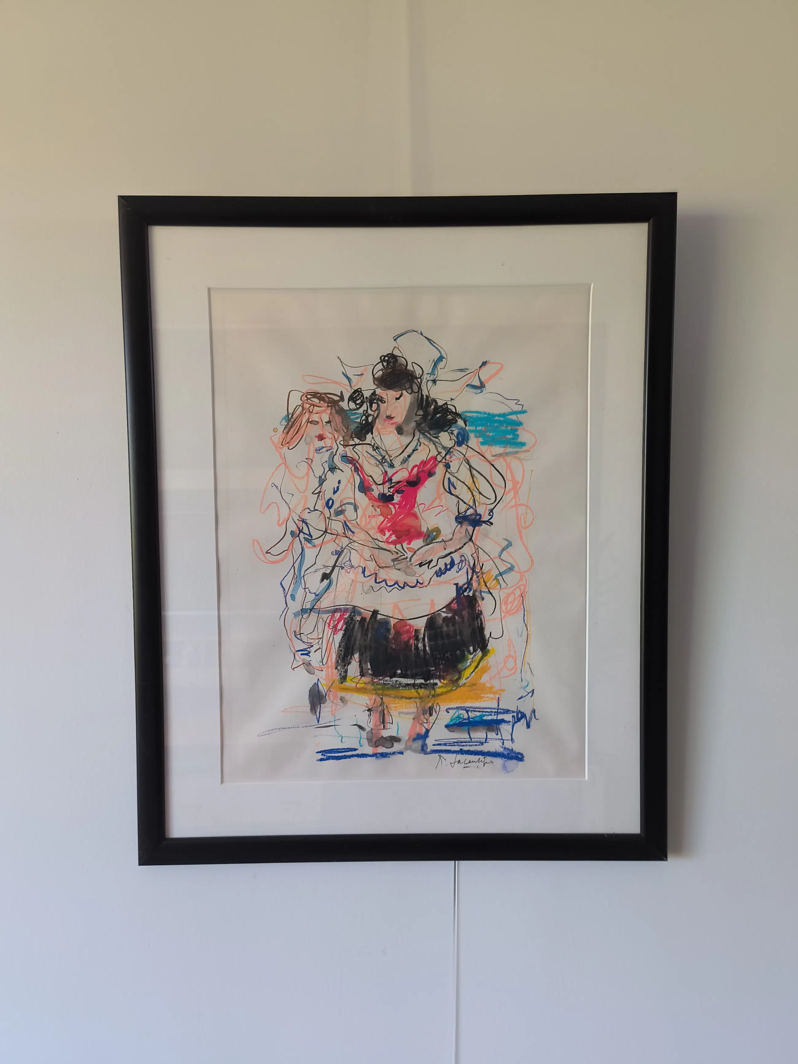 Kees Salentijn 1947 gemengde techniek gevangen in gemengde techniek " Twee Vrouwen"
