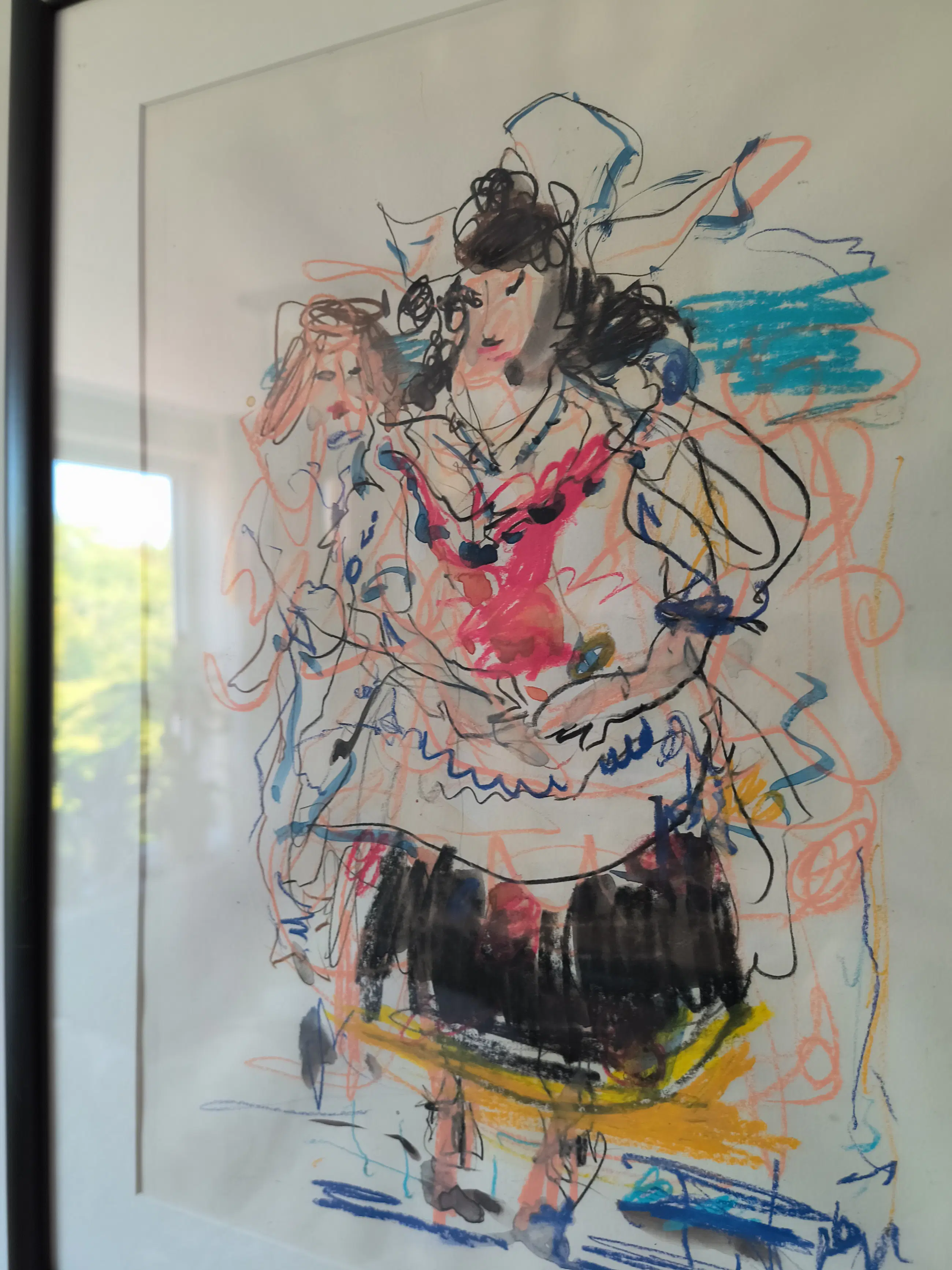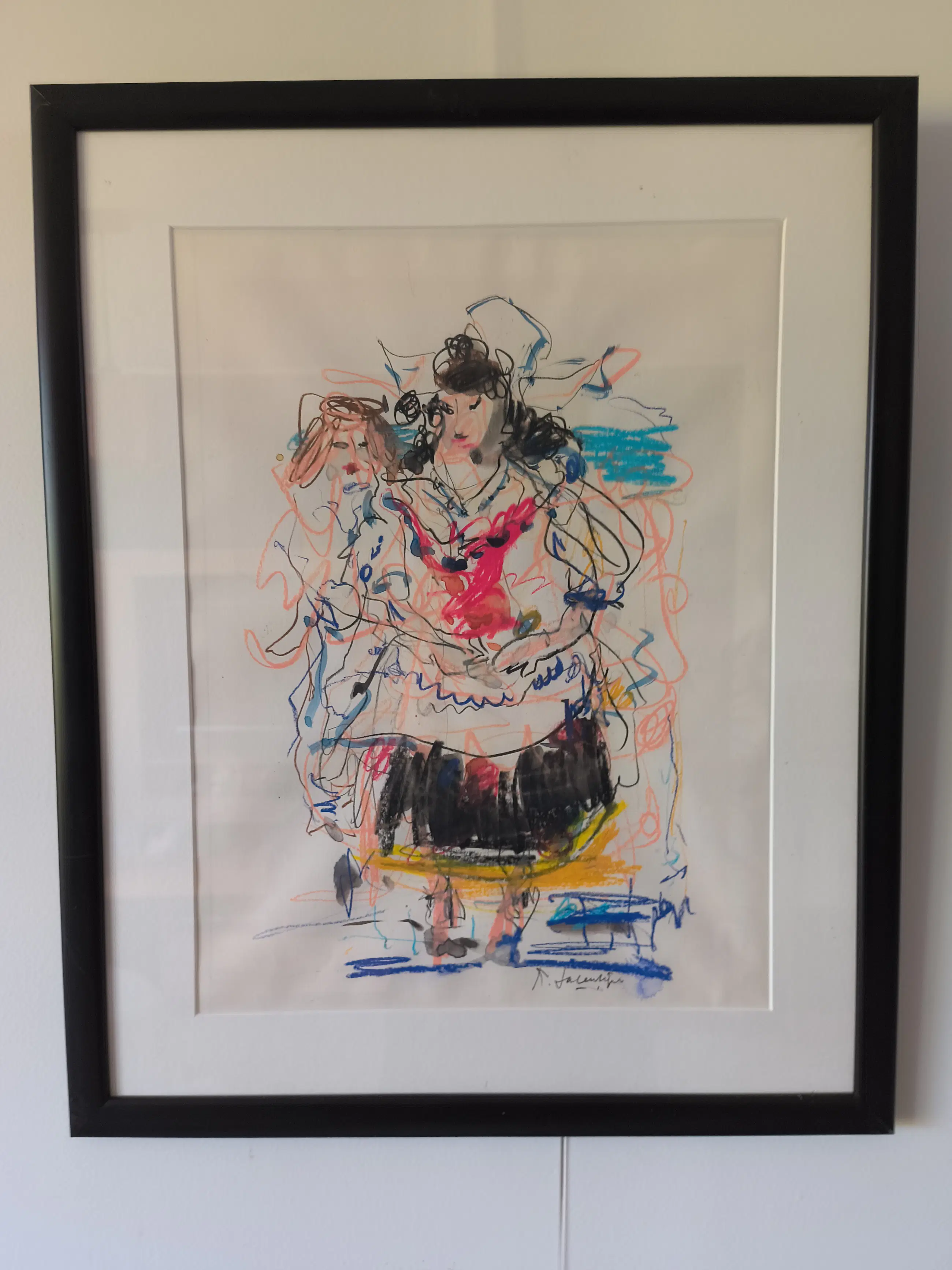 Gewoon prachtig kan zo aan de muur leuke voorstelling gevangen in gemengde techniek, prachtig kleur, lijst goed, lust voor het oog
