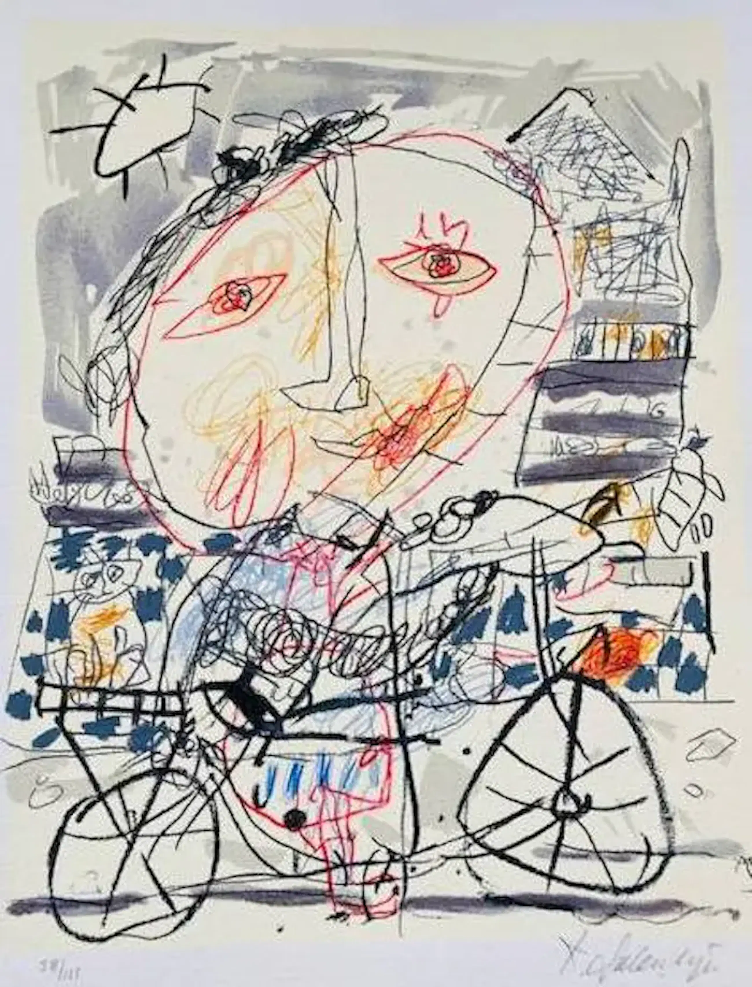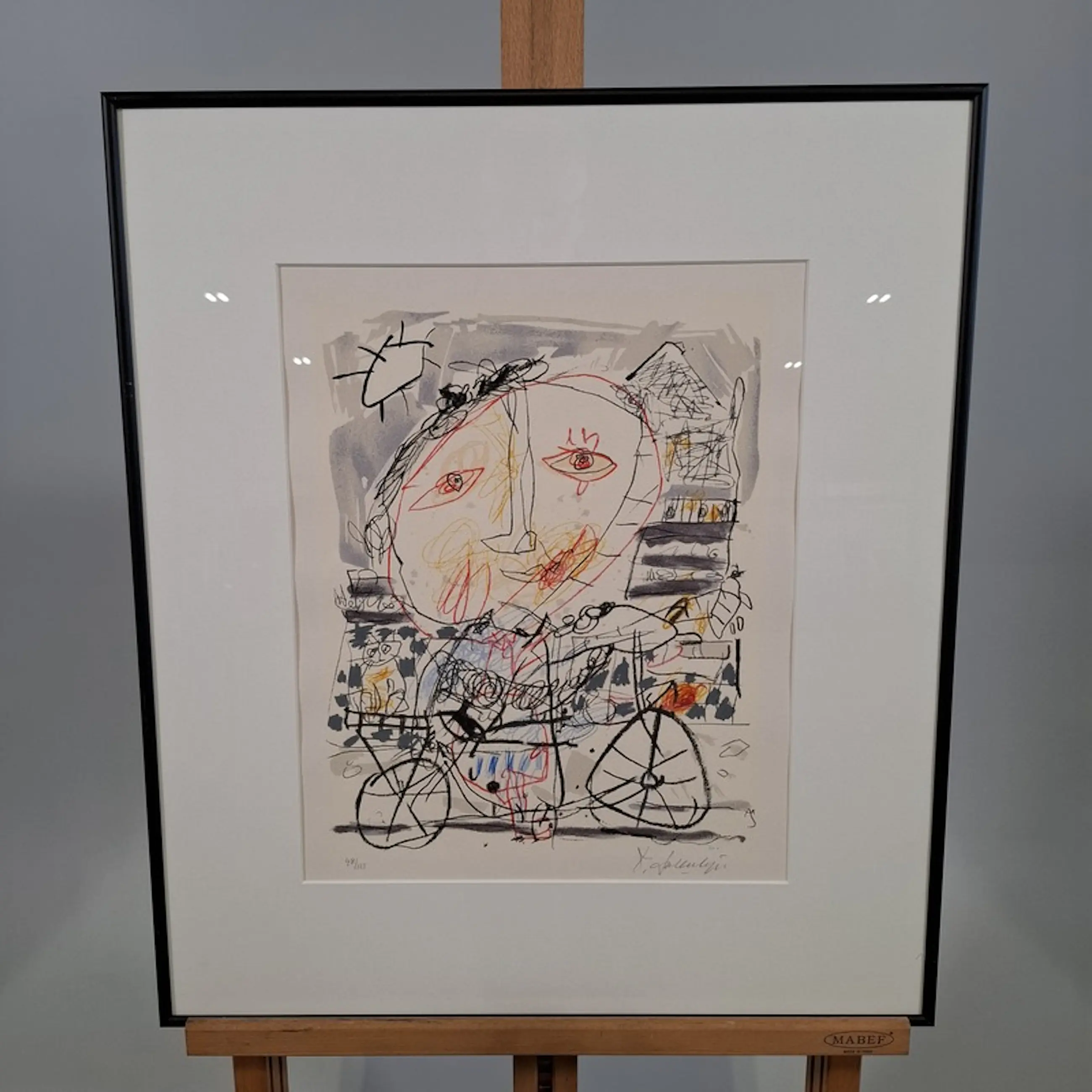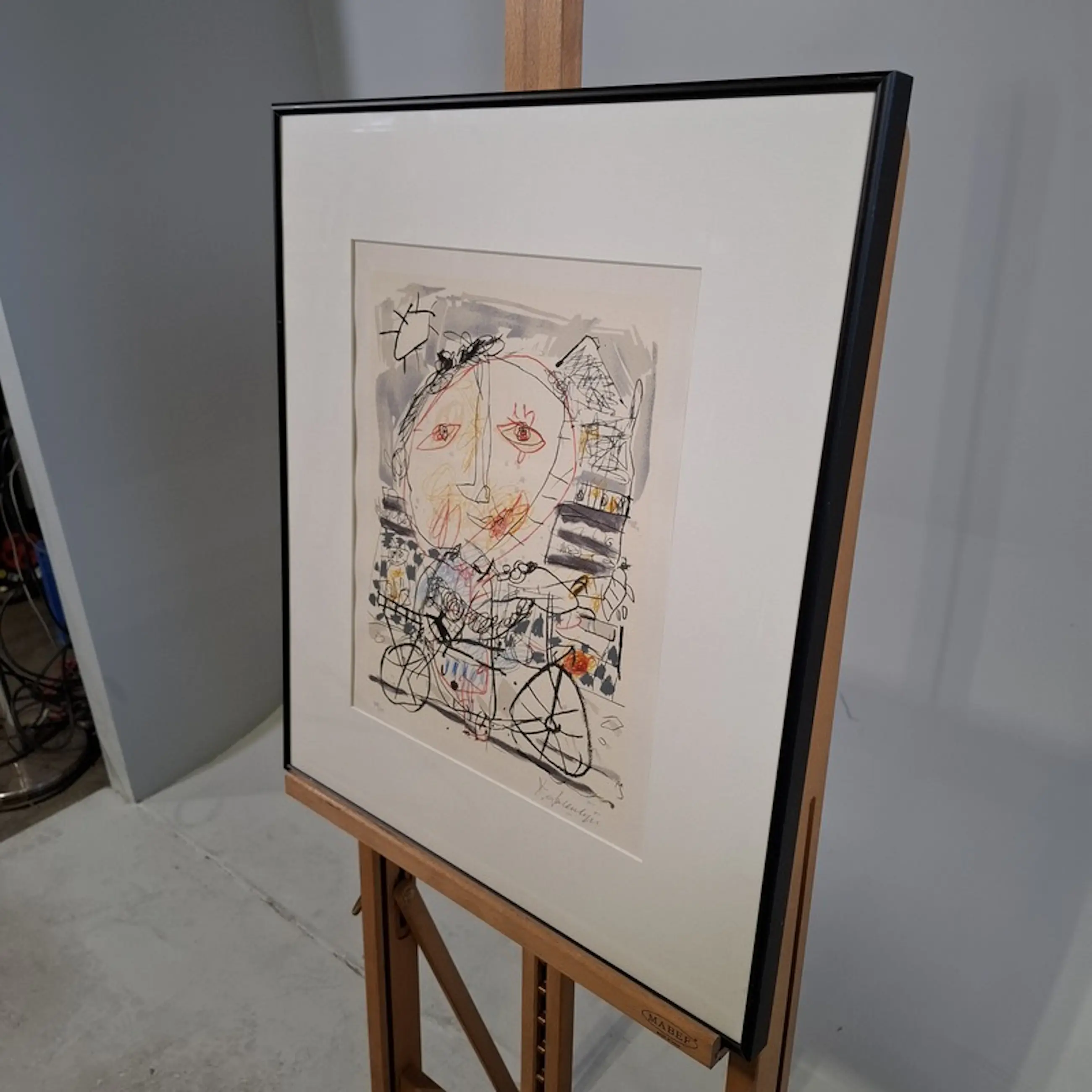 Kees Salentijn - Zeefdruk, De stadsfietser ingelijst - Verkocht
