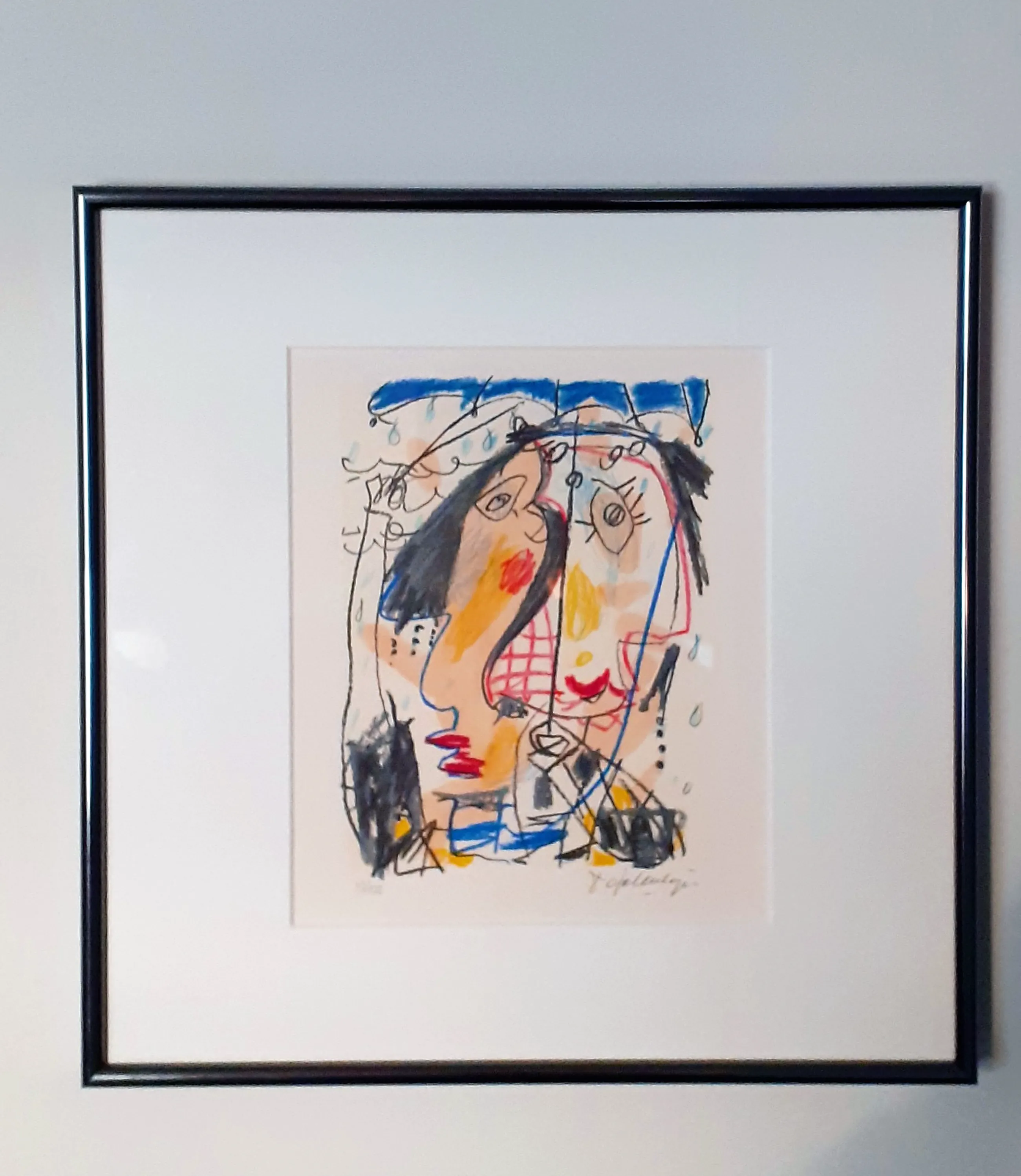 Zeefdruk op dik papier, schitterend gelijst in stevige zilverkleurige lijst met passepartout, ophangklaar Oplage: 117/125 Hand gesigneerd door Salentijn, rechtsonder