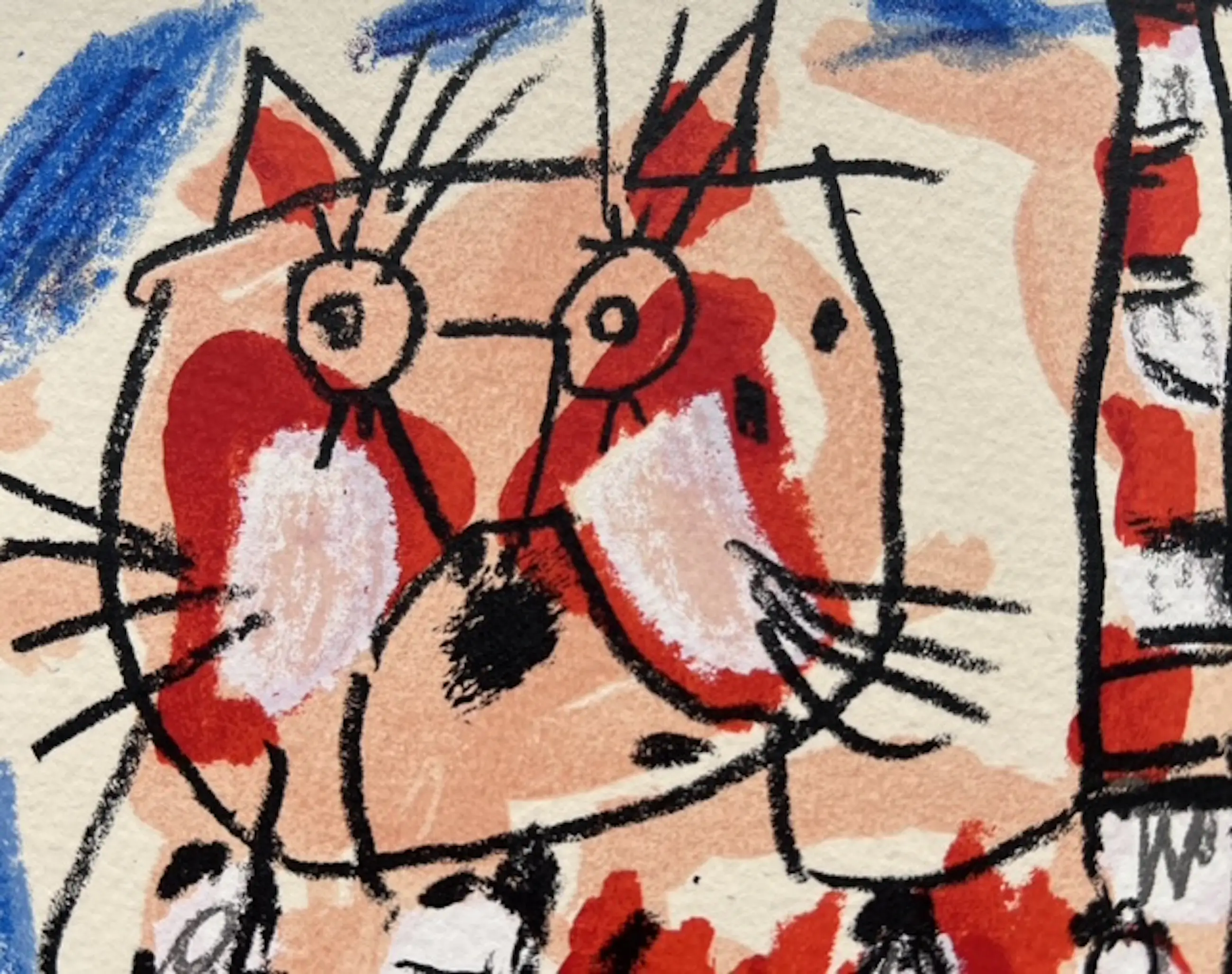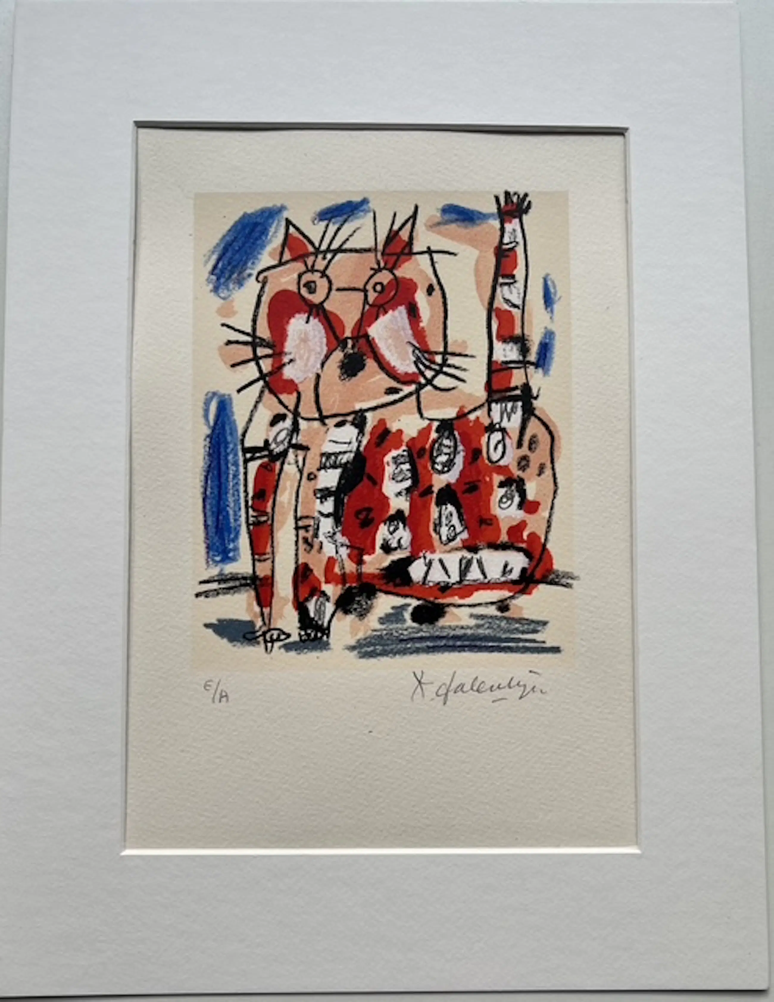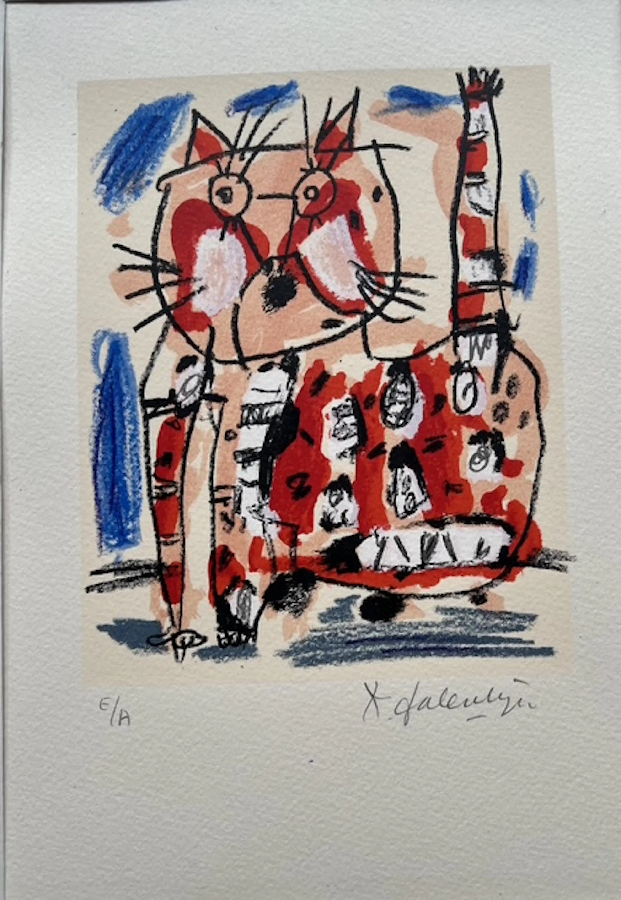 Een mooie zeefdruk op geschept papier van Kees Salentijn. Het is een mooi katje, het is handgesingneerd en het is epreuve d´artiste.