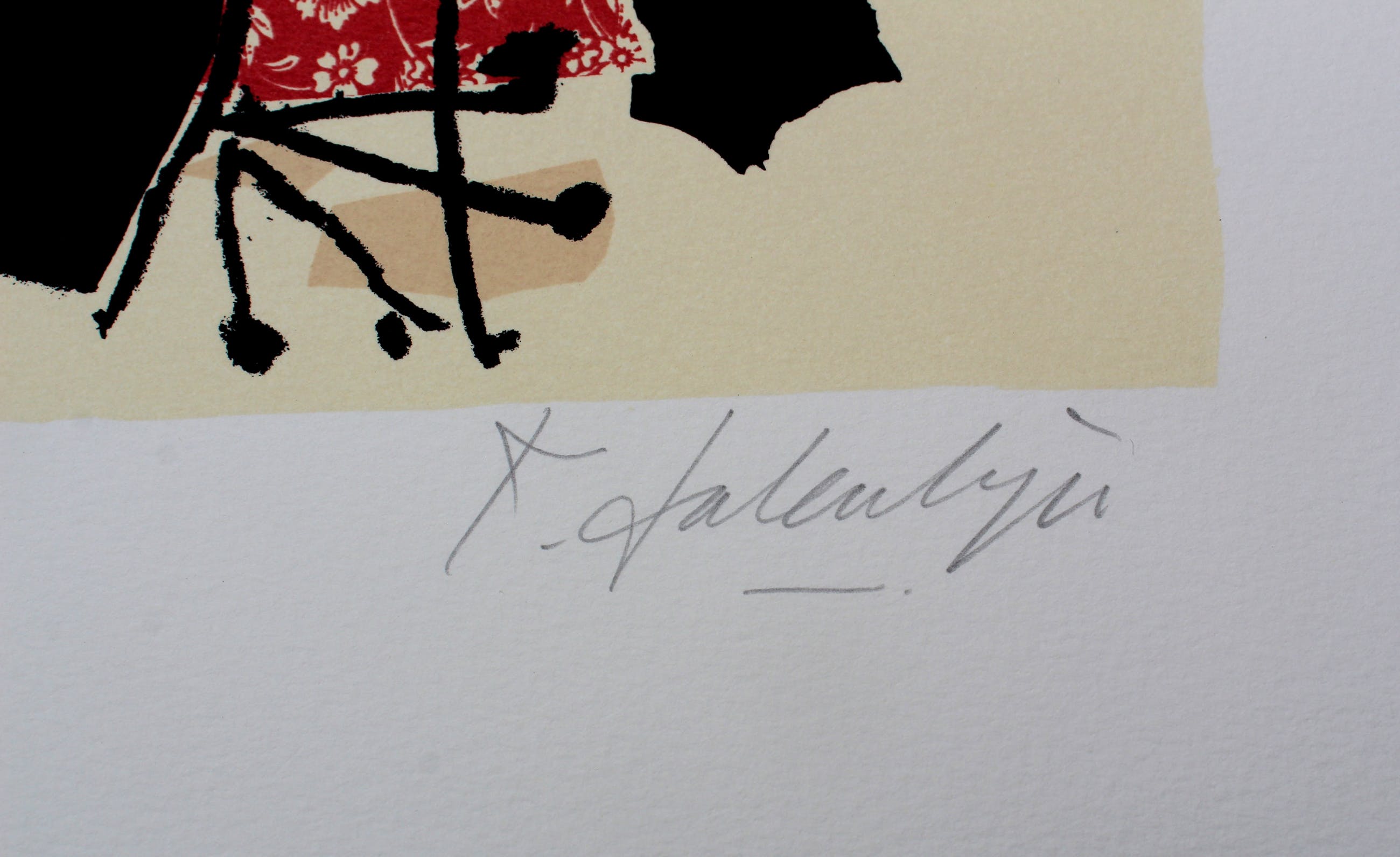Zeefdruk van Kees Salentijn. Afmetingen blad: H49 x b37cm. Afmetingen voorstelling: H33 x b22.5cm. Het werk is rechts onder, met potlood, gesigneerd door de kunstenaar. De authenticiteit van het aangeboden werk wordt volledig gegarandeerd. Een certificaat van echtheid kan, op aanvraag, worden gemaild.
