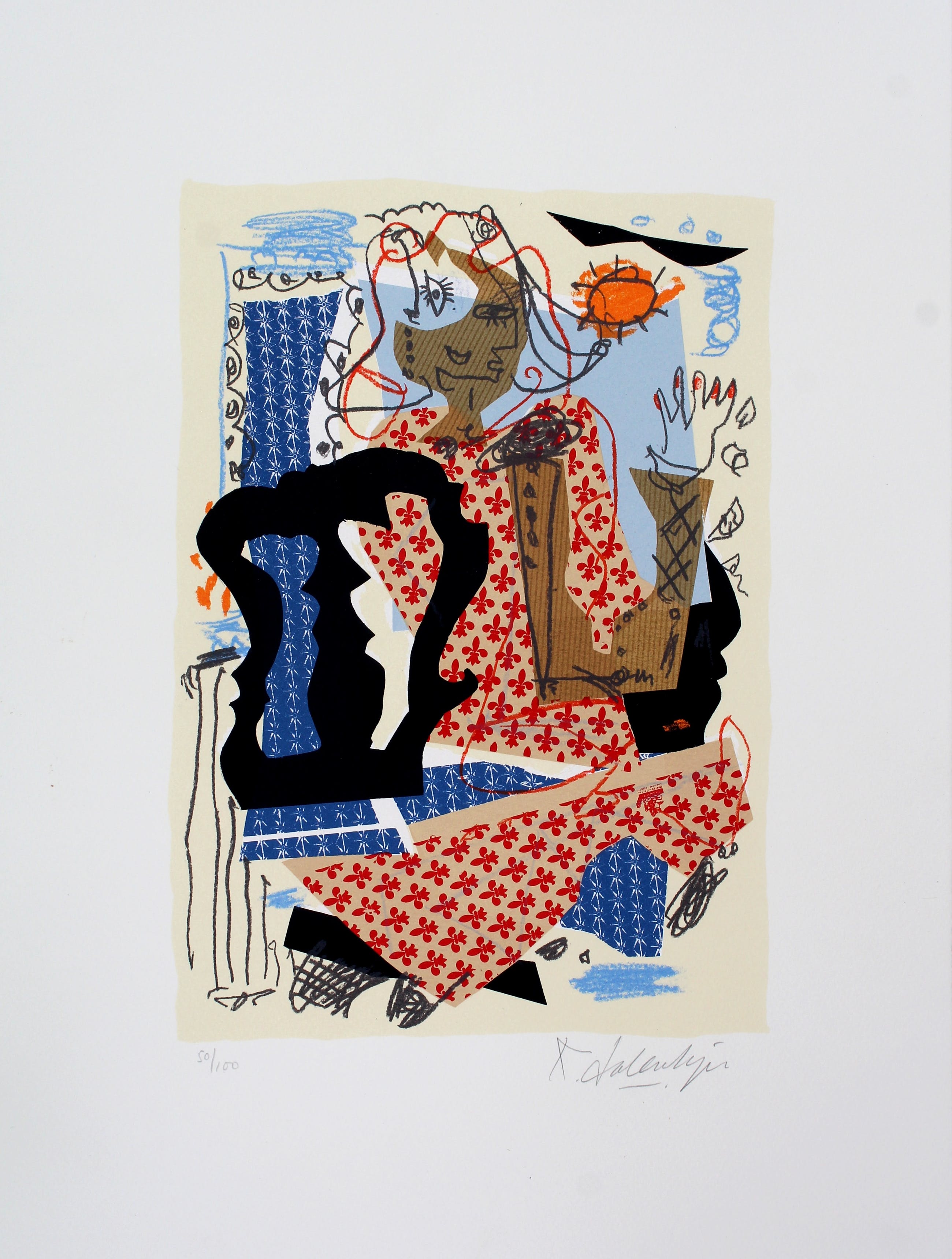 Zeefdruk van Kees Salentijn. Afmetingen blad: H49 x b37cm. Afmetingen voorstelling: H32 x b22cm. Het werk is rechts onder, met potlood, gesigneerd door de kunstenaar. De authenticiteit van het aangeboden werk wordt volledig gegarandeerd. Een certificaat van echtheid kan, op aanvraag, worden gemaild.