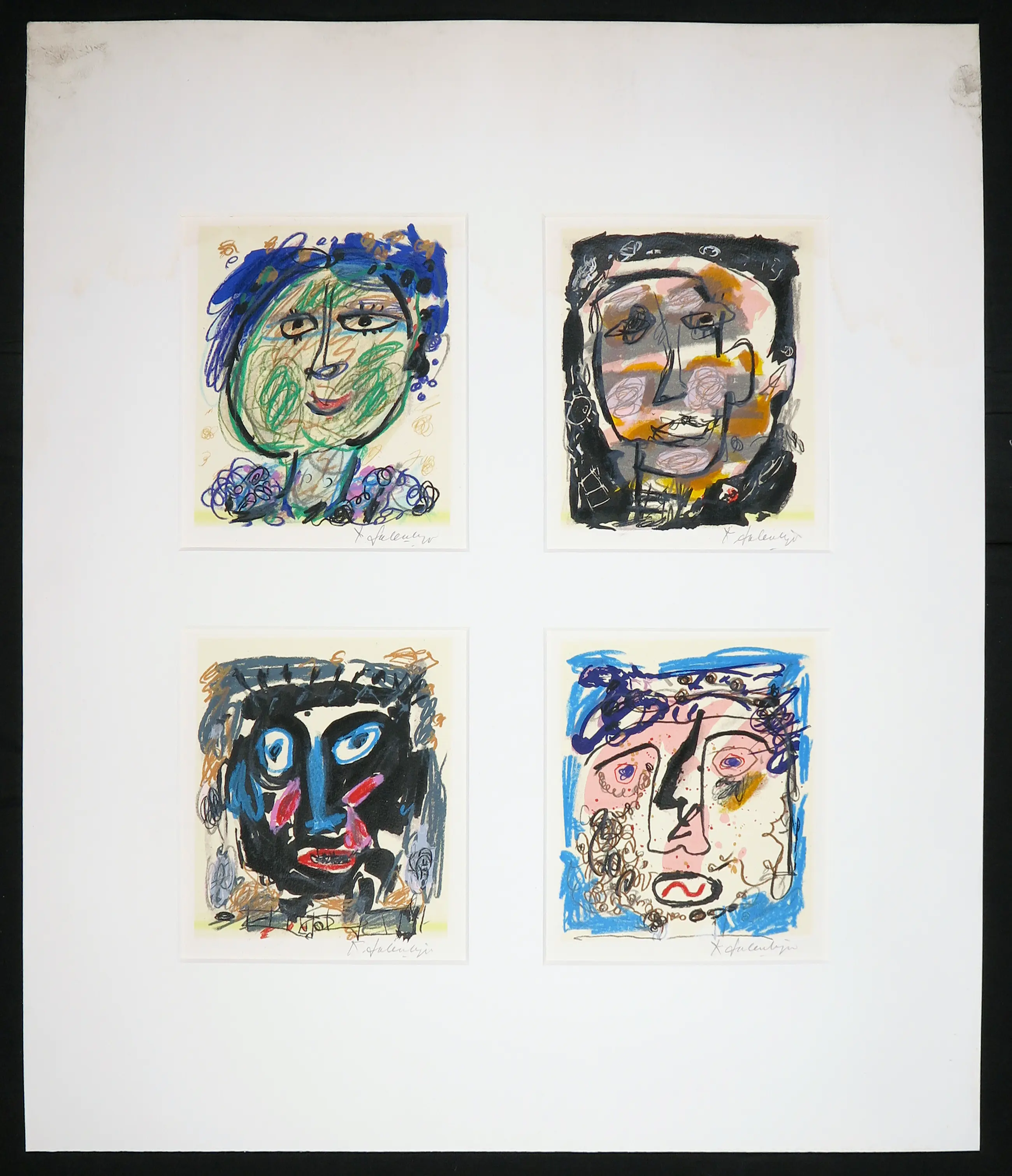 Twee van de werken zijn in zeer goede conditie, de bovenste twee hebben lichte waterschade. Het passe-partout heeft waterschade en vegen. | |