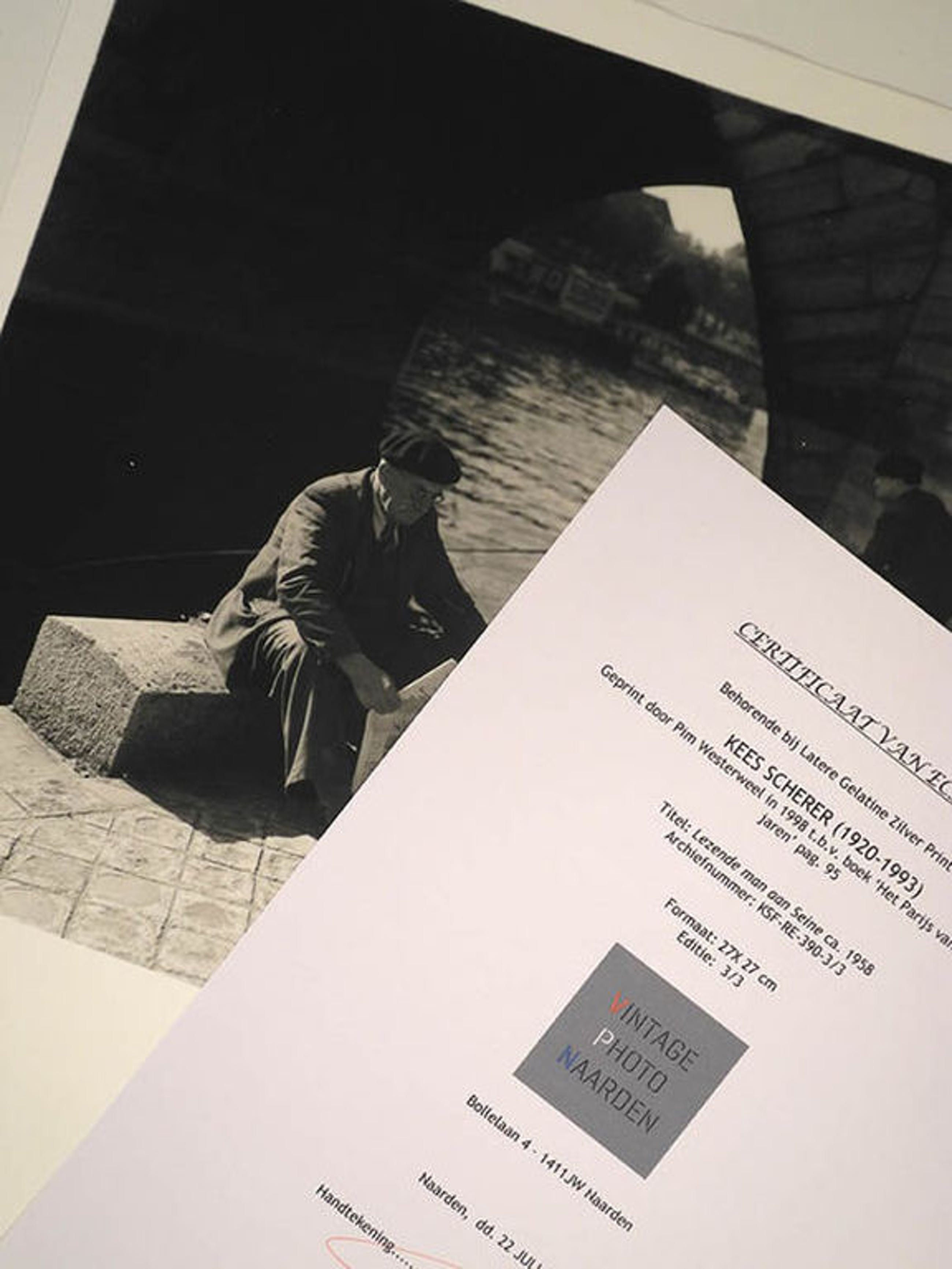 Latere gelatine zilver print op mat barietpapier afgedrukt in 1998 door Pim Westerweel t.b.v. Boek 'Het Parijs van de vijftiger jaren' uitgave Tirion 1998 - in boek geplaatst op pagina 95