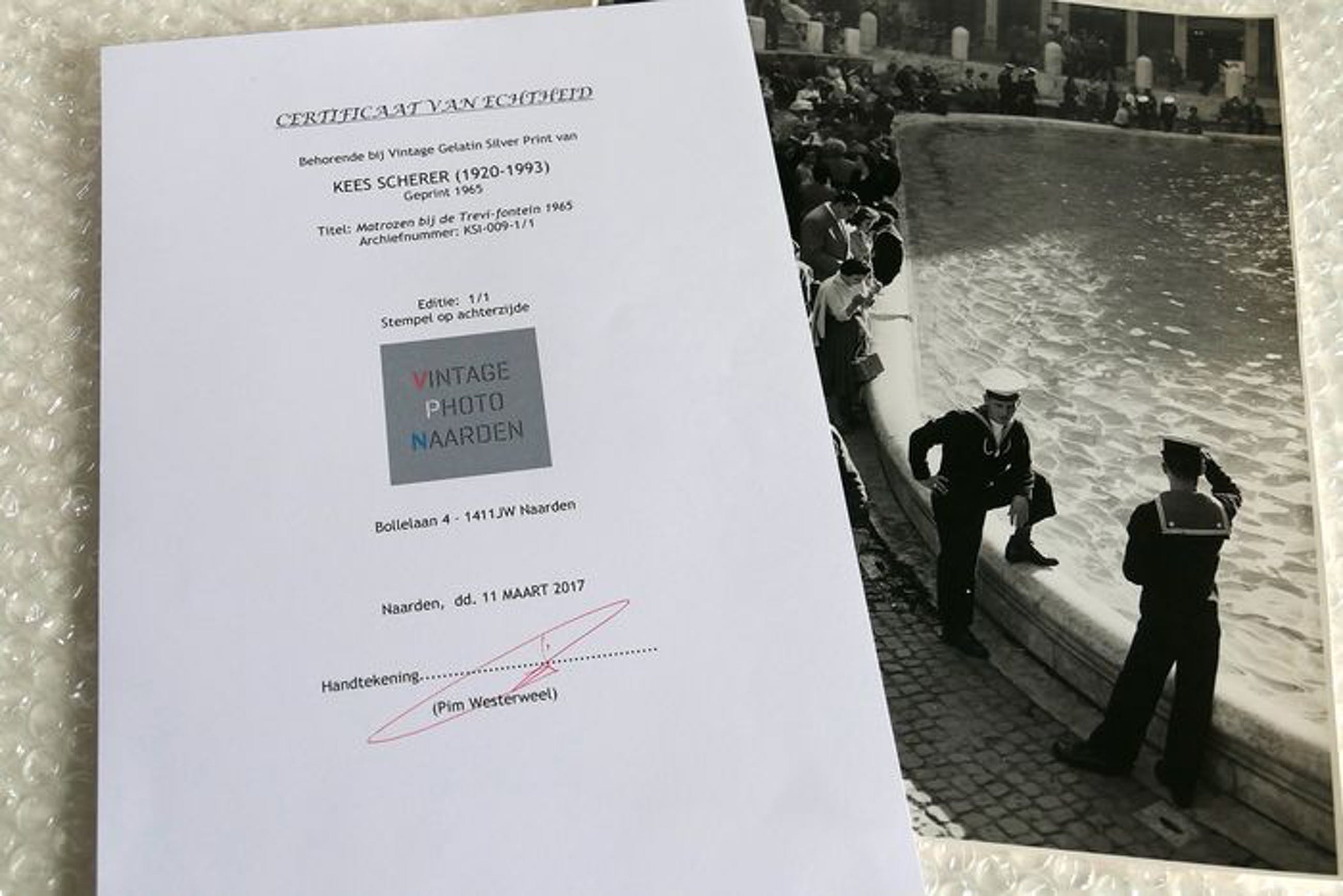 Vintage gelatine zilver print door Kees Scherer zelf afgedrukt in 1963 op barietpapier. Op achterzijde stempel kees Scherer. Wordt geleverd met certificaat van echtheid