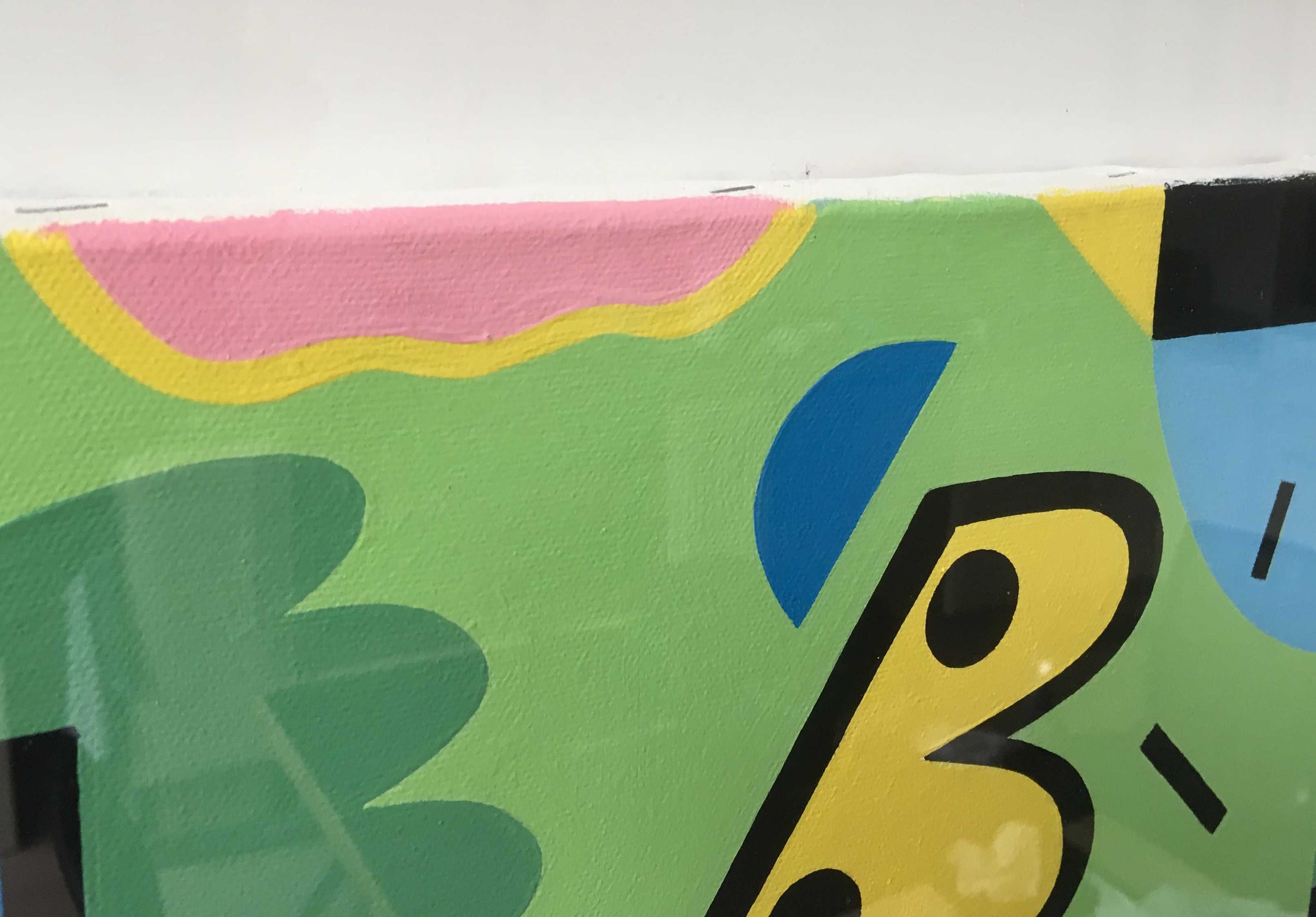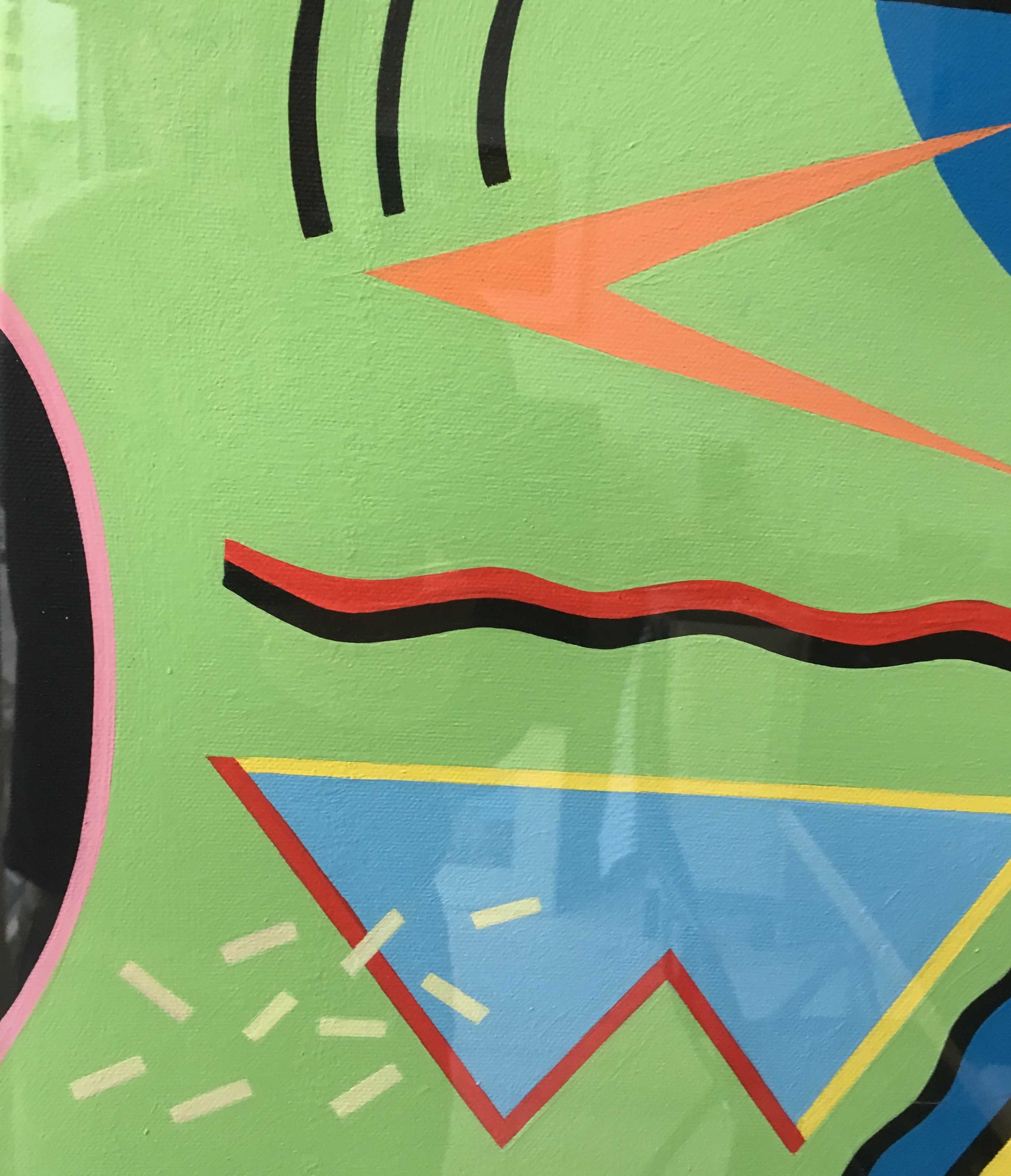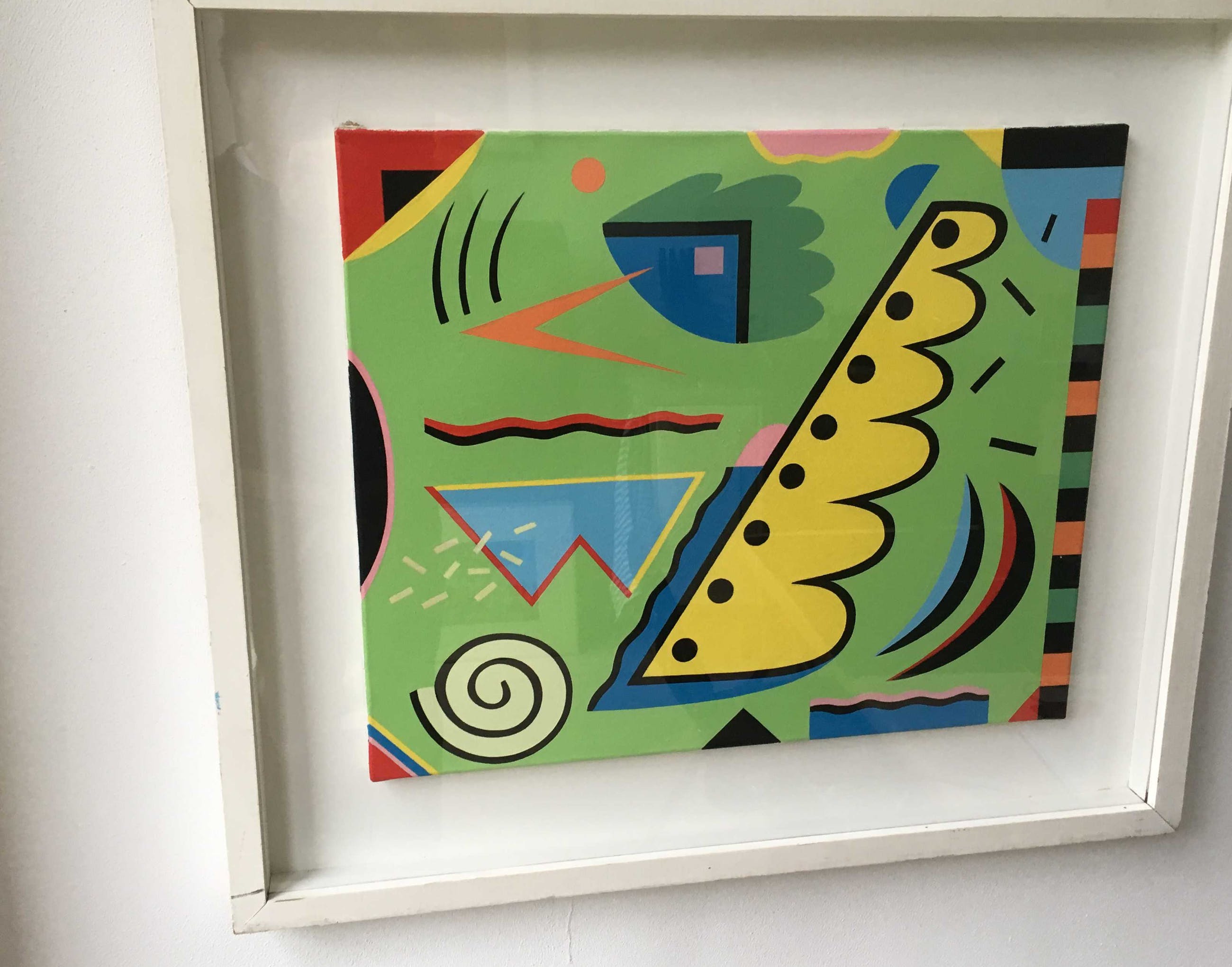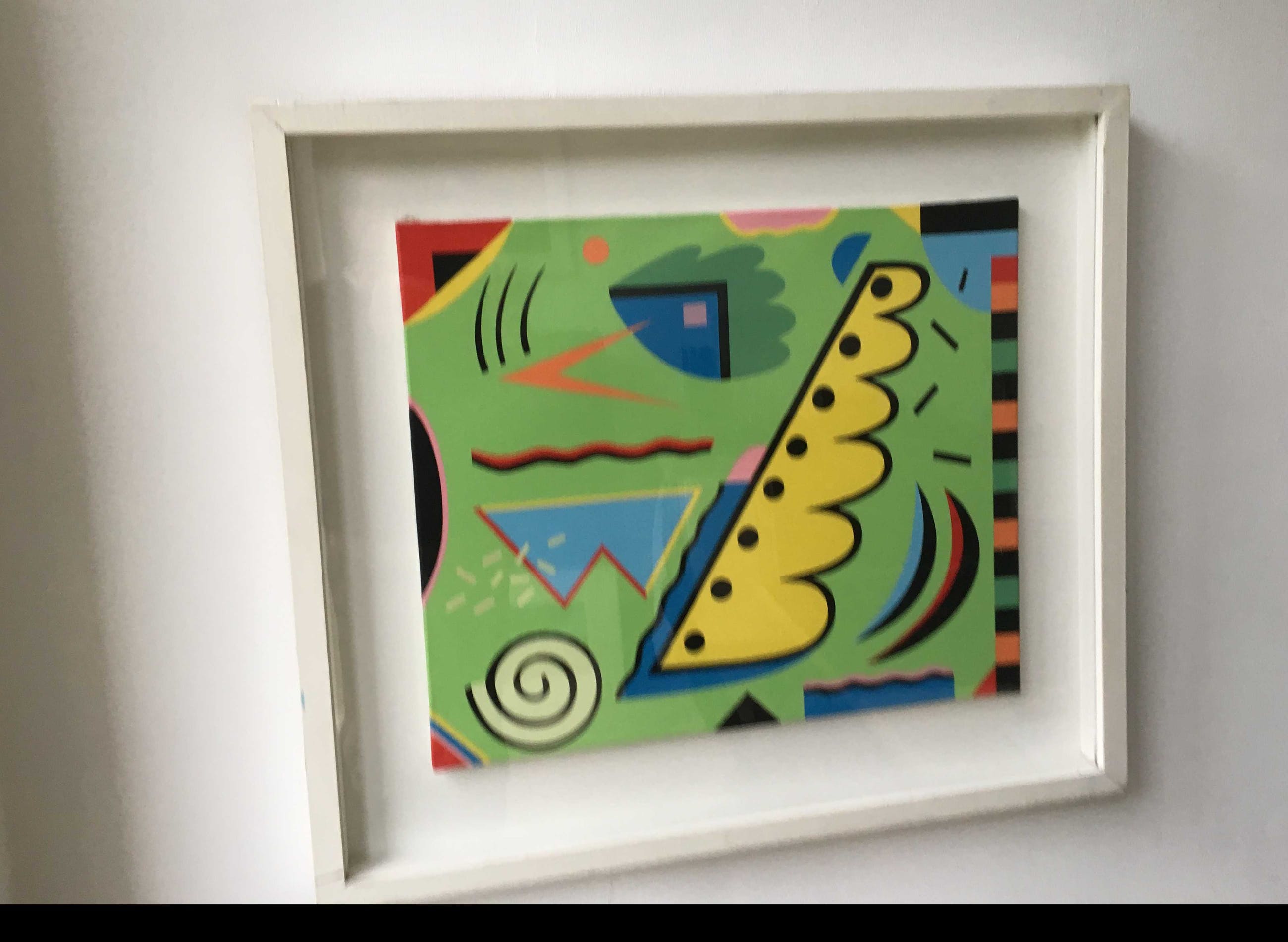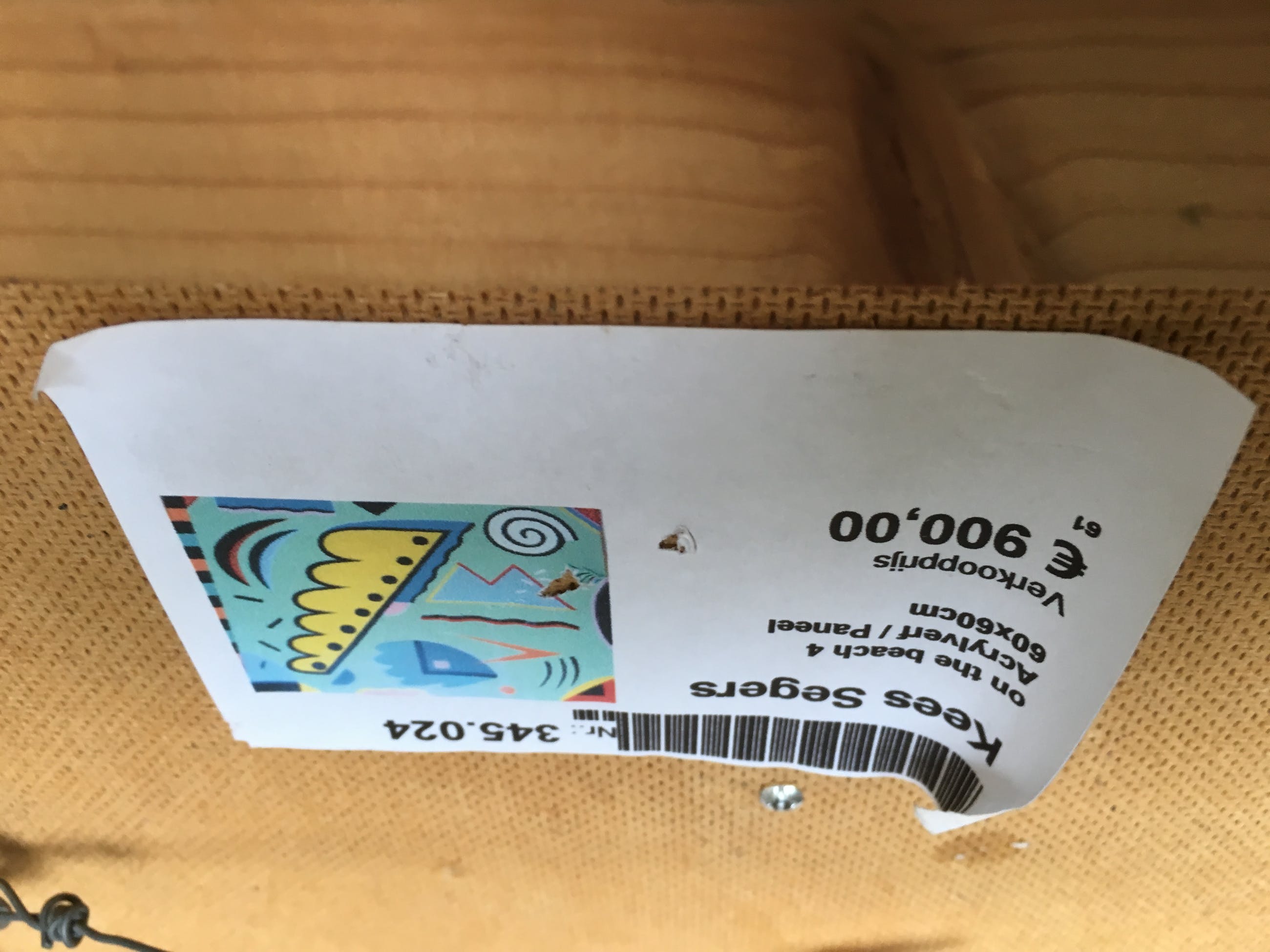 Karakteristiek werk van Kees Segers jaren 80/90. Kleurrijk en strak. Werk verkeert in prima conditie. Baklijst heeft aan achterzijde een minimale beschadiging, niet zichtbaar als het werk hangt. Lak van de lijst vertoont een paar plekjes. Helder plexiglas. Galeriewaarde was €900,=