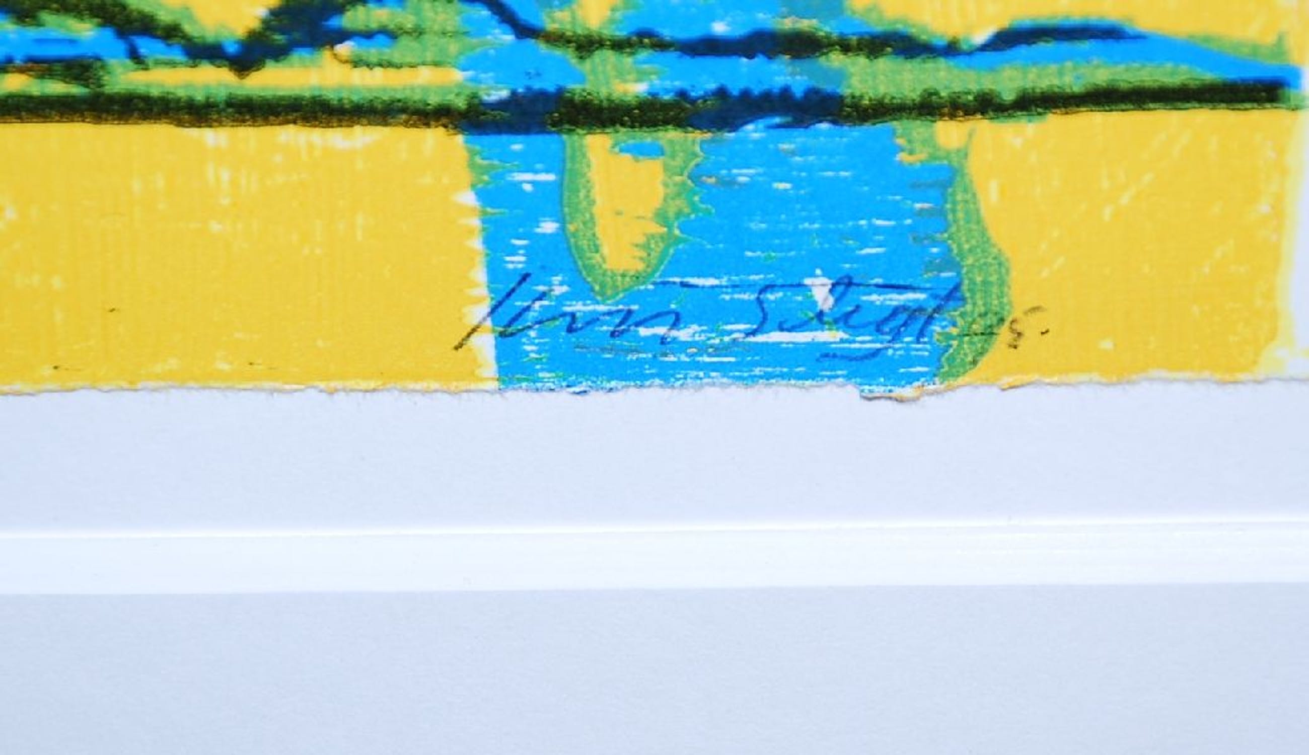 Grote zeefdruk van Kees Slegt. Het werk is ingelijst, echter het glas ontbreekt.