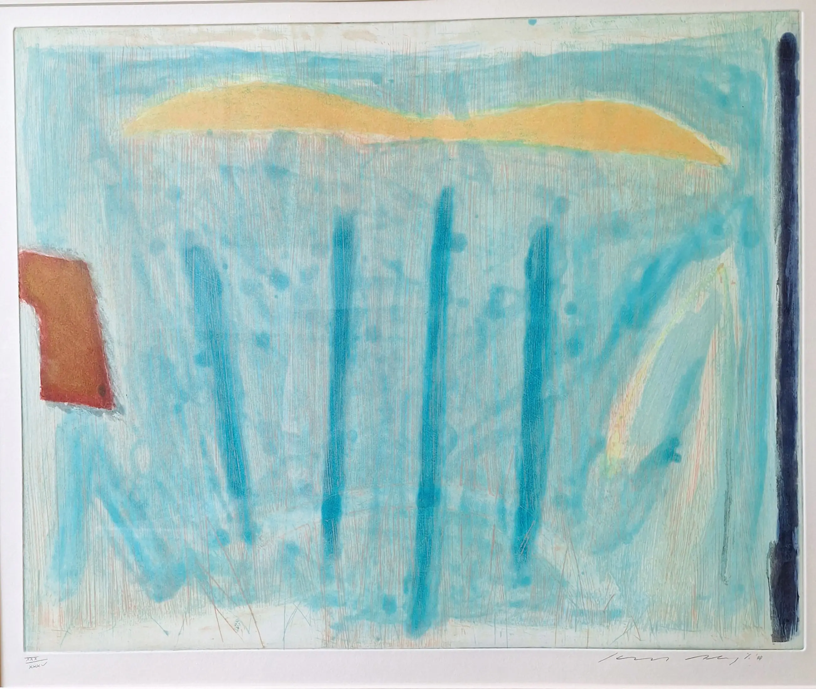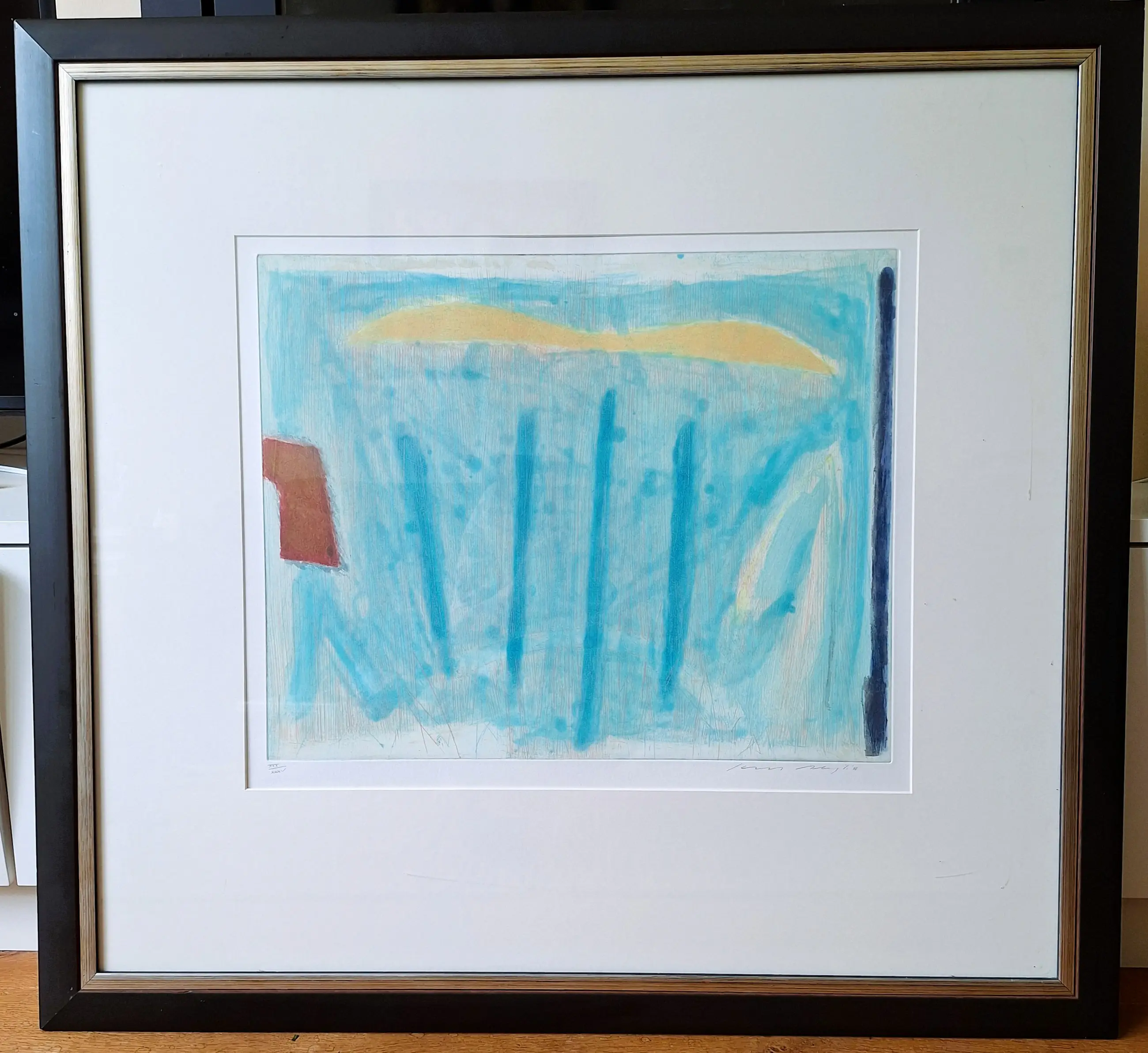 Professioneel ingelijst. De mooie, neutrale lijst verkeert in goede, gebruikte staat. Het werk is zo op te hangen.