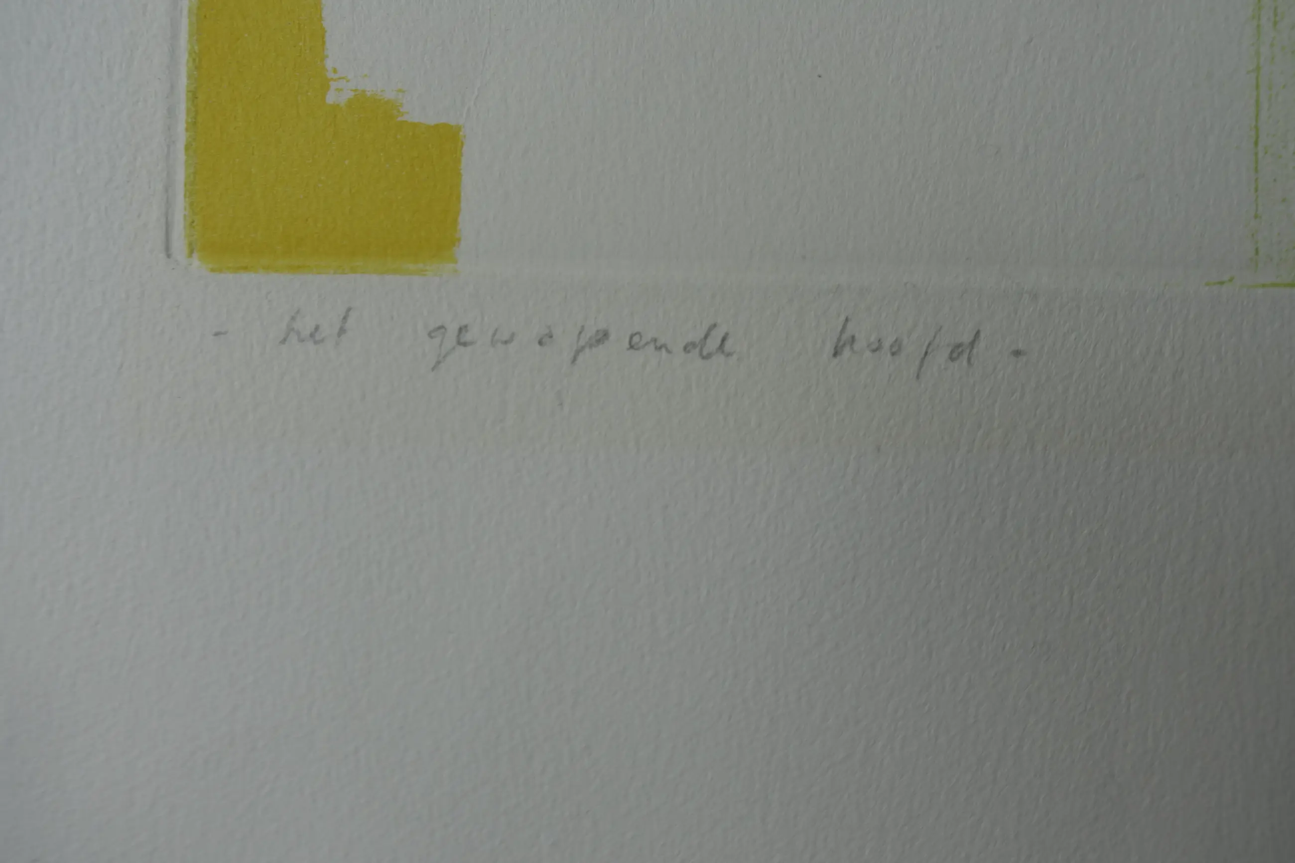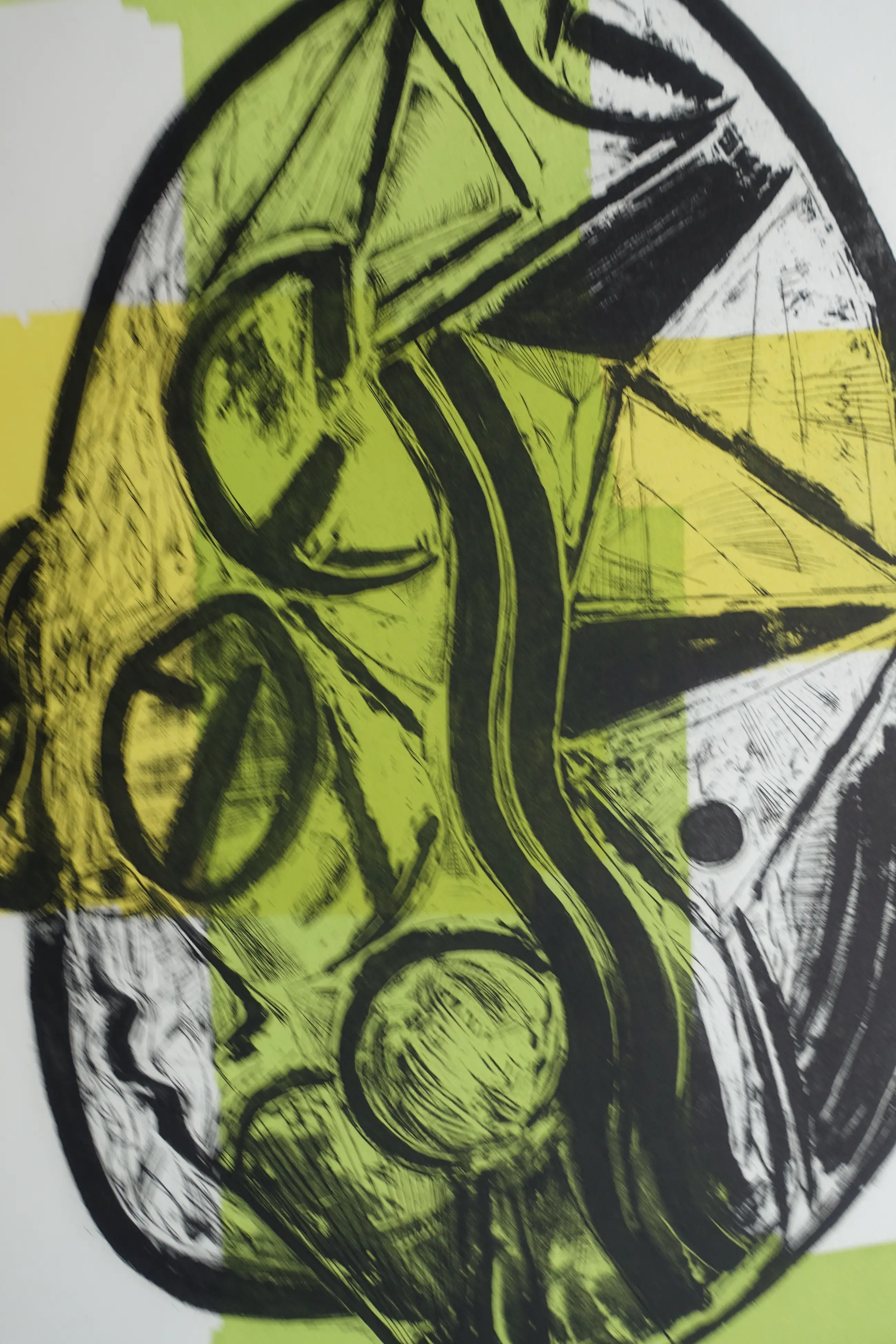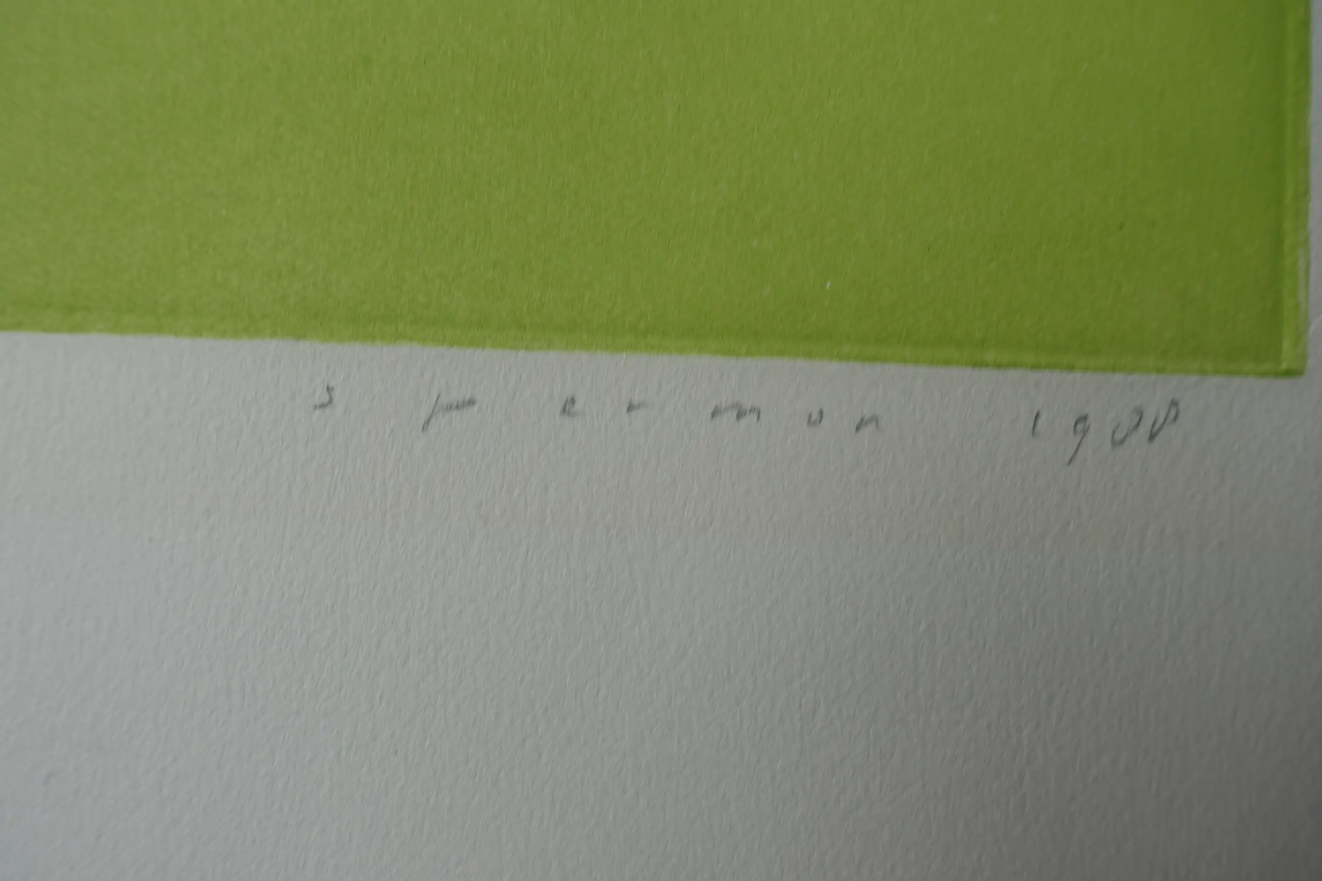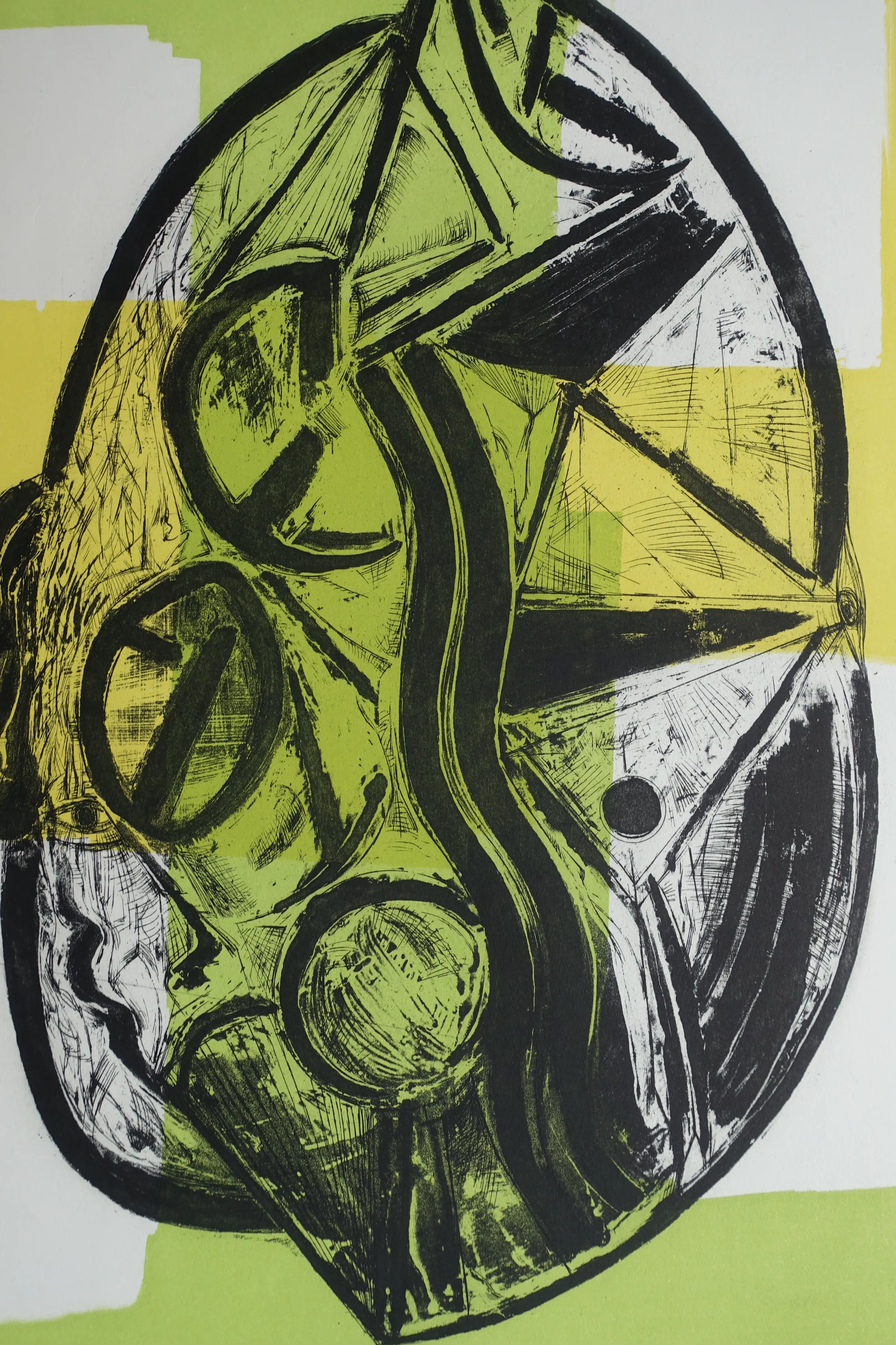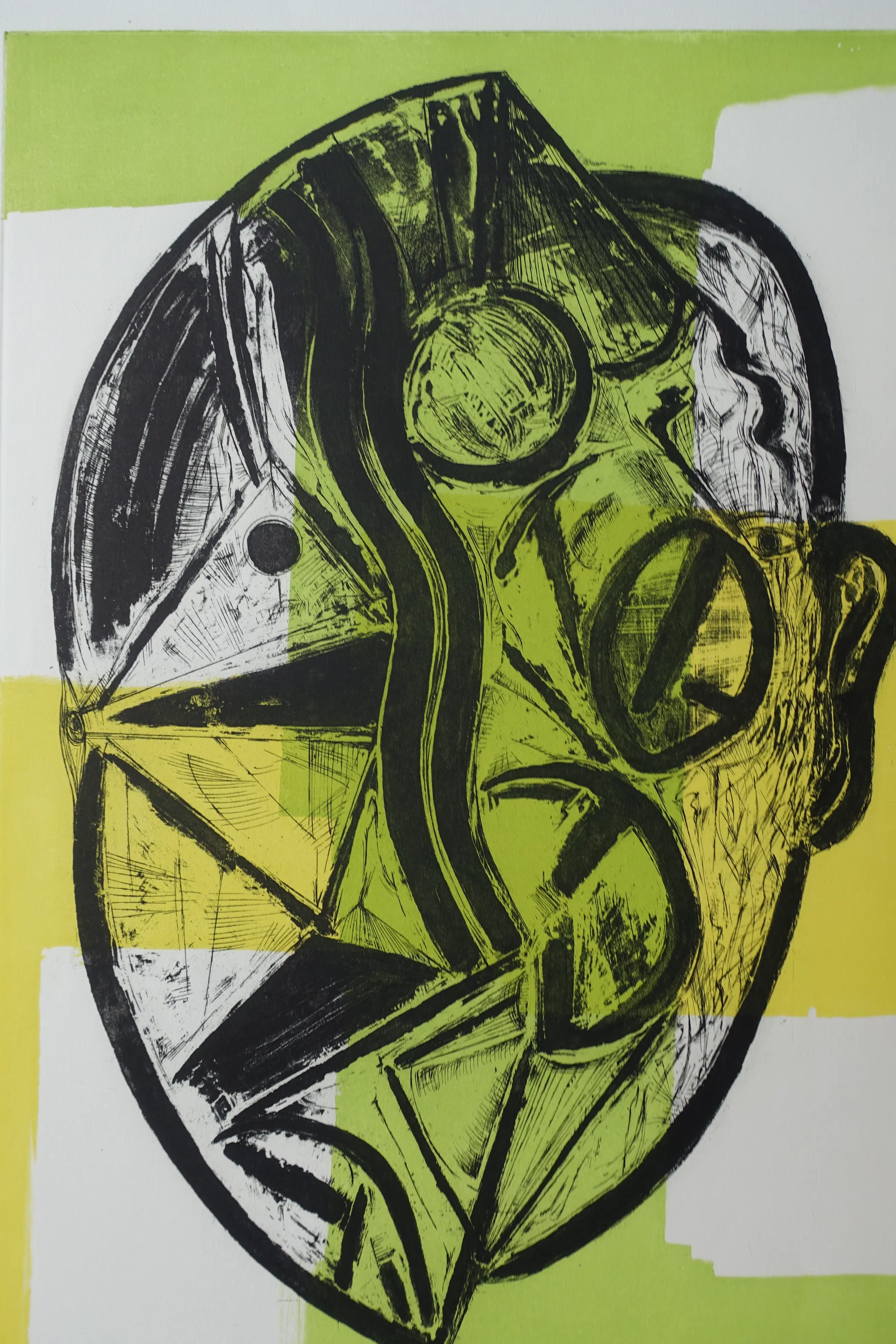 Opmerkelijk etswerk uit de laatste periode van zijn leven. Fraaie afdruk op geschept papier. R.o. gesigneerd en gedateerd ( 1988). Totale oplage 50 exemplaren. Brede marges (ca. 8.5.cm) met twee gerepareerde scheurtjes van 3 a 4 cm. Algehele conditie zeer goed.