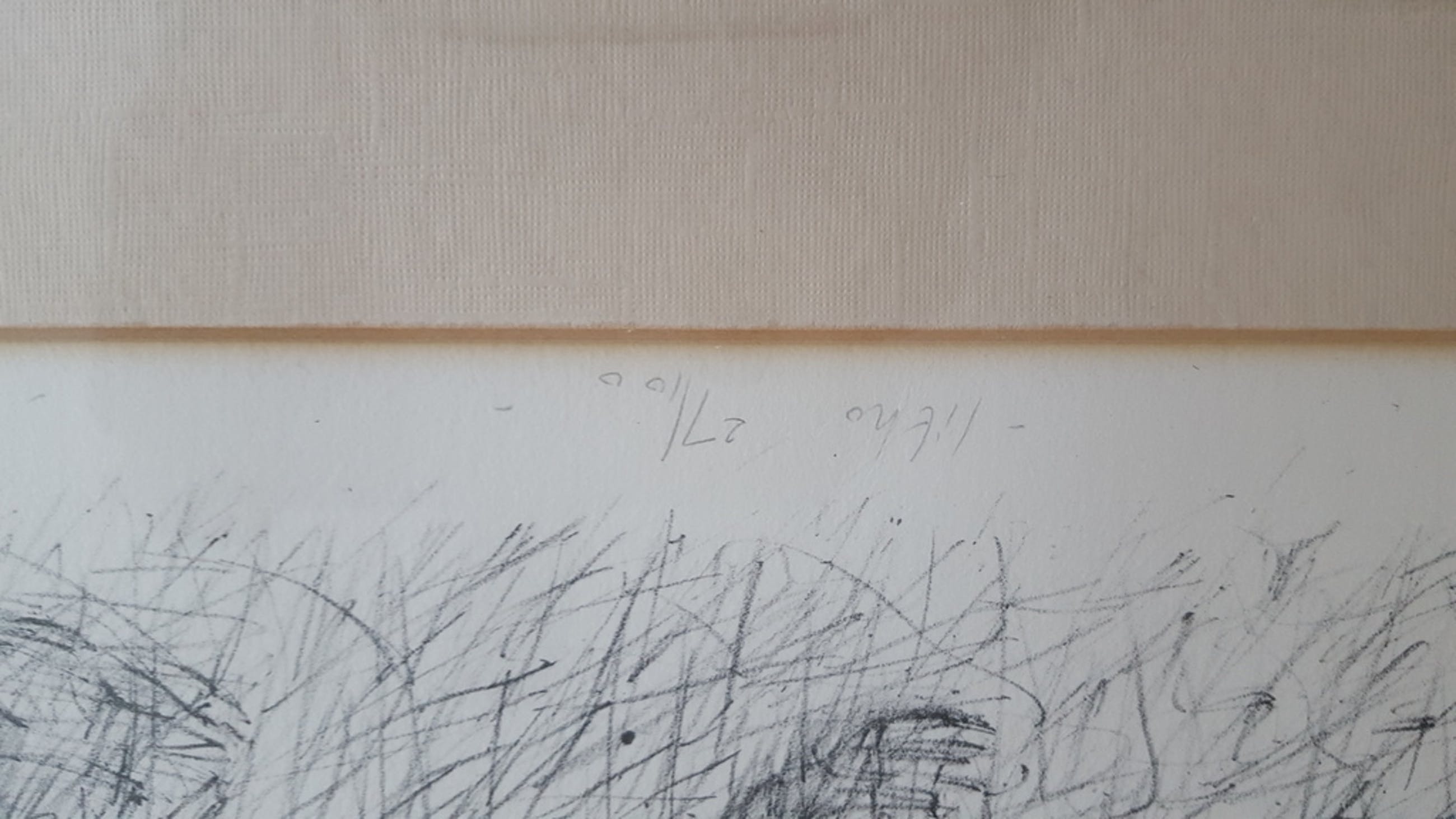 80cm x 60cm. Conditie goed. Met lijst en zonder glas. 1980. 27/100.