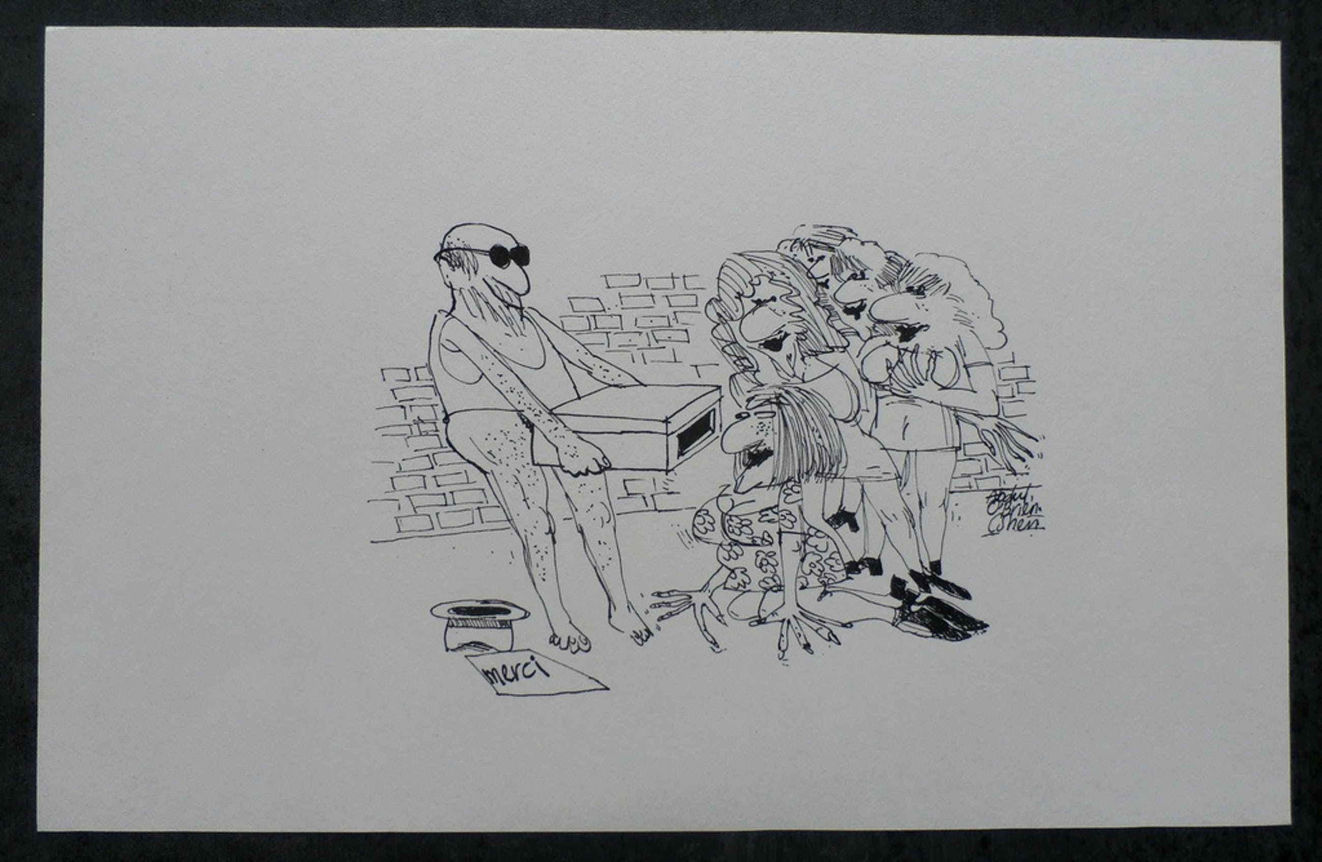Pentekening van Kees Spermon: Erotische voorstelling. Afmetingen blad: H16 x B25 cm. Afmetingen voorstelling: h10 x b15. Het werk is aan de rechterzijde gesigneerd met het pseudoniem Abdul O'Brien Cohen. De authenticiteit van dit werk wordt volledig gegarandeerd. Een certificaat van echtheid kan, op verzoek, worden meegeleverd.