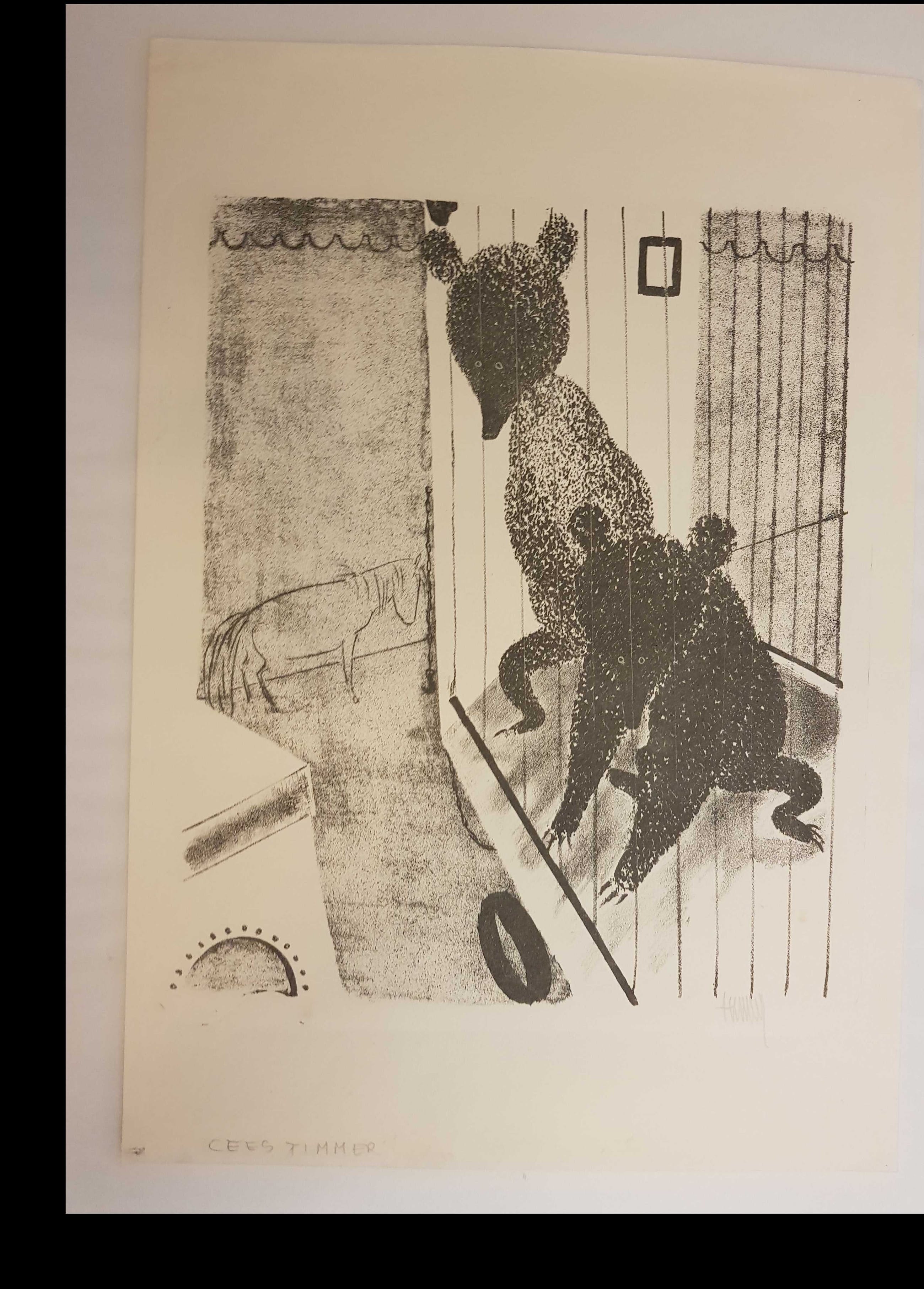 ‘De Rotterdamse kunstenaar Kees Timmer (1903-1978) was een begenadigd tekenaar, graficus en beeldhouwer. Befaamd zijn de zelfportretten, maar vooral zijn voorstellingen met dieren, waarin hij een bijzonder kwetsbaar beeld van de wereld (en zichzelf) geeft. ‘Er zijn maar weinig figuratieve schilders in de Nederlandse kunst na 1945 die het niveau van Kees Timmer evenaren’, schreef criticus Carel Blotkamp, die als curator onlangs nog een aantal werken van Timmer in Museum Boijmans Van Beuningen toonde.‘