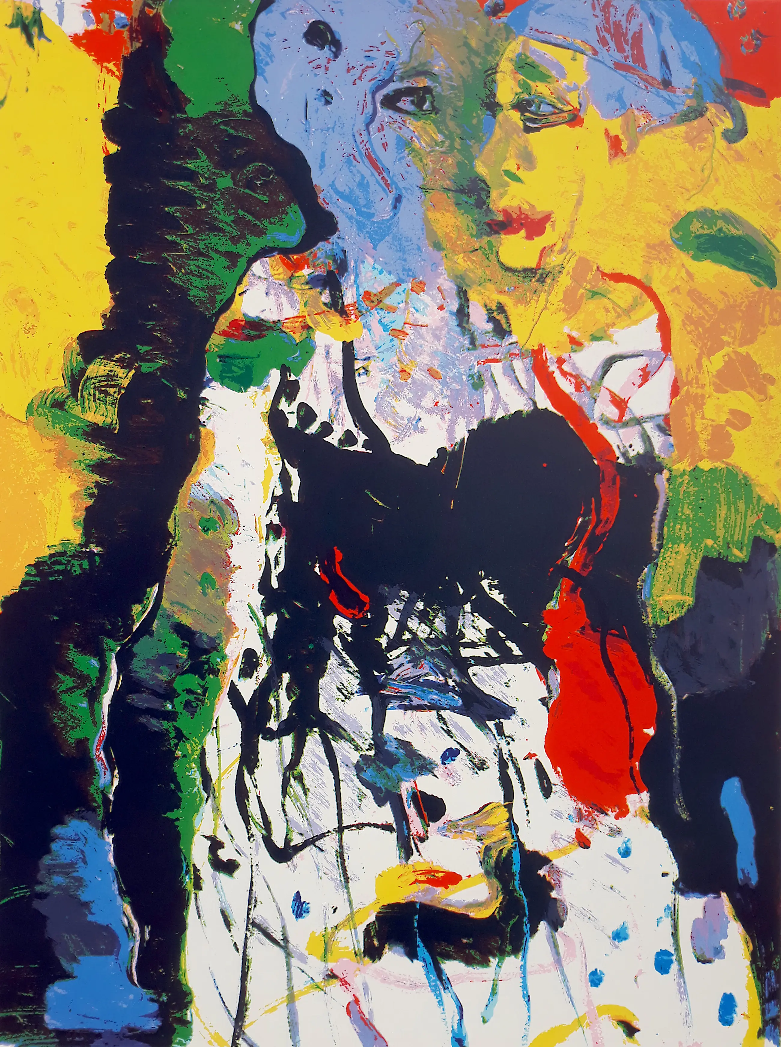 Zeer mooi werk van Kees van Bohemen uit 1978. Zeefdruk op 350 grams Economos-Etching papier die in geen enkel opzicht verschilt met de uiteindelijk gesigneerde, gedateerde en genummerde exemplaren. Afkomstig uit de nalatenschap van Henk van der Vet. In mint conditie.