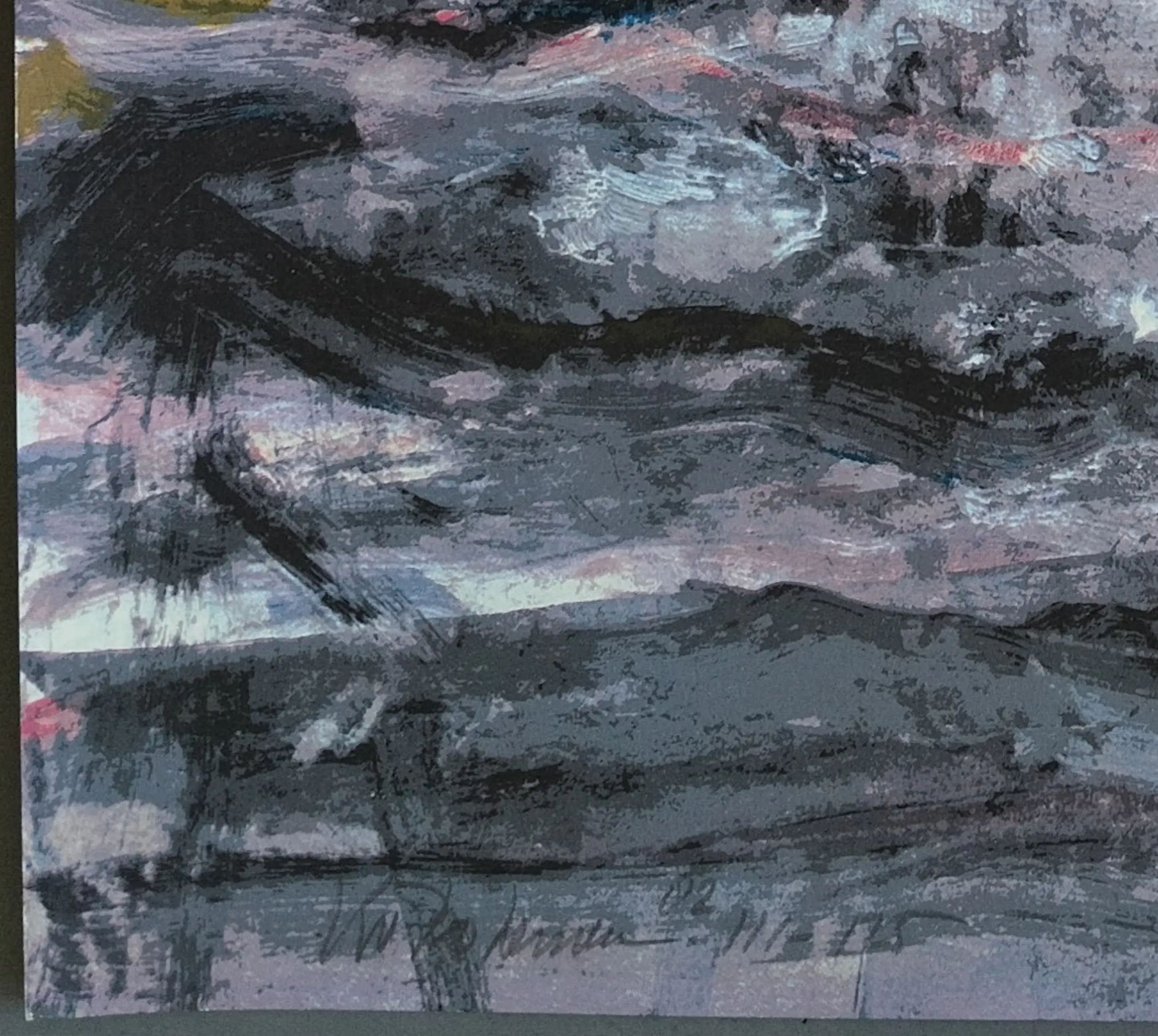 Kees van Bohemen (1928-1985) gesigneerde zeefdruk uit 1982, gedrukt in een oplage van 125 stuks. Linksonder is het werk gesigneerd in potlood en met 82 en 111/125. Afmeting 92.5 x 68.5 cm (hxb). In 3 hoekjes zit een klein vouwtje en bij de rechter onder hoek een klein scheurtje. Aan de achter bovenzijde zit tape. Verder is de zeefdruk in prima staat.