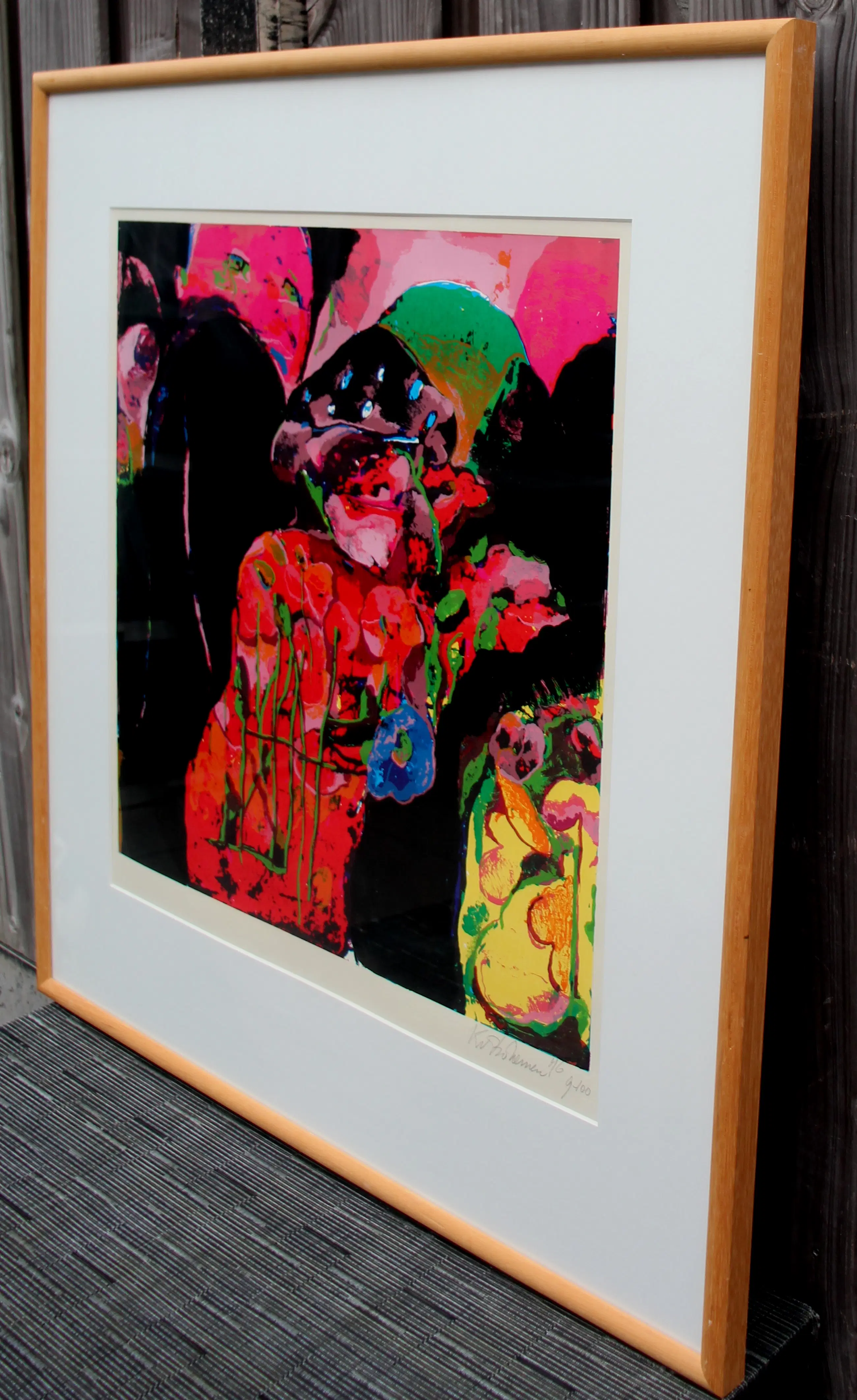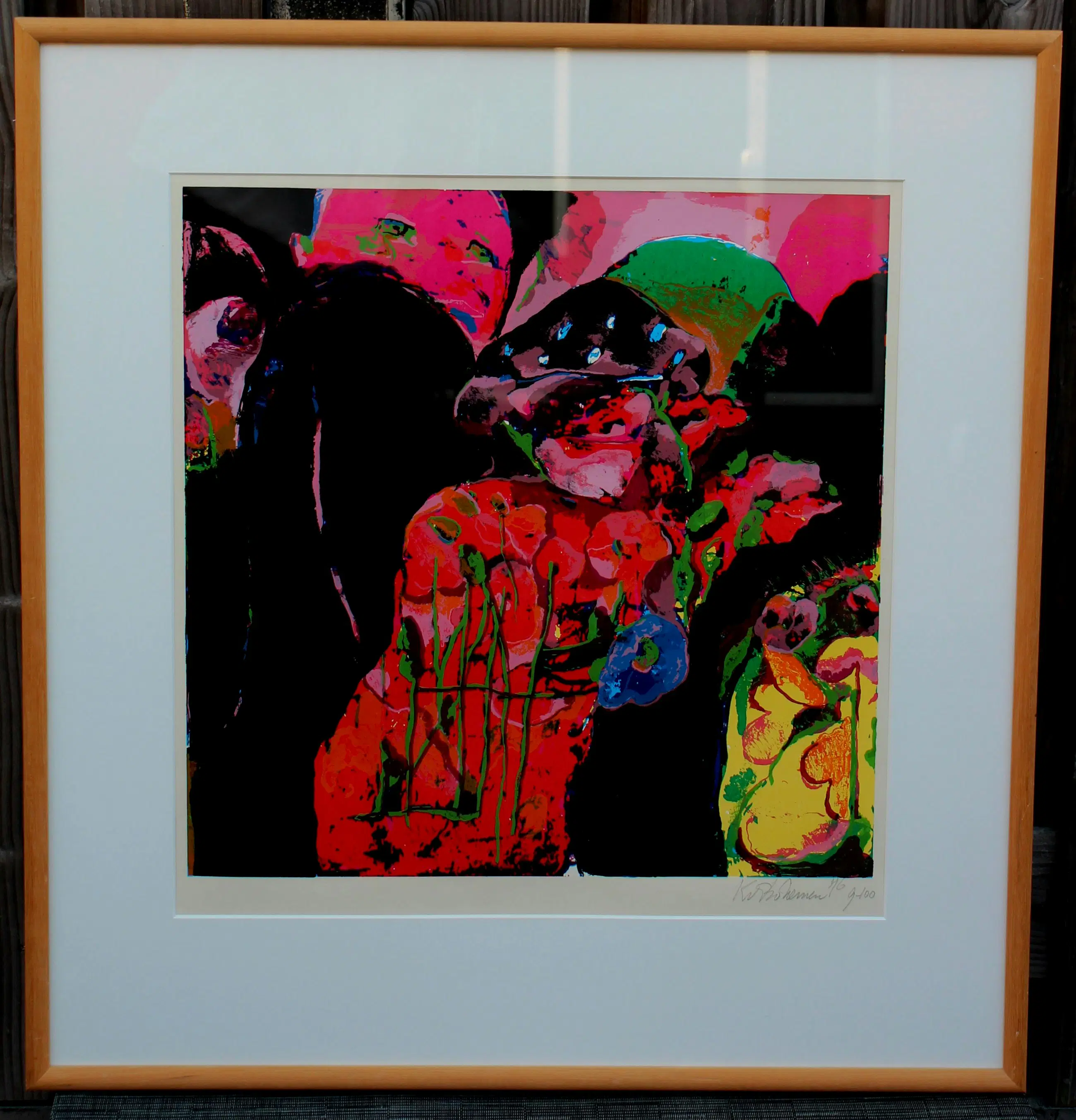 Ingelijste zeefdruk van Kees van Bohemen. Titel: Monkey. Jaar: 1976. Oplage: 9/100. Afmetingen incl lijst: H83 x b78cm. Afmetingen voorstelling: H54 x b54cm. Het werk is, rechts onderaan, door de kunstenaar gesigneerd. De authenticiteit van het, aangeboden, werk wordt volledig gegarandeerd.Een certificaat van echtheid kan, op aanvraag, na aankoop en betaling van het werk worden gemaild.