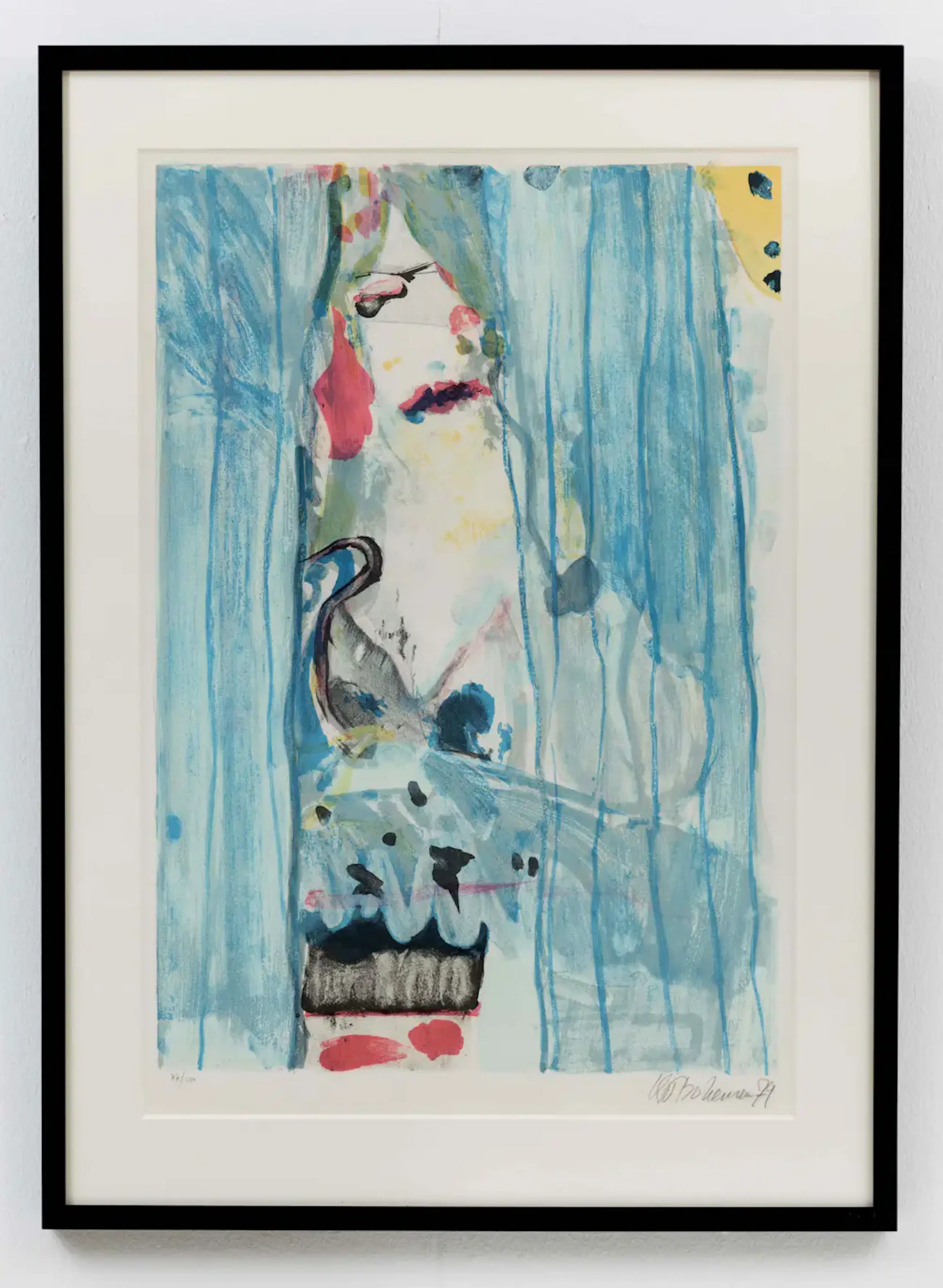 Ingelijste zeefdruk van Kees van Bohemen uit 1979. Titel: dame achter het gordijn. Oplage: 77/100. Afmetingen incl lijst: H94.5 x b69cm. Afmetingen voorstelling: H77 x b52cm. Het werk is rechtsonder gesigneerd('KvBohemen'), door de kunstenaar. De authenticiteit van het aangeboden werk wordt volledig gegarandeerd. Een certificaat van echtheid kan, op aanvraag, worden gemaild.
